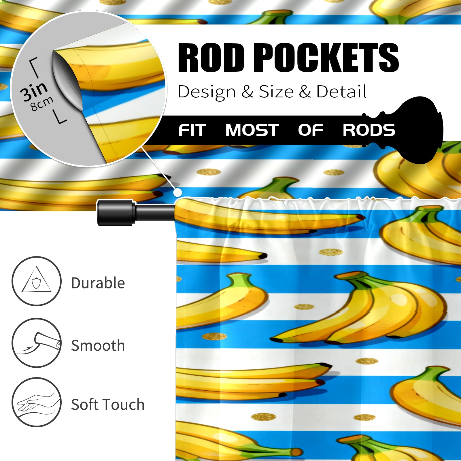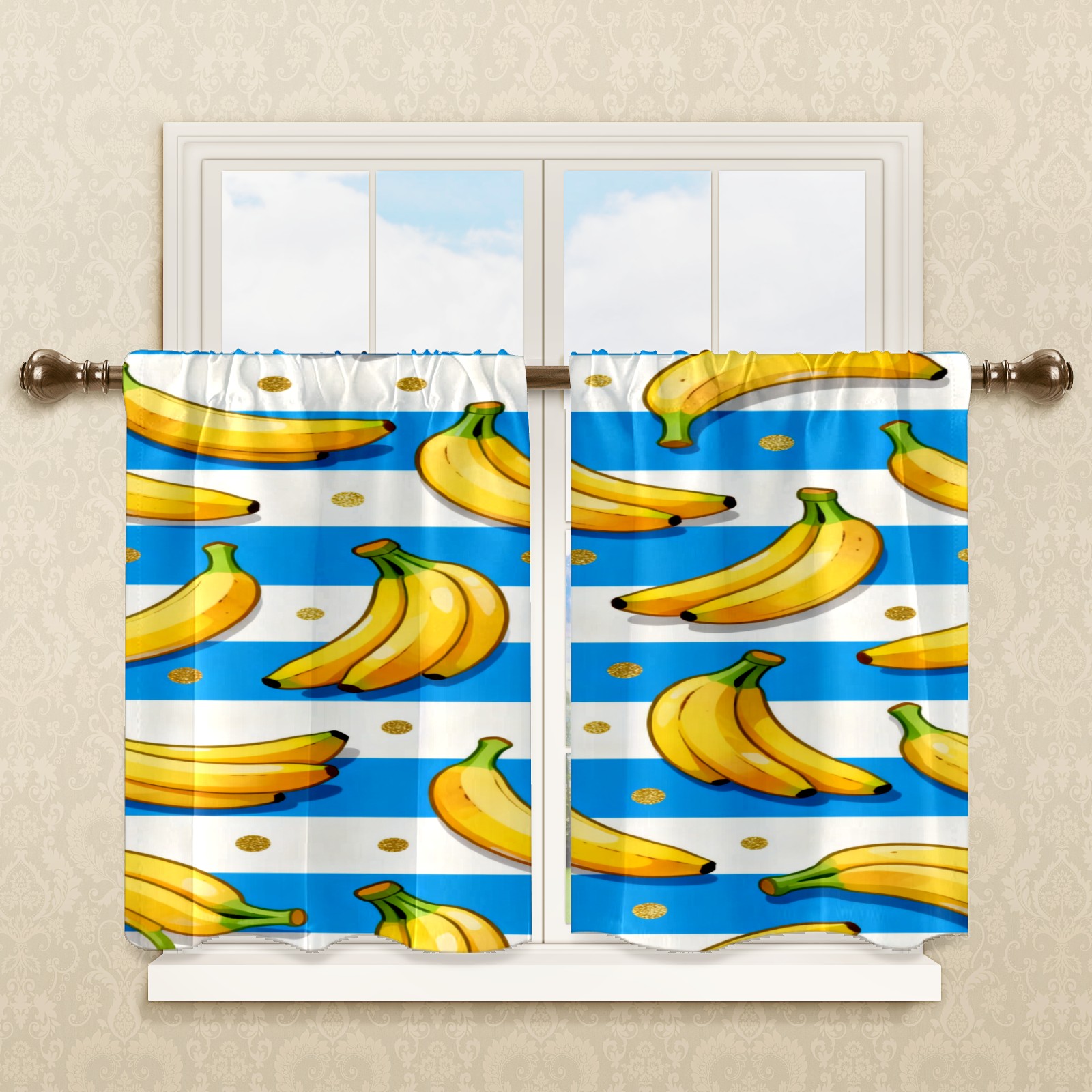 Шторы-панно для дома, декоративные драпировки для гостиной и спальни, легкие и прочные, Banana Blue Gold Dots