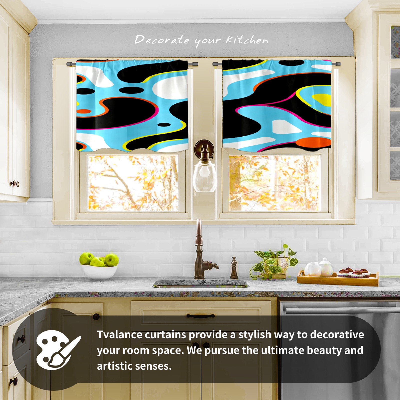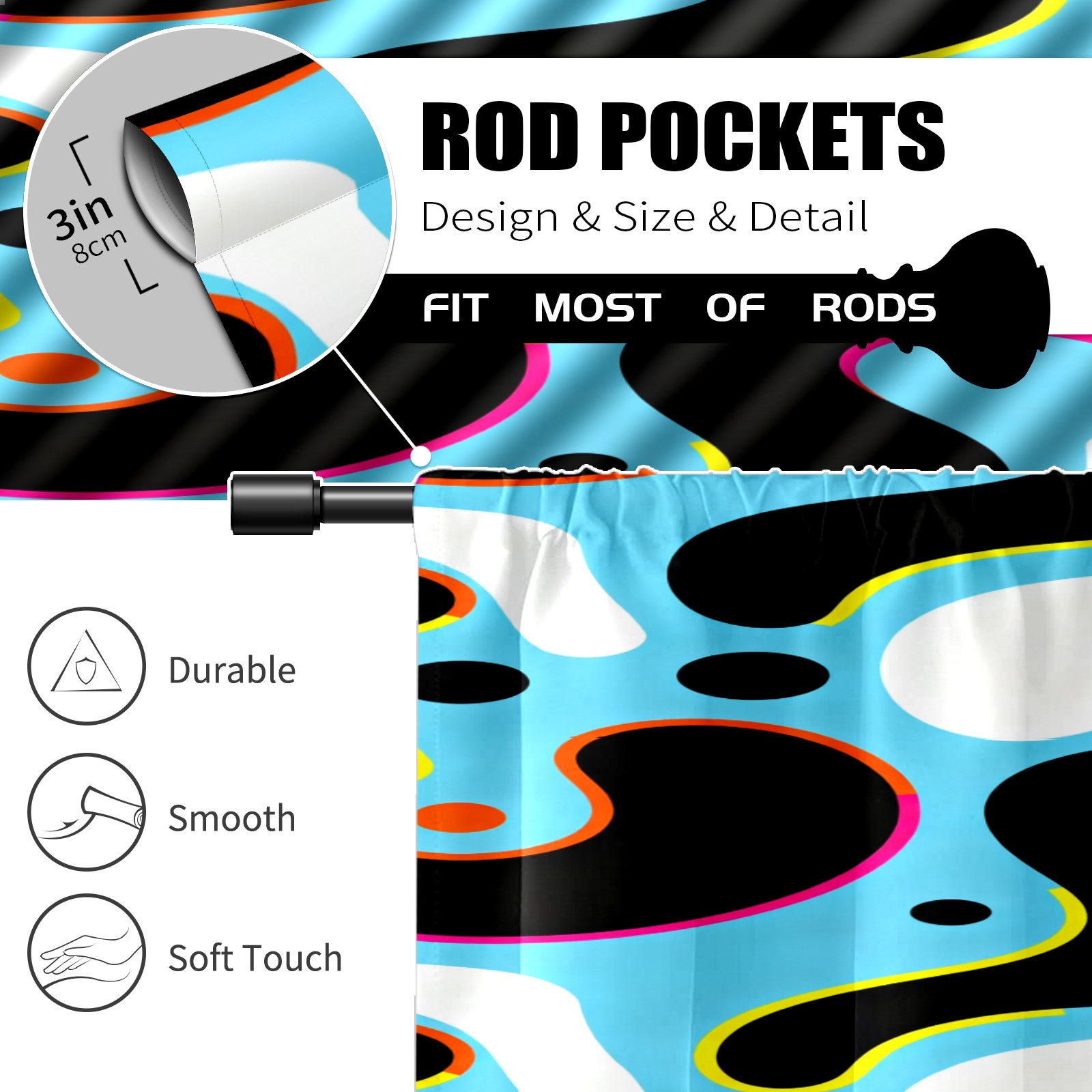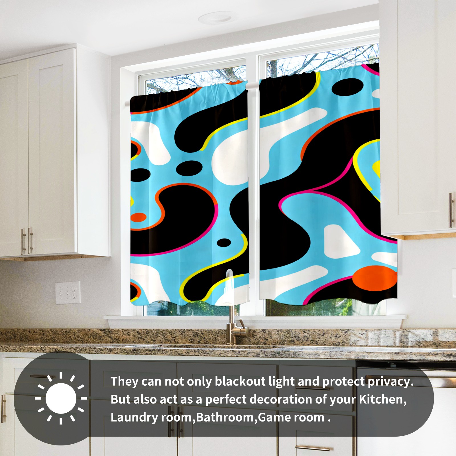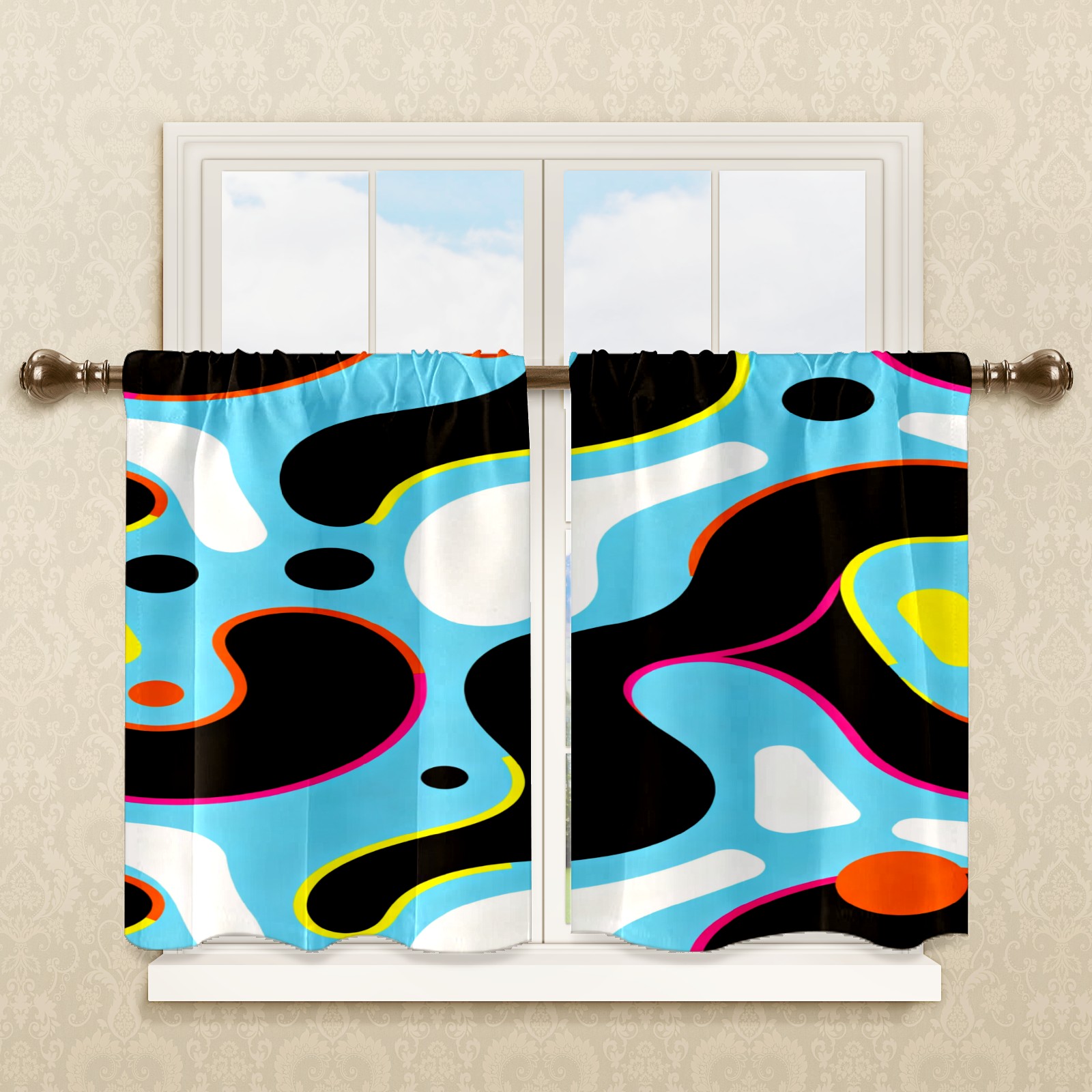 Шторы-панно для дома, декоративные драпировки для гостиной и спальни, легкие и прочные, Light Blue Colorful Curves