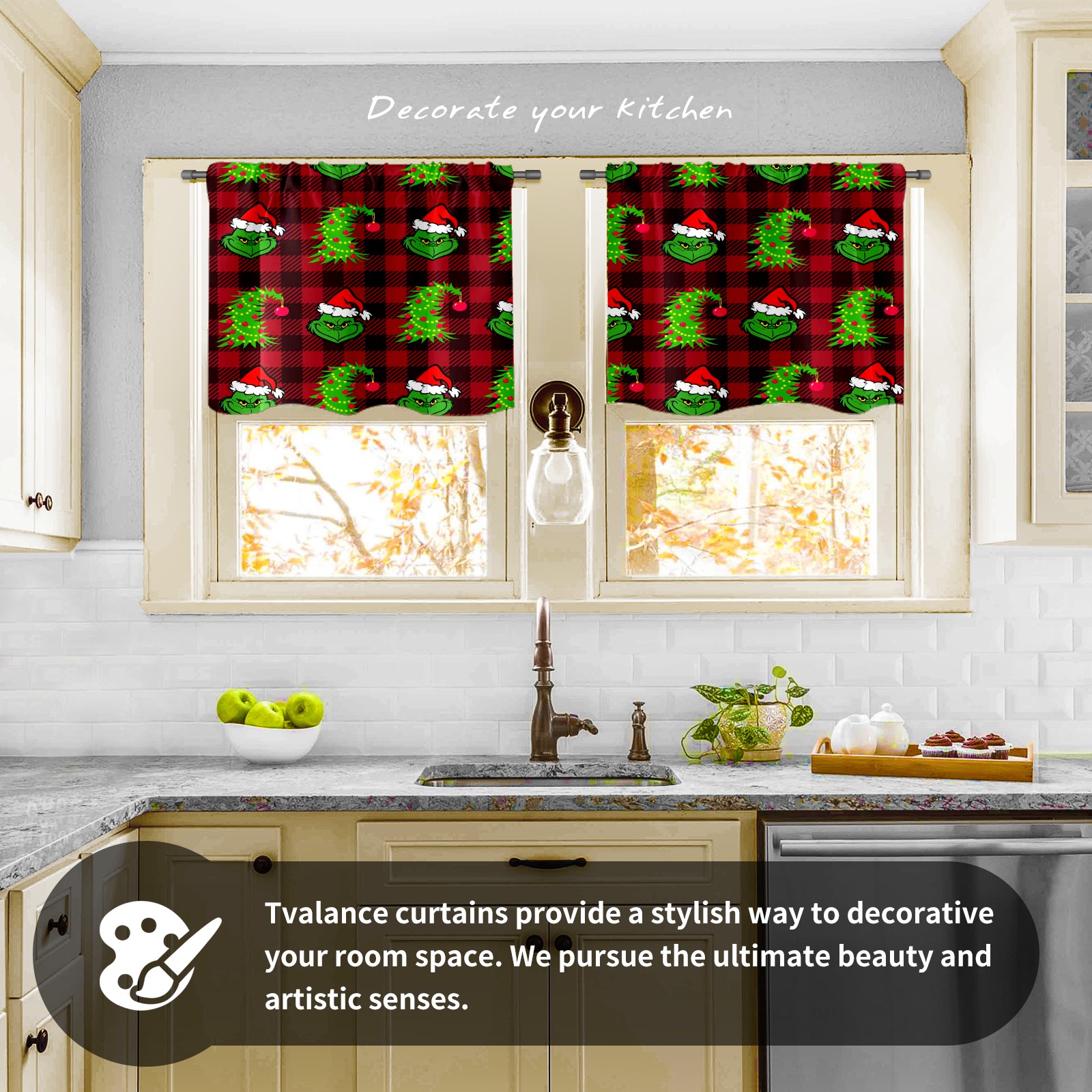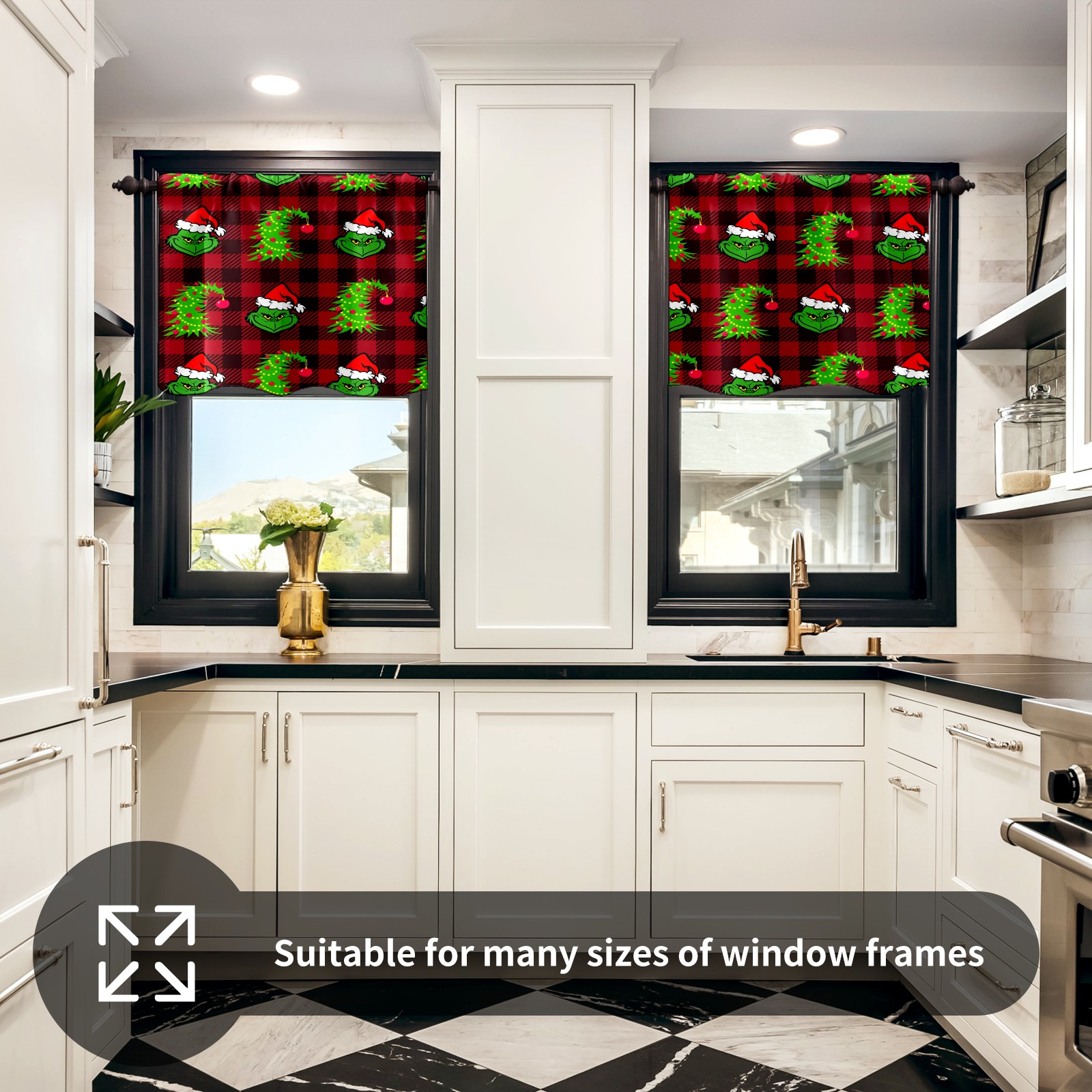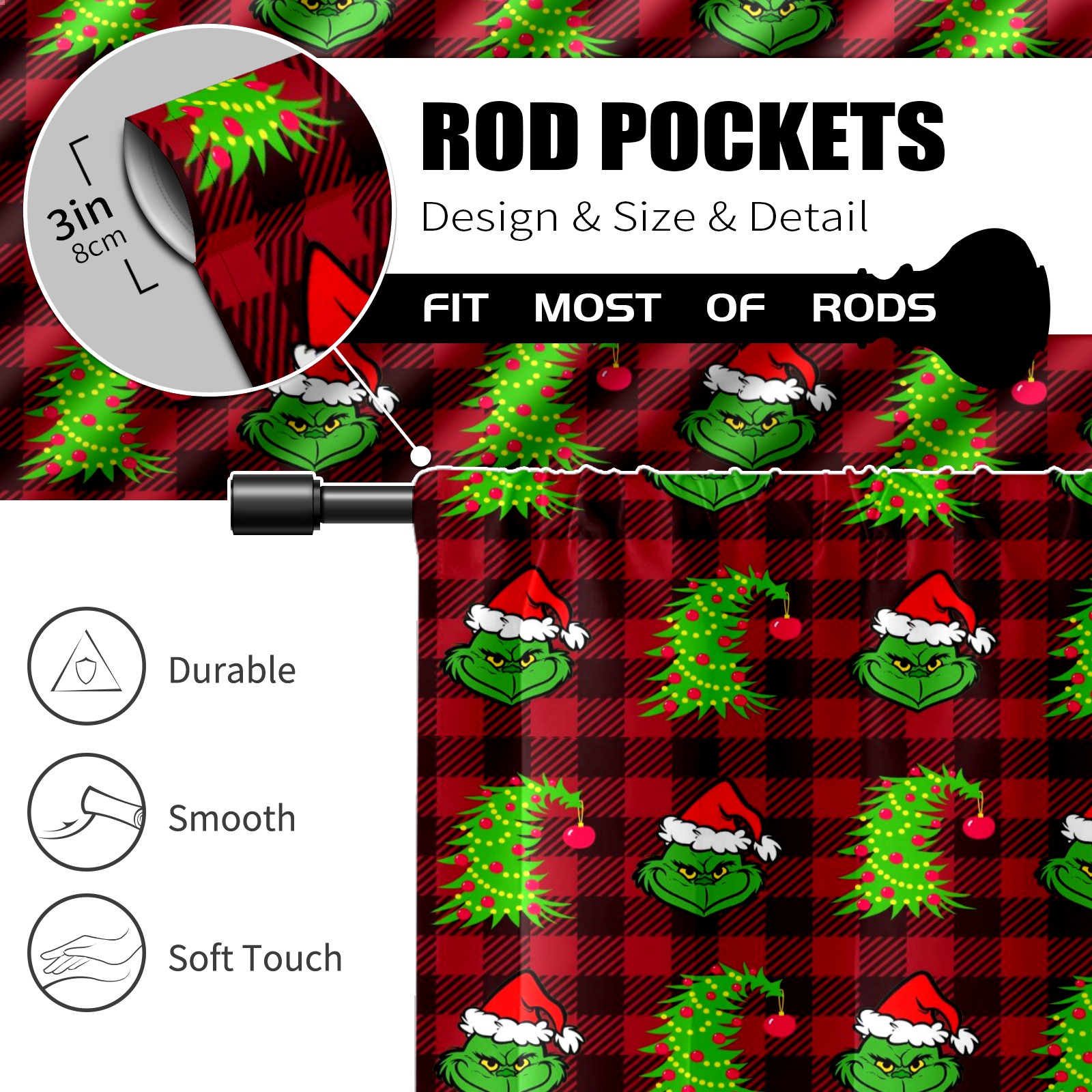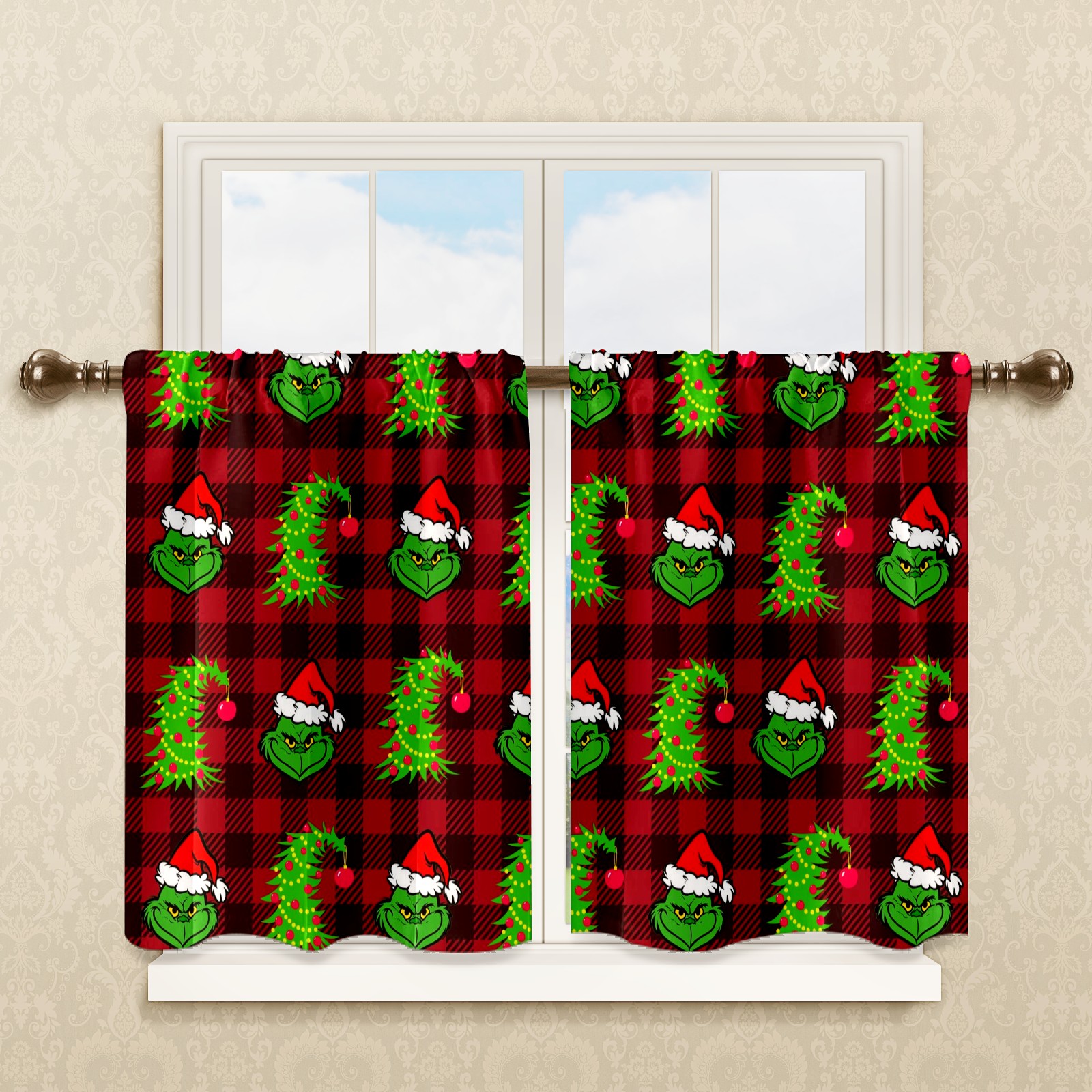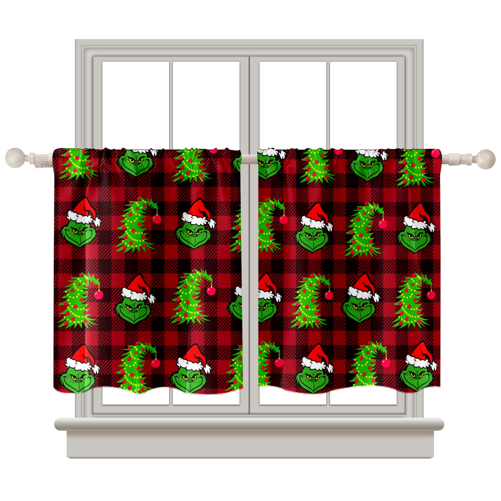 Шторы-панно для дома, декоративные драпировки для гостиной и спальни, легкие и прочные, Red And Black Buffalo Plaid Grinchmas Tree