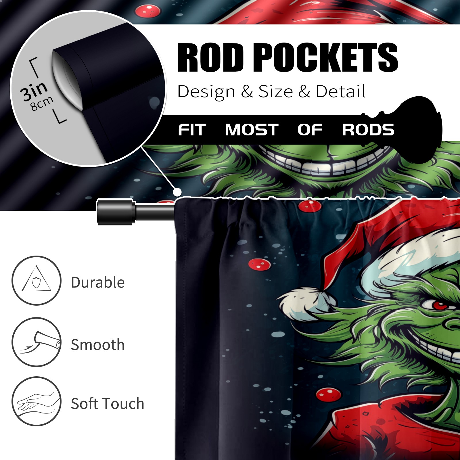 Шторы-панно для дома, декоративные драпировки для гостиной и спальни, легкие и прочные, Christmas Grinch
