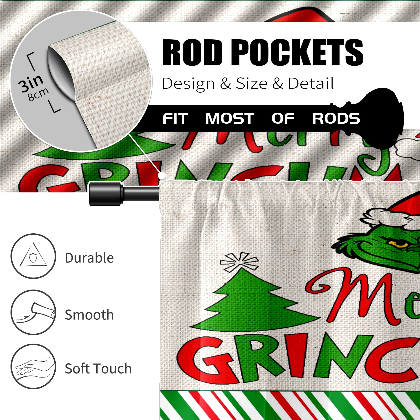 Шторы-панно для дома, декоративные драпировки для гостиной и спальни, легкие и прочные, Christmas Christmas Grinchmas (1)