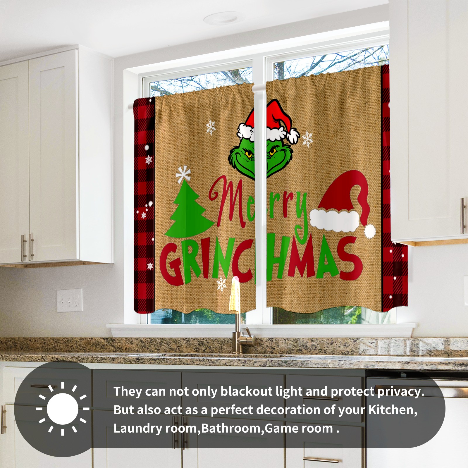 Шторы-панно для дома, декоративные драпировки для гостиной и спальни, легкие и прочные, Merry Christmas Grinchmas