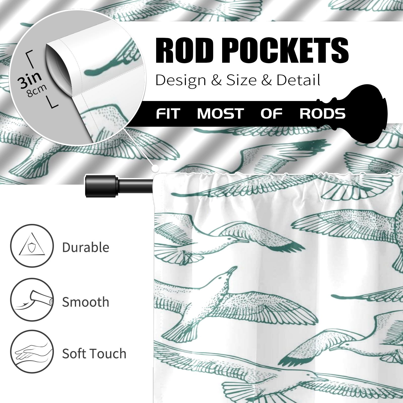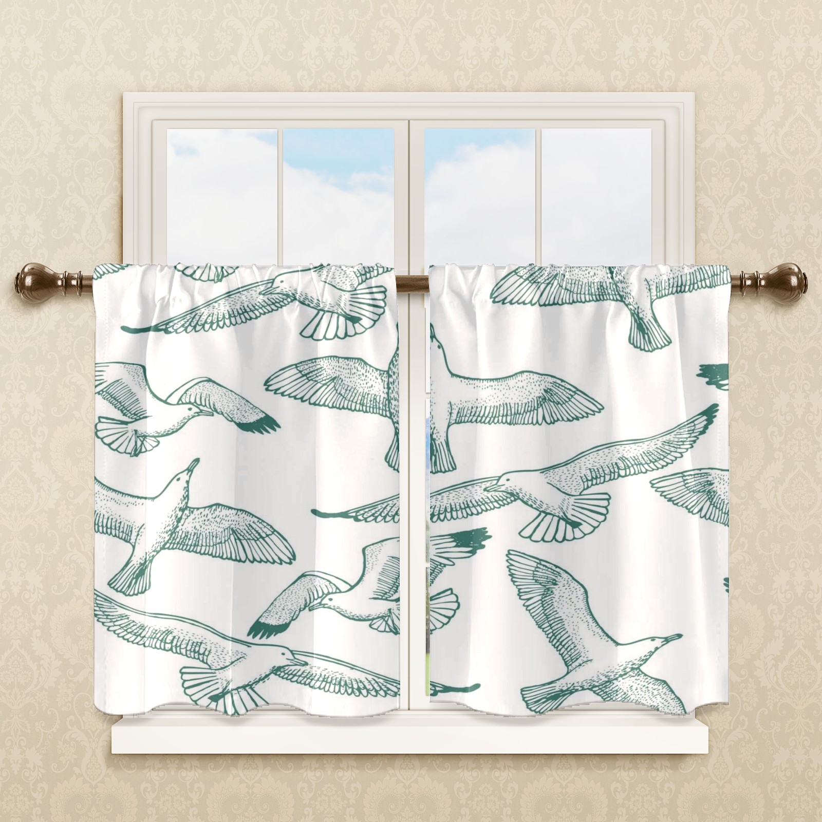 Шторы-панно для дома, декоративные драпировки для гостиной и спальни, легкие и прочные, Light-seagull-seamless-hand-draw