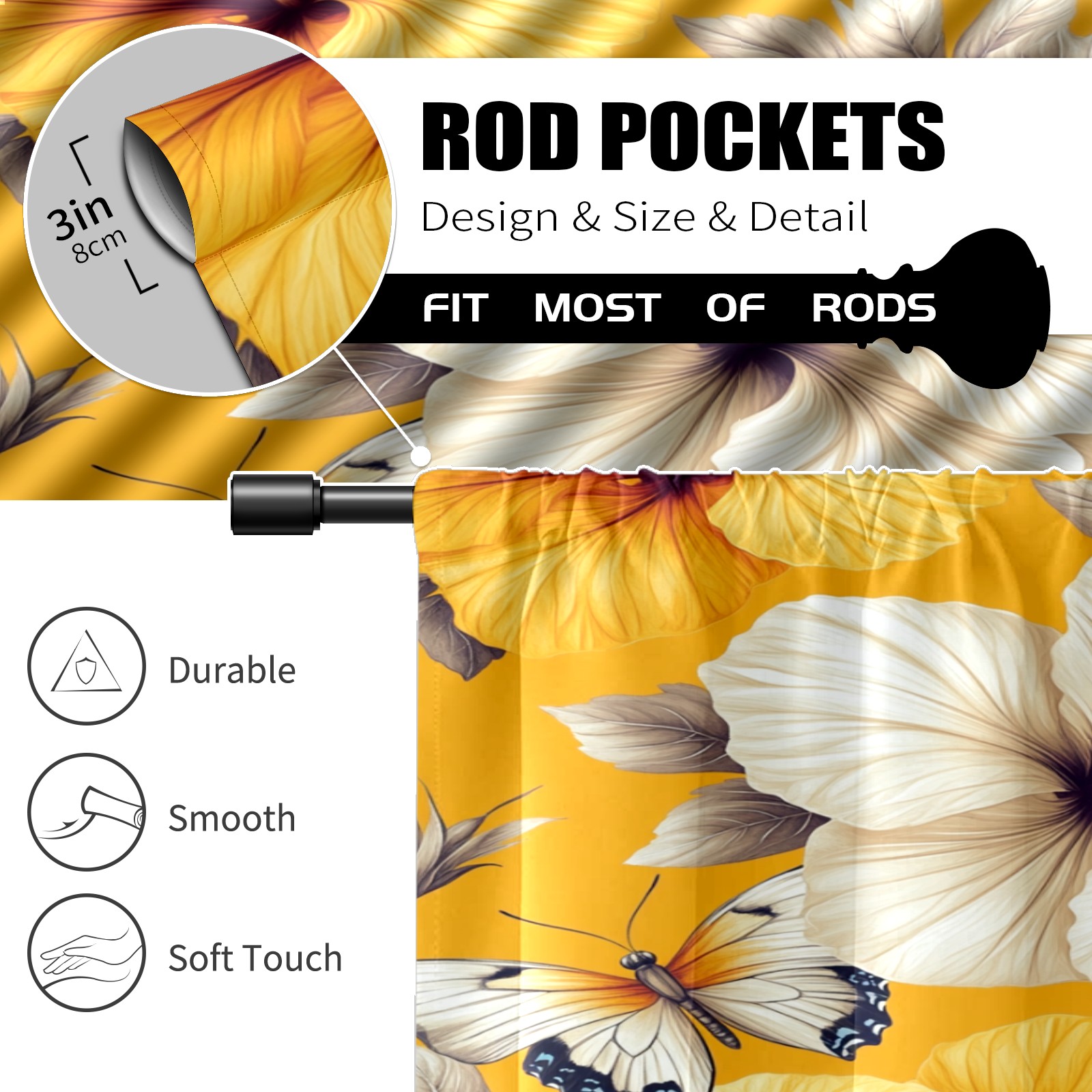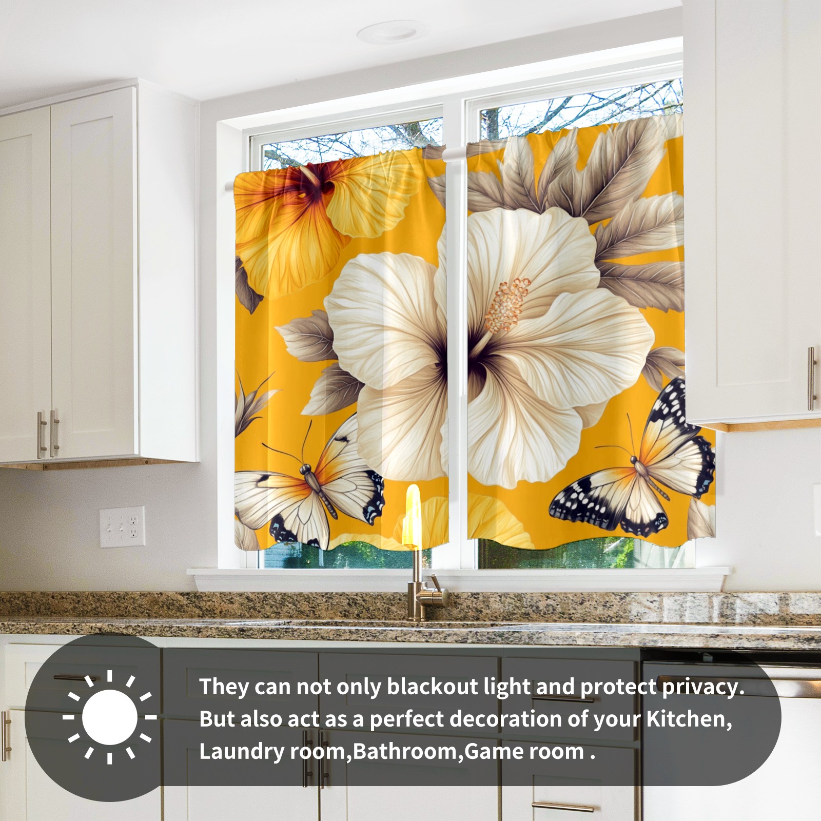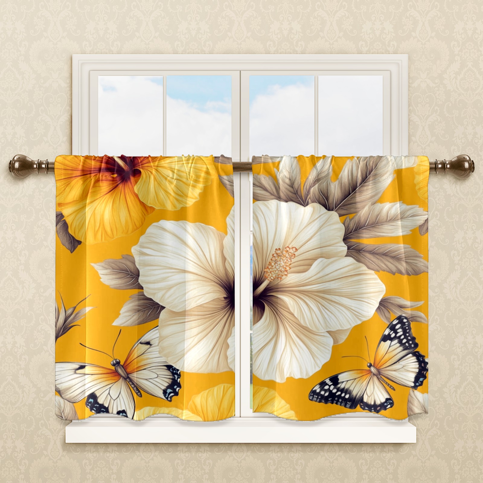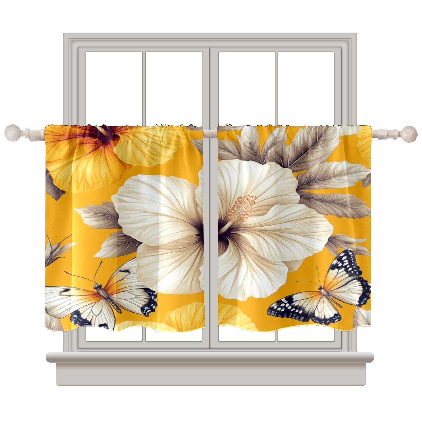 Шторы-панно для дома, декоративные драпировки для гостиной и спальни, легкие и прочные, Yellow Hibiscus Butterfly Flowers