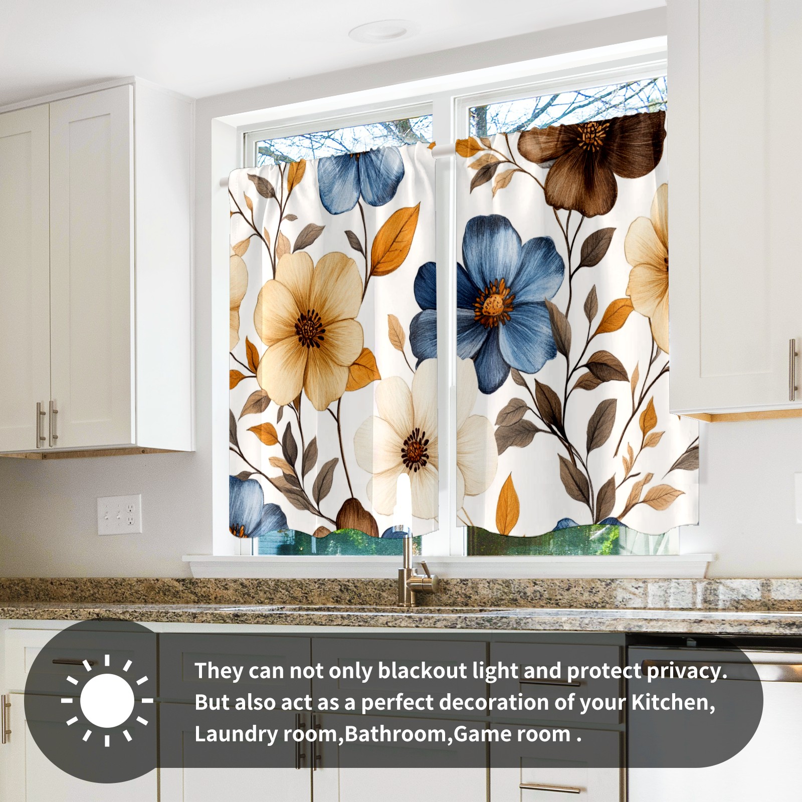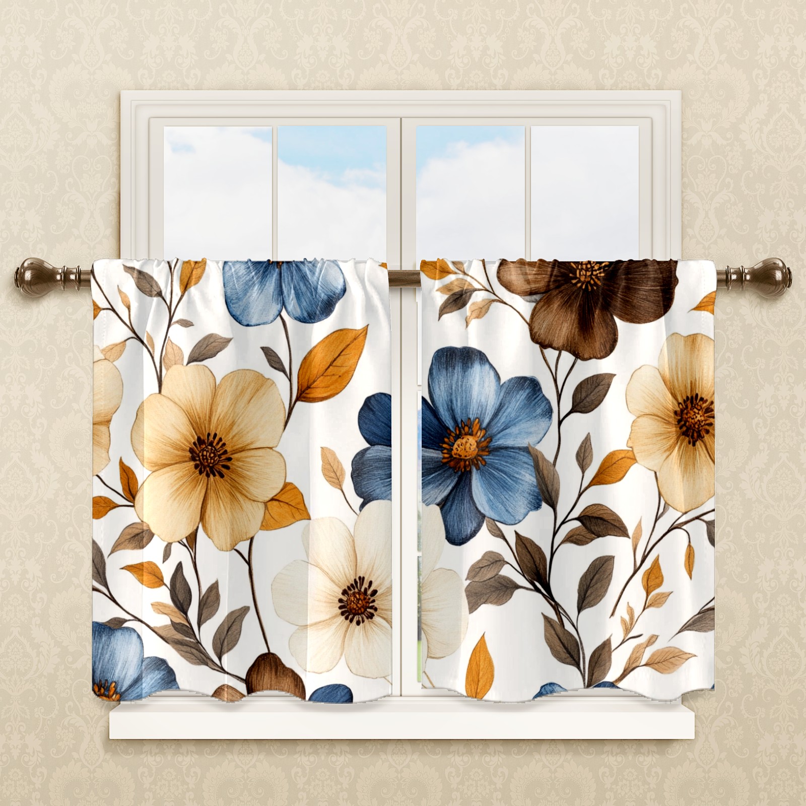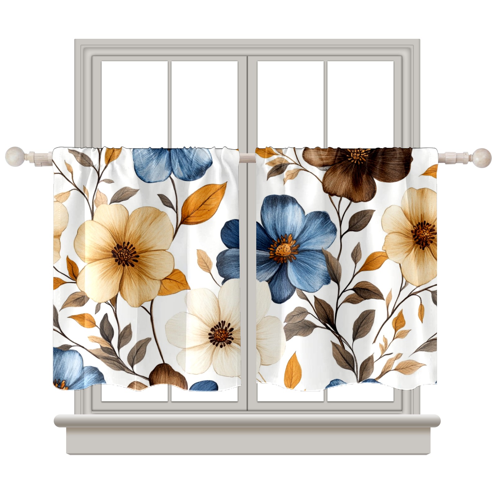 Шторы-панно для дома, декоративные драпировки для гостиной и спальни, легкие и прочные, Brown Blue Flowers