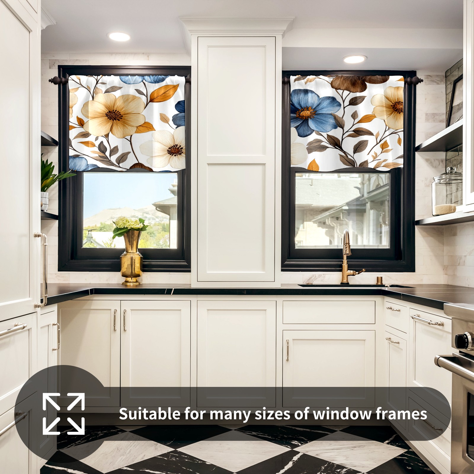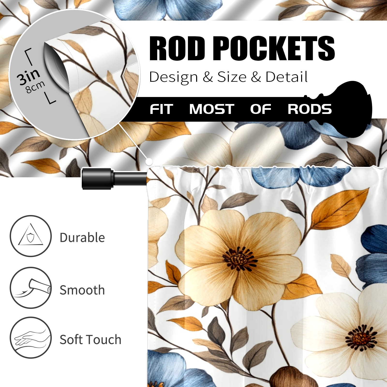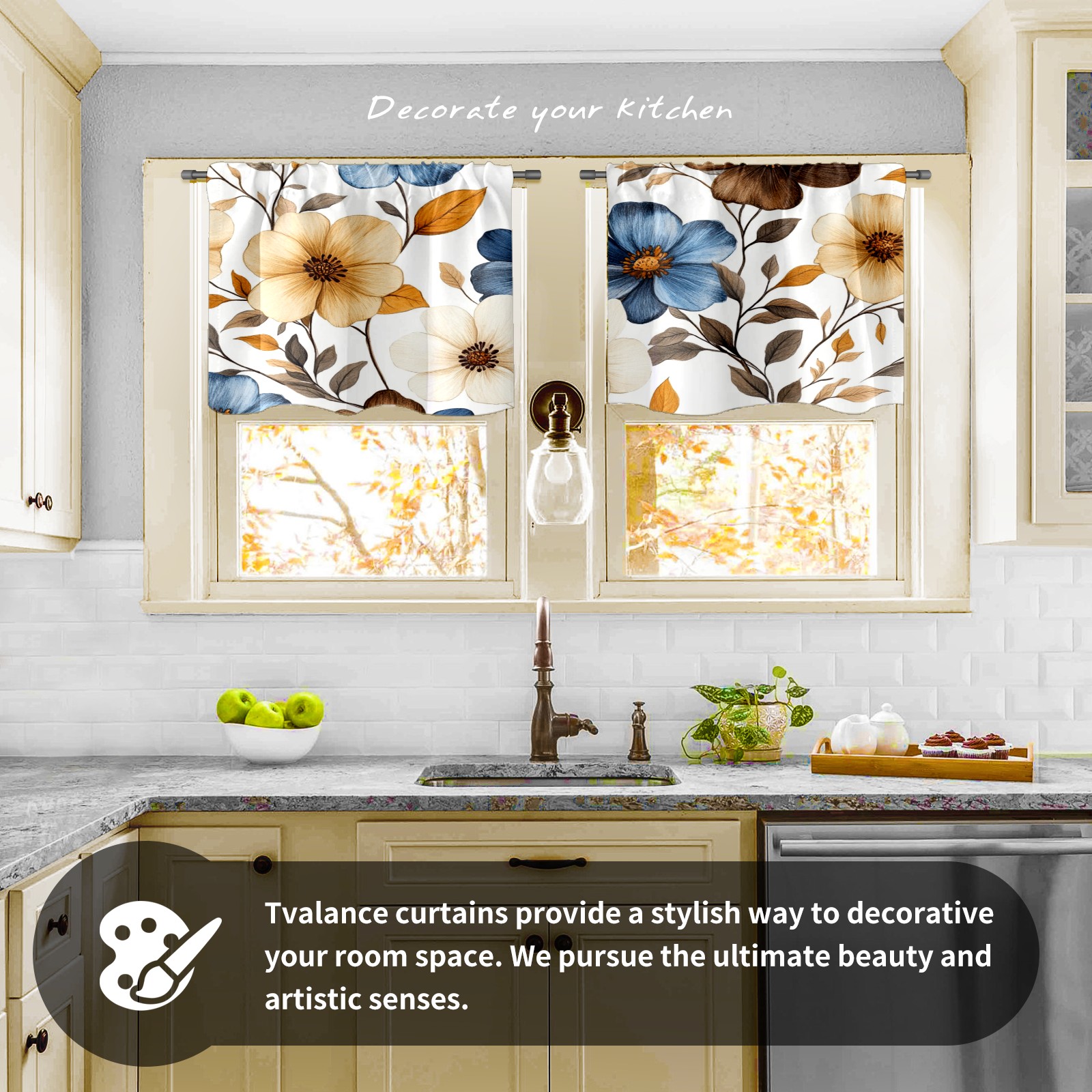 Шторы-панно для дома, декоративные драпировки для гостиной и спальни, легкие и прочные, Brown Blue Flowers