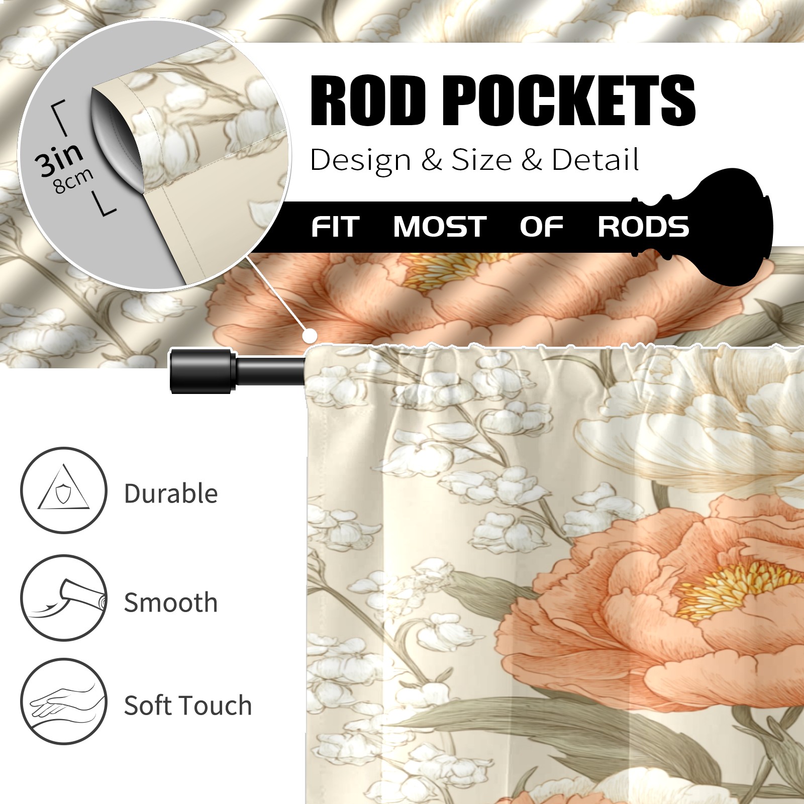 Шторы-панно для дома, декоративные драпировки для гостиной и спальни, легкие и прочные, Soft-colored Peony