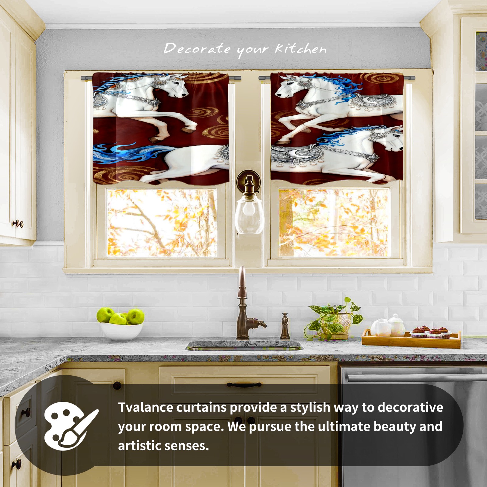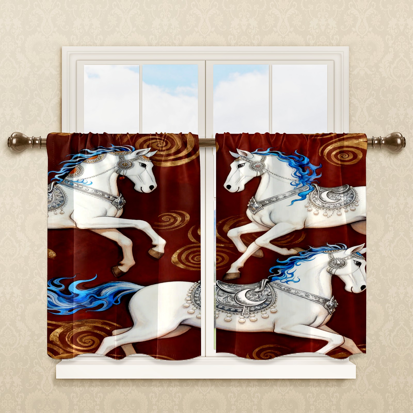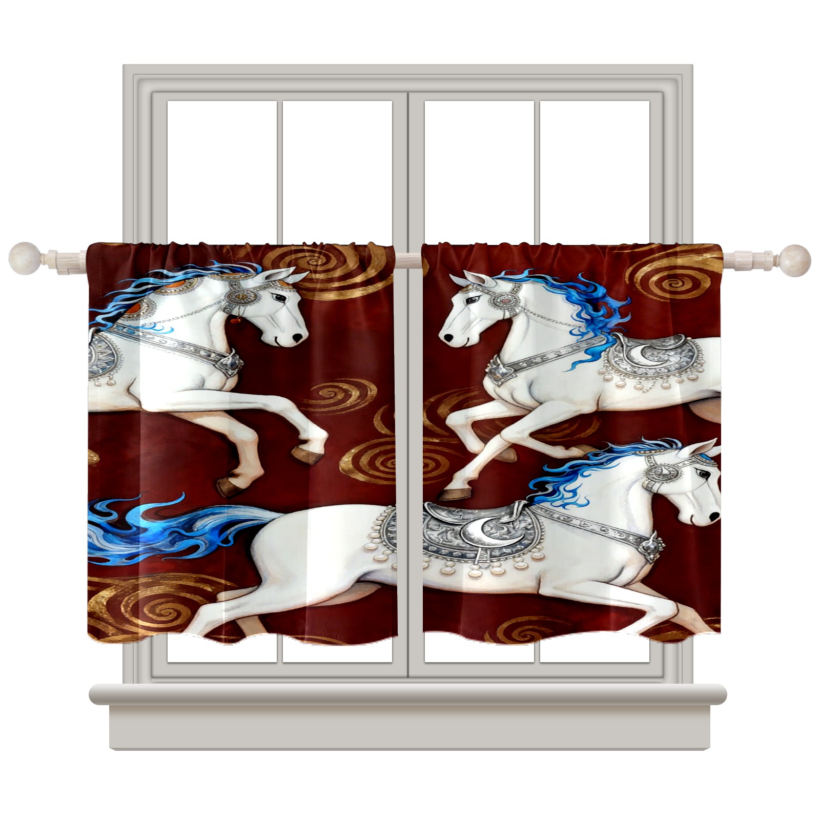 Шторы-панно для дома, декоративные драпировки для гостиной и спальни, легкие и прочные, Three Blue-adorned White Horses