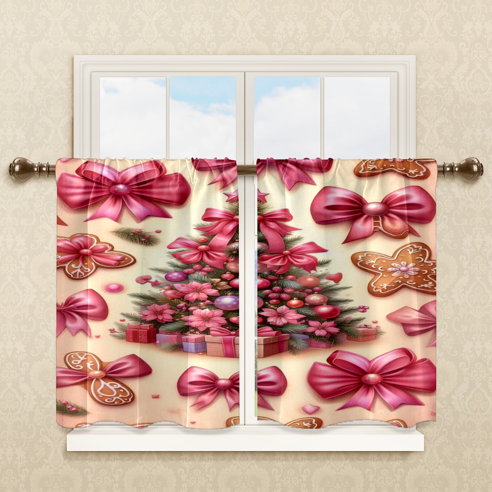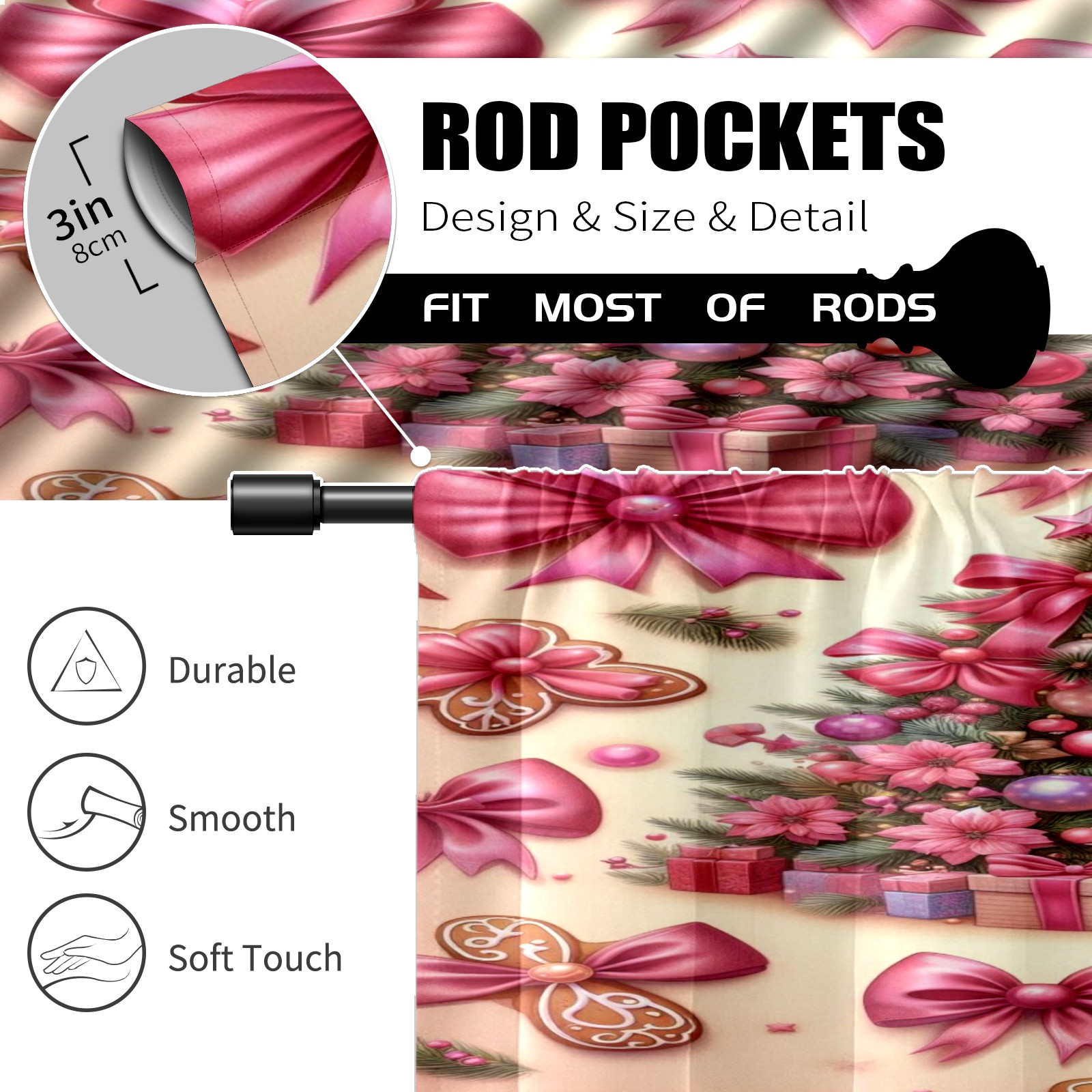 Шторы-панно для дома, декоративные драпировки для гостиной и спальни, легкие и прочные, Pink Bows Christmas Tree