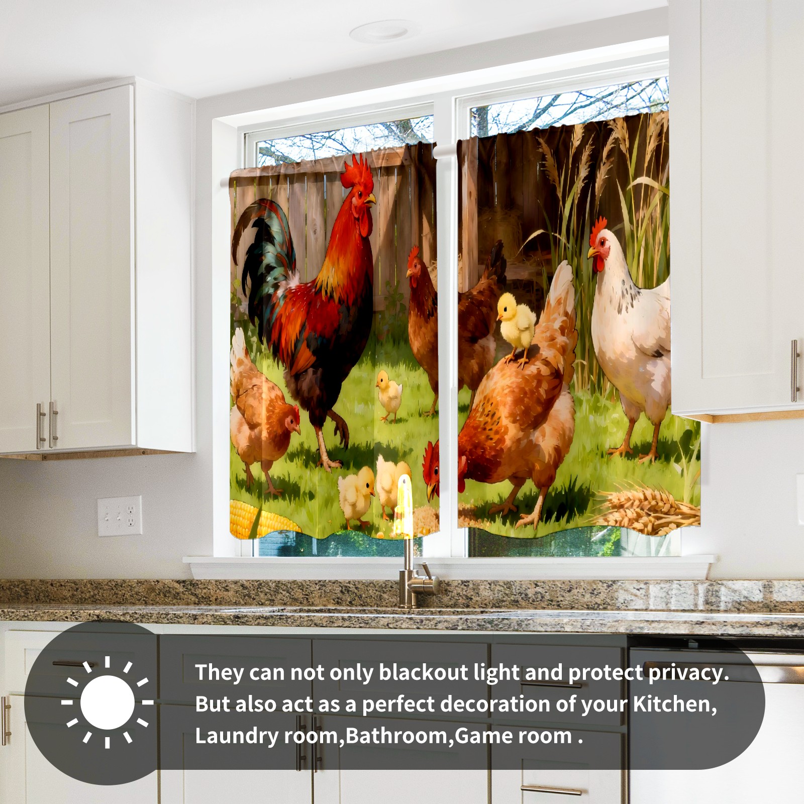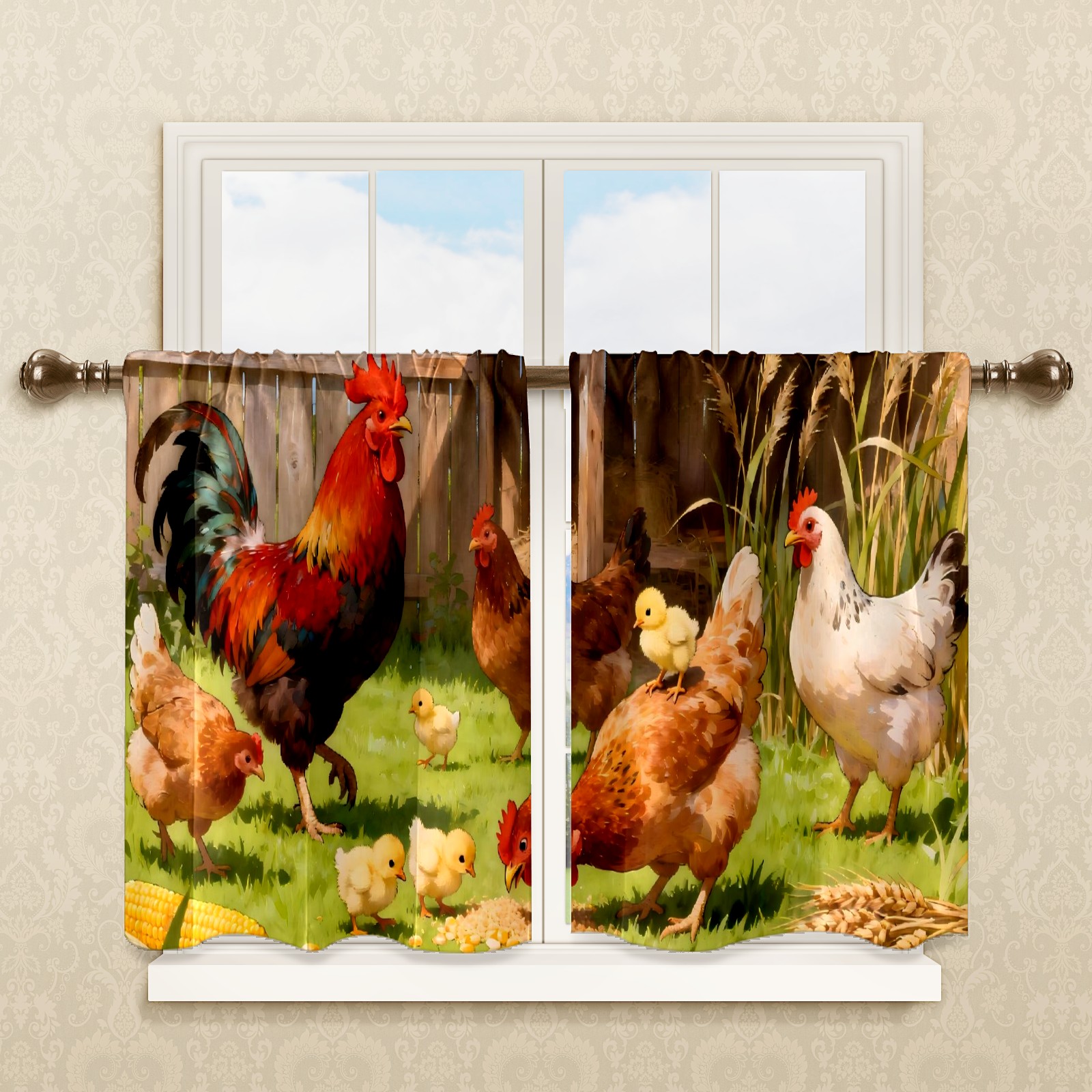 Шторы-панно для дома, декоративные драпировки для гостиной и спальни, легкие и прочные, Farm Rooster Chickens(011)