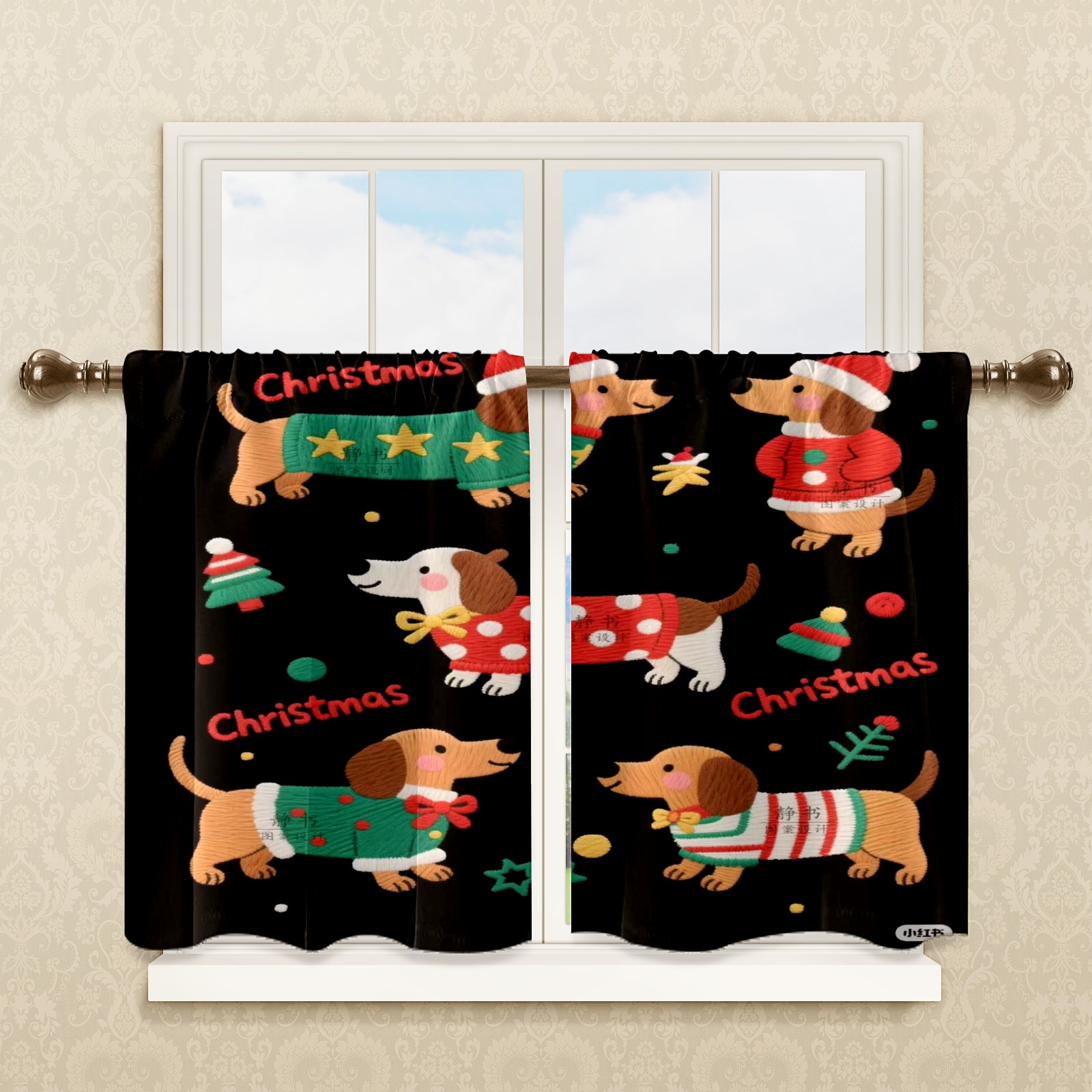 Шторы-панно для дома, декоративные драпировки для гостиной и спальни, легкие и прочные, Christmas Dog