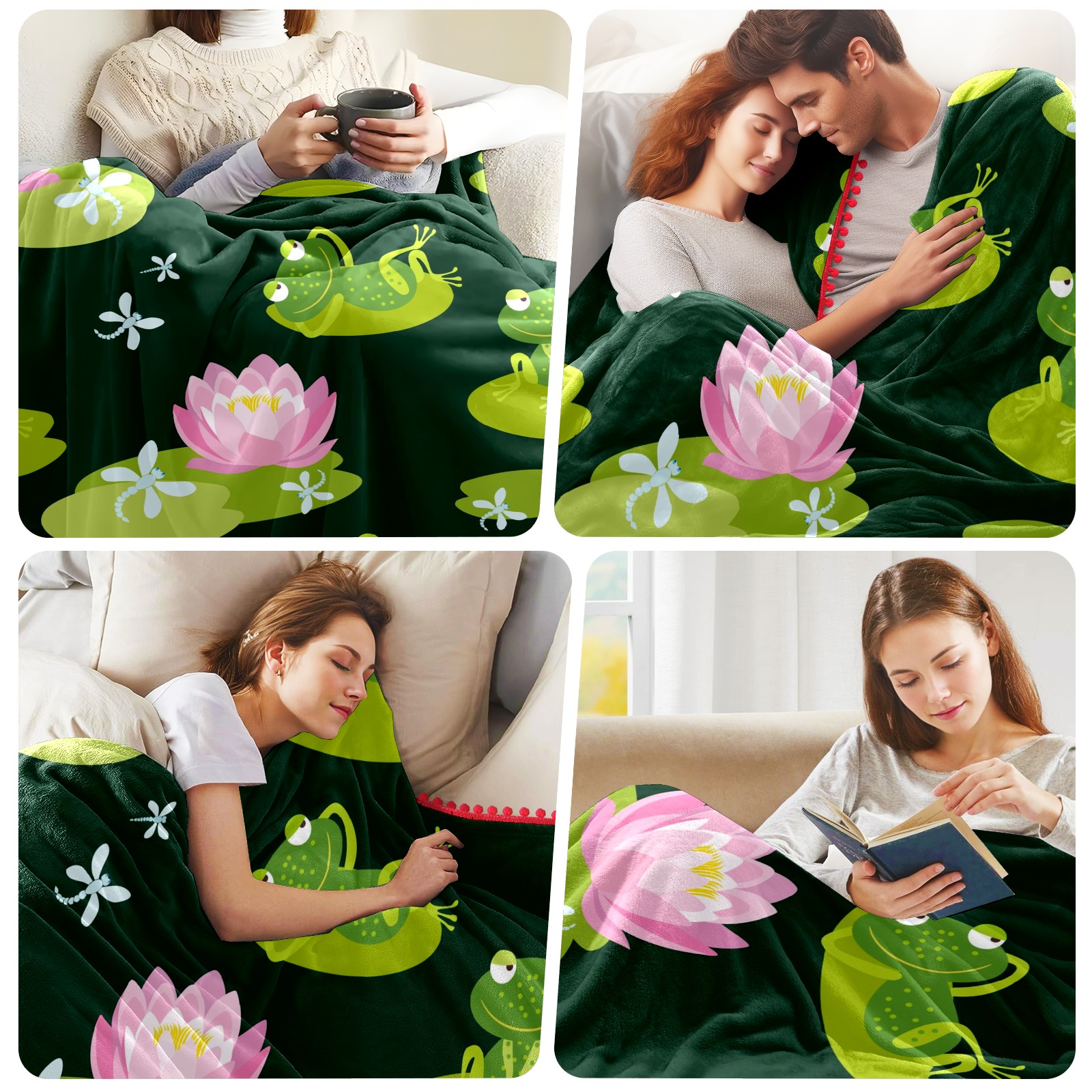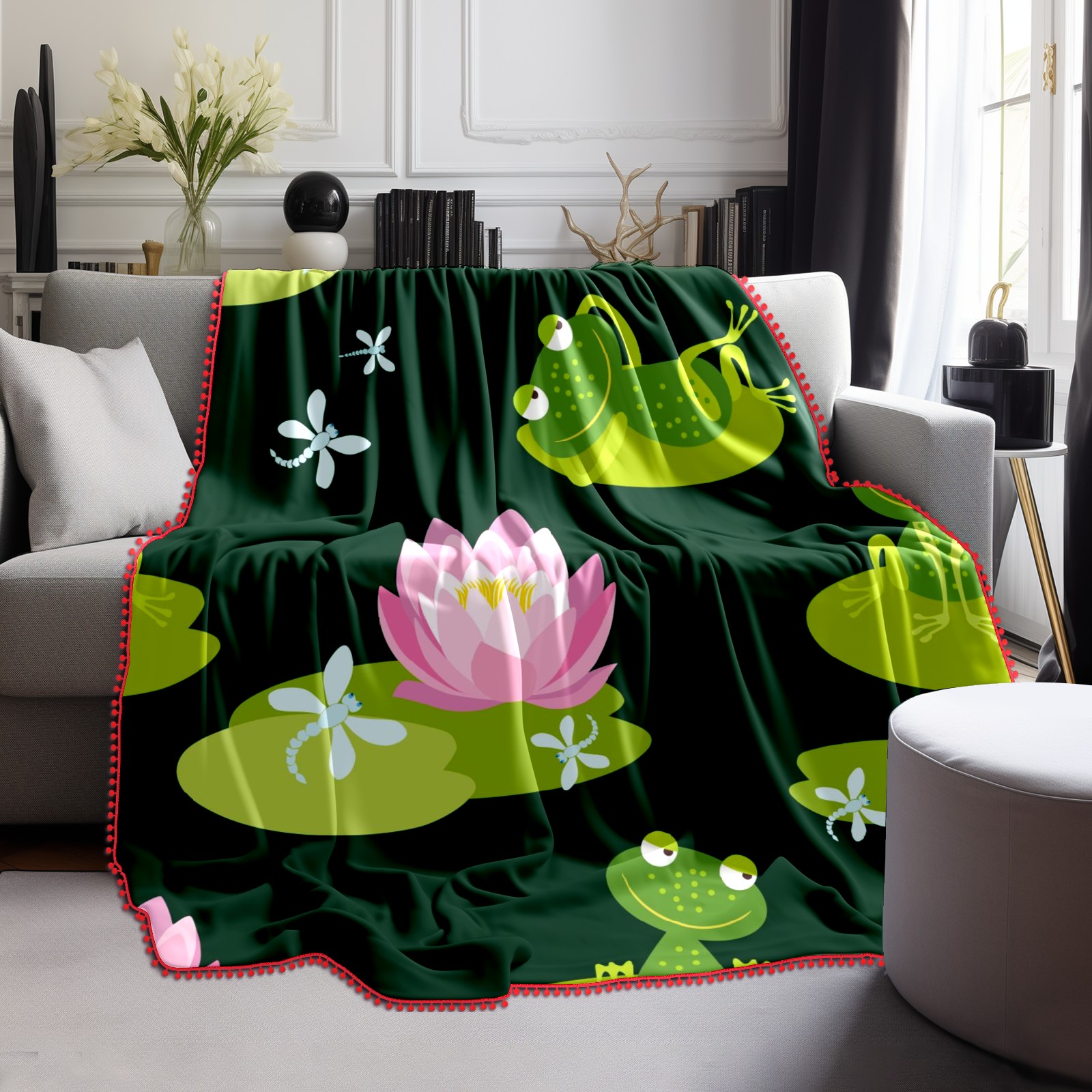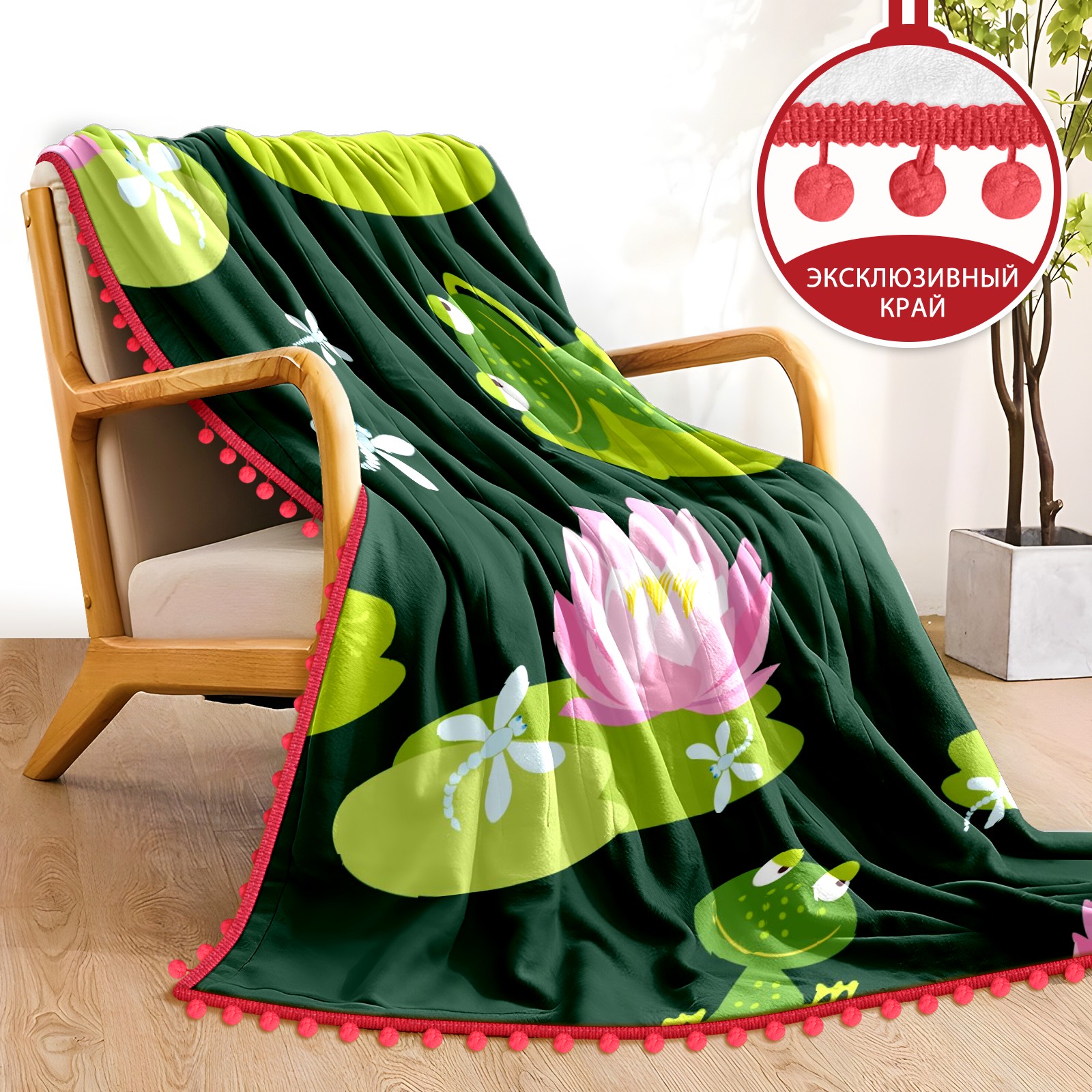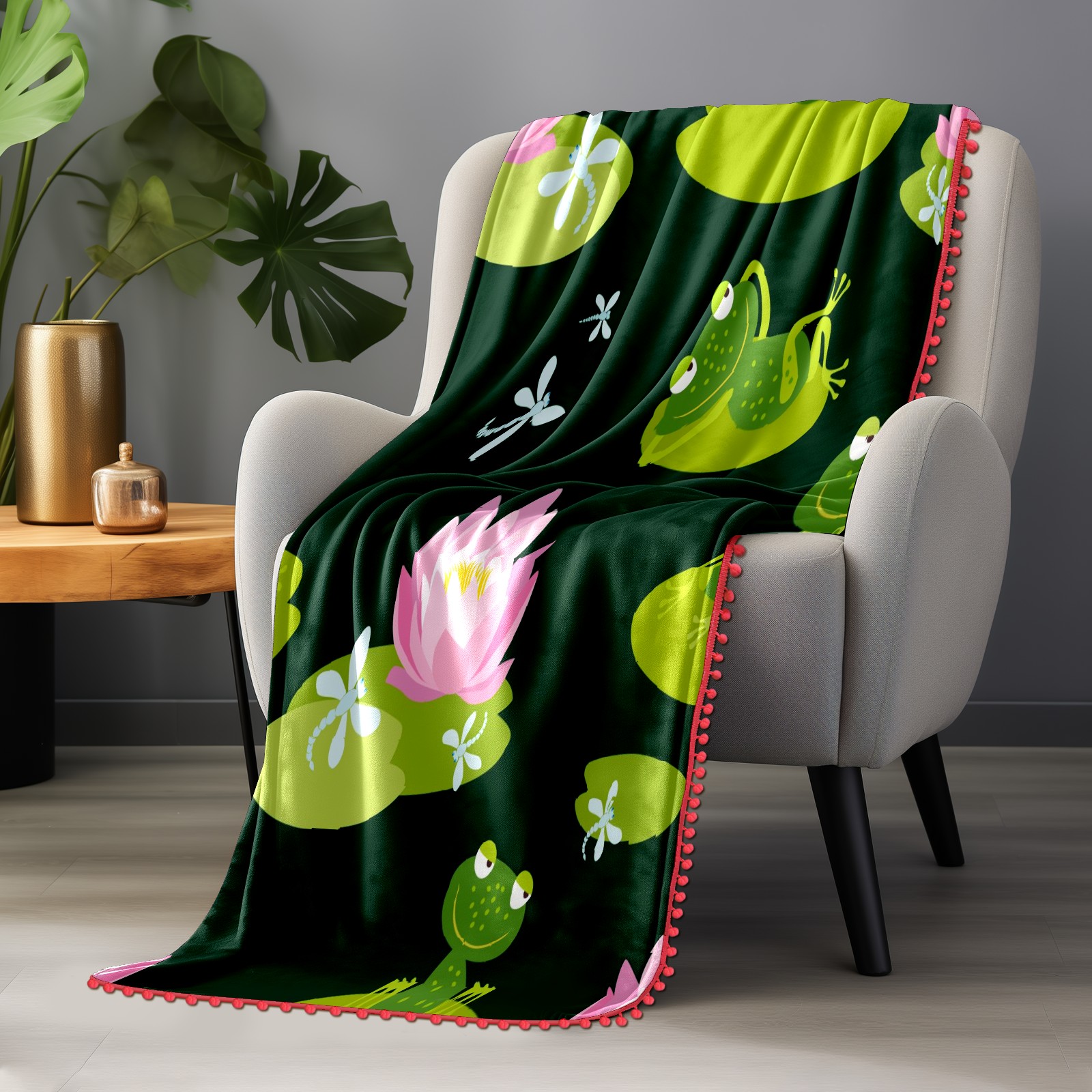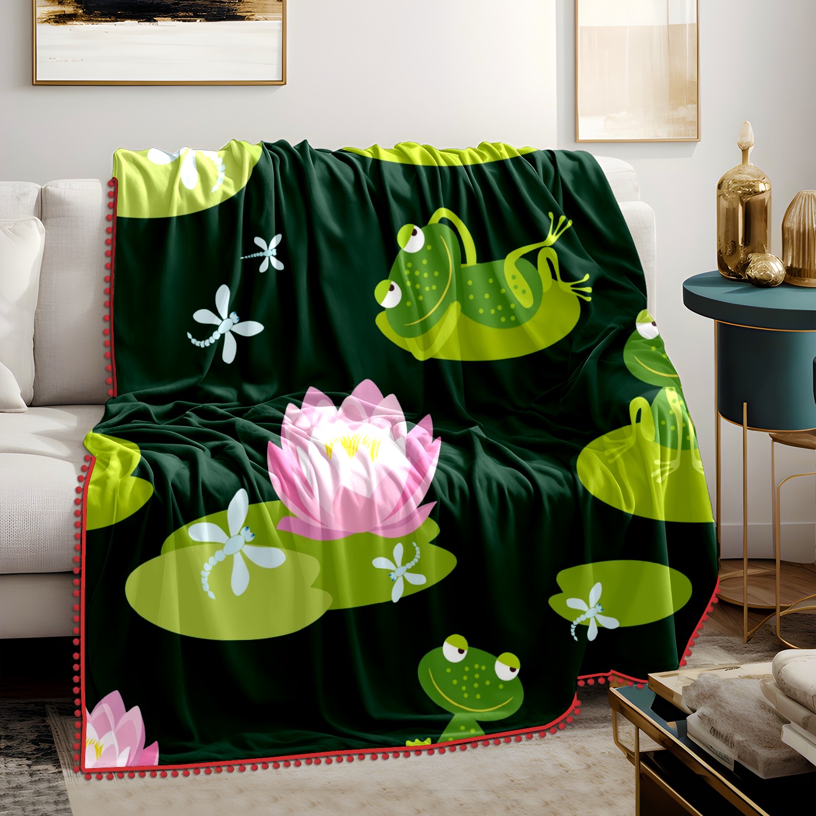 流苏毛毯 Frogs On Lotus Leaf