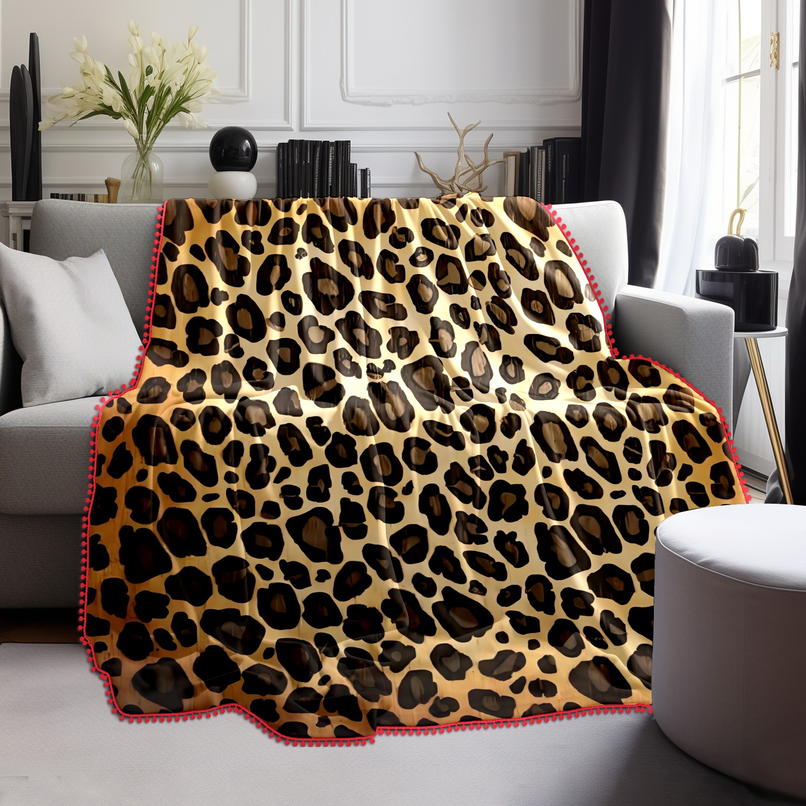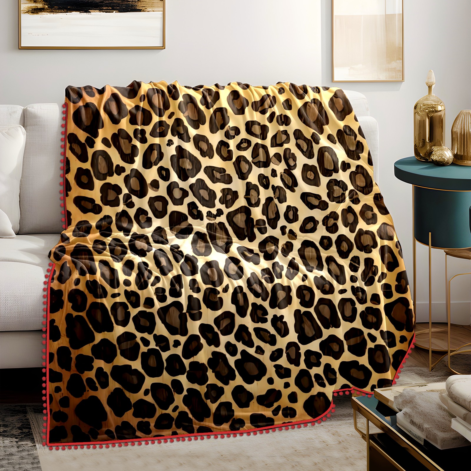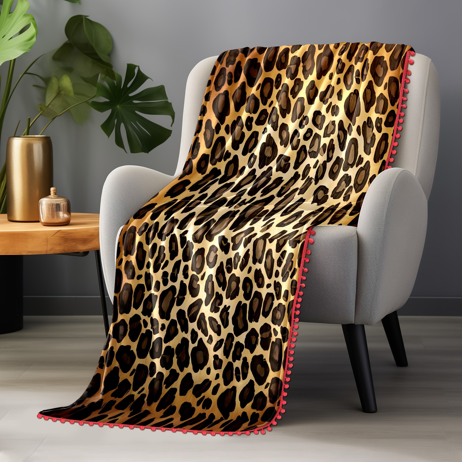 流苏毛毯 Brown Leopard Print (1)