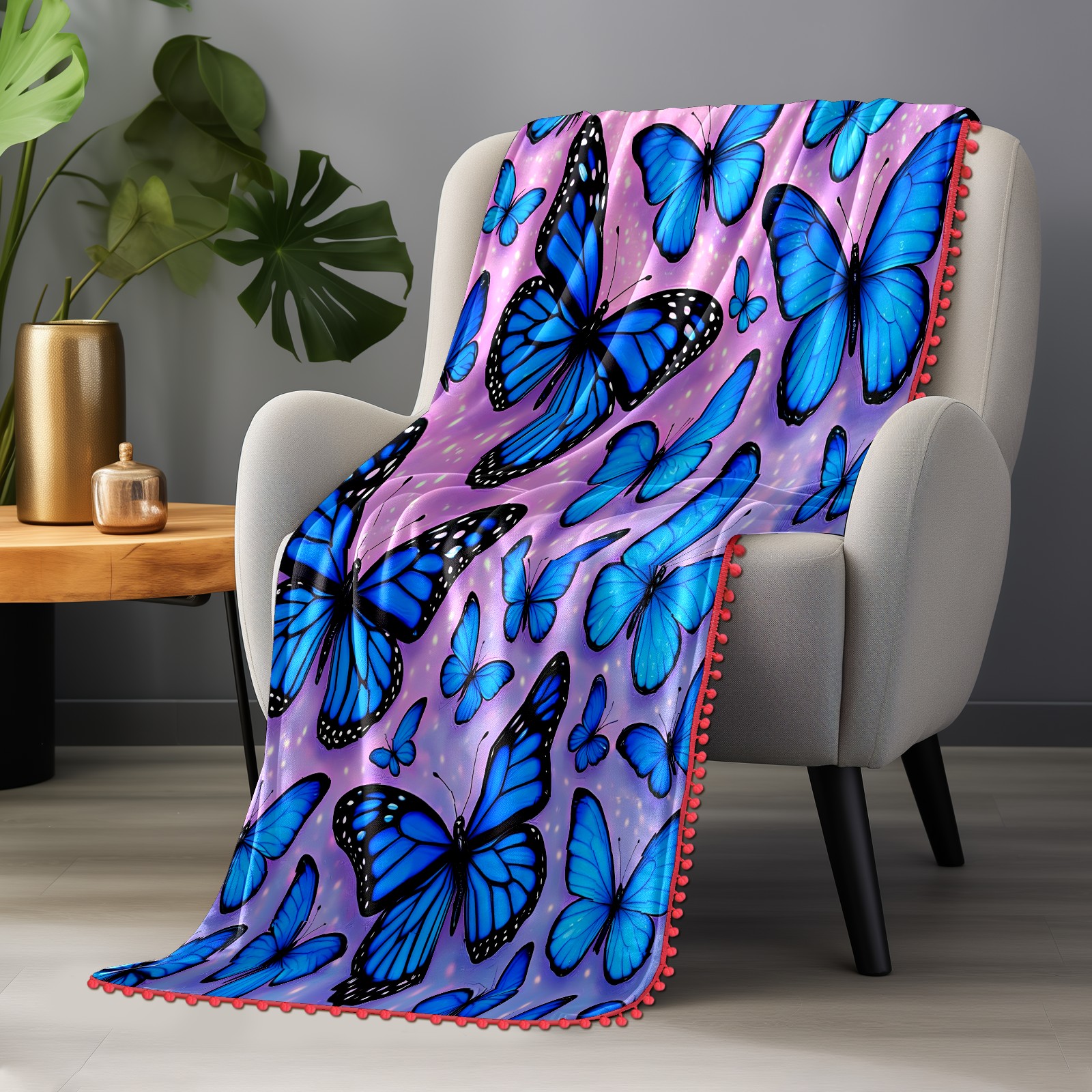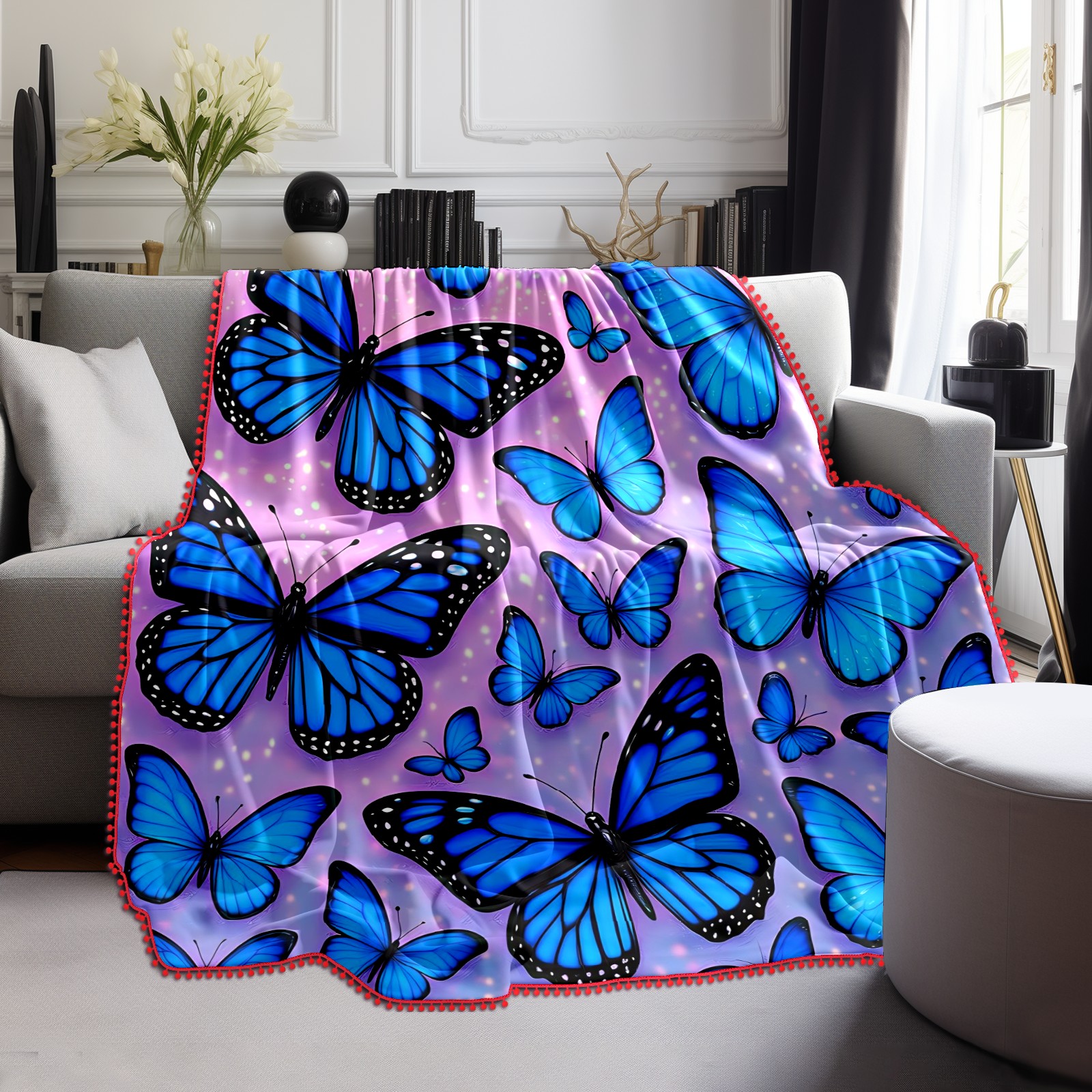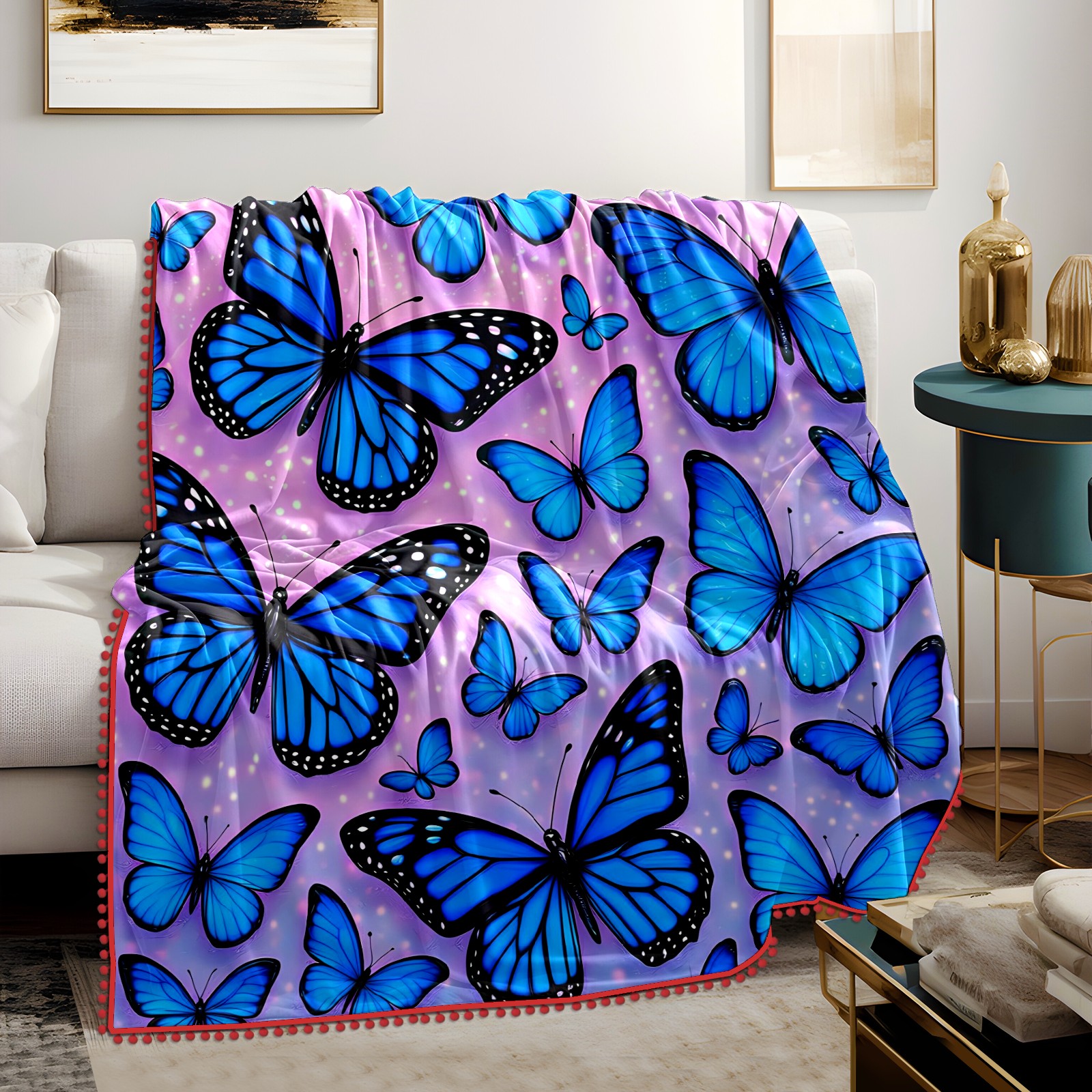 流苏毛毯 Blue Butterflies (1)