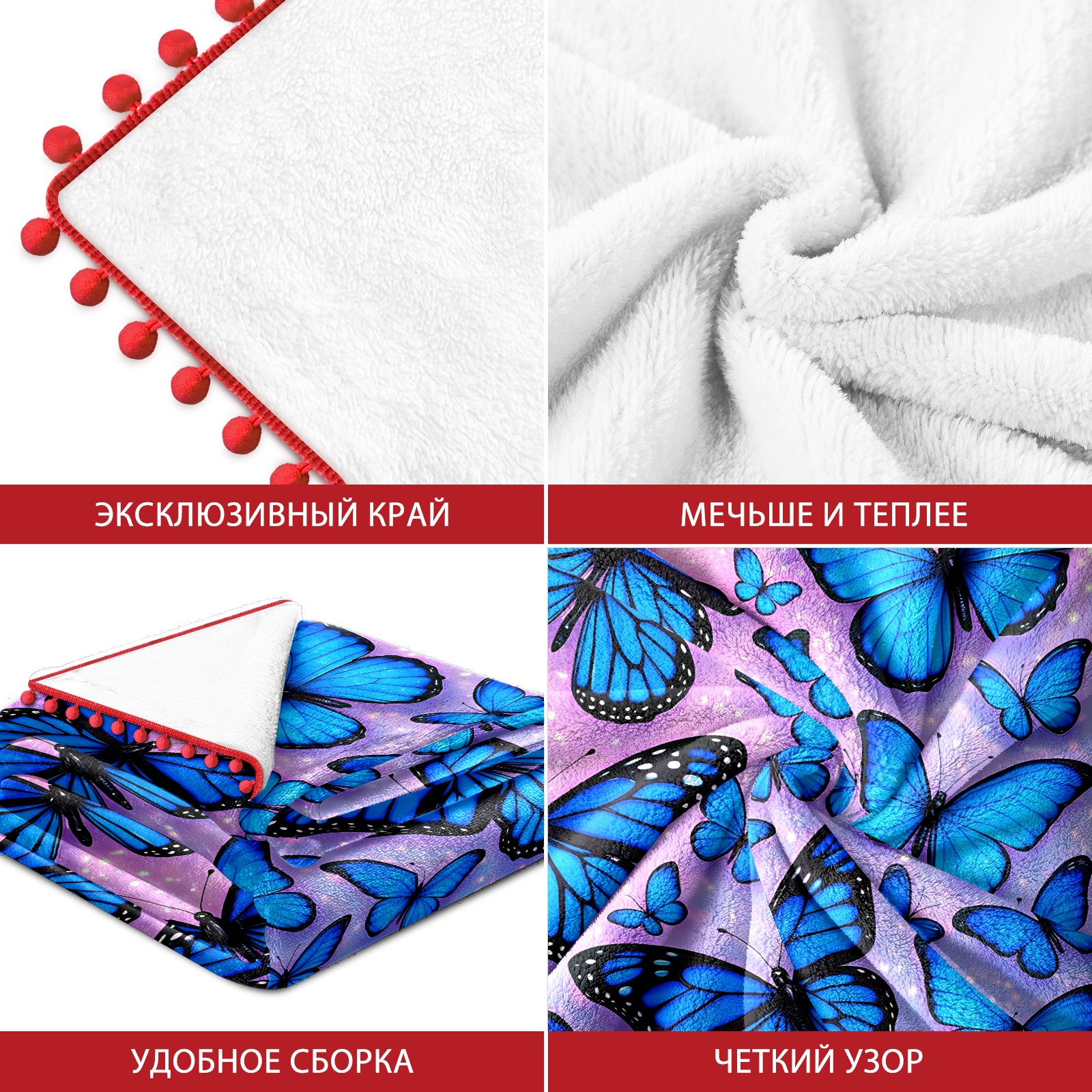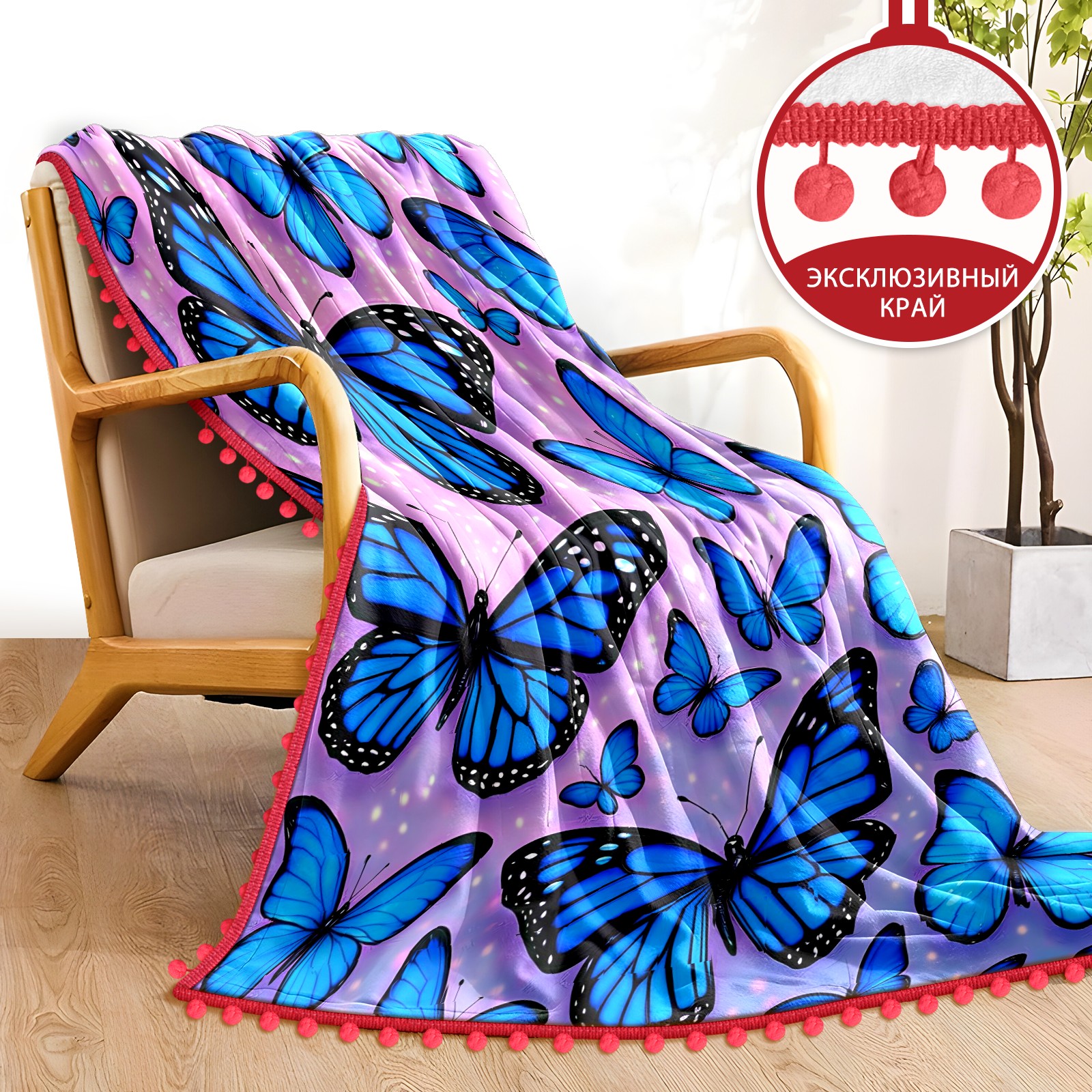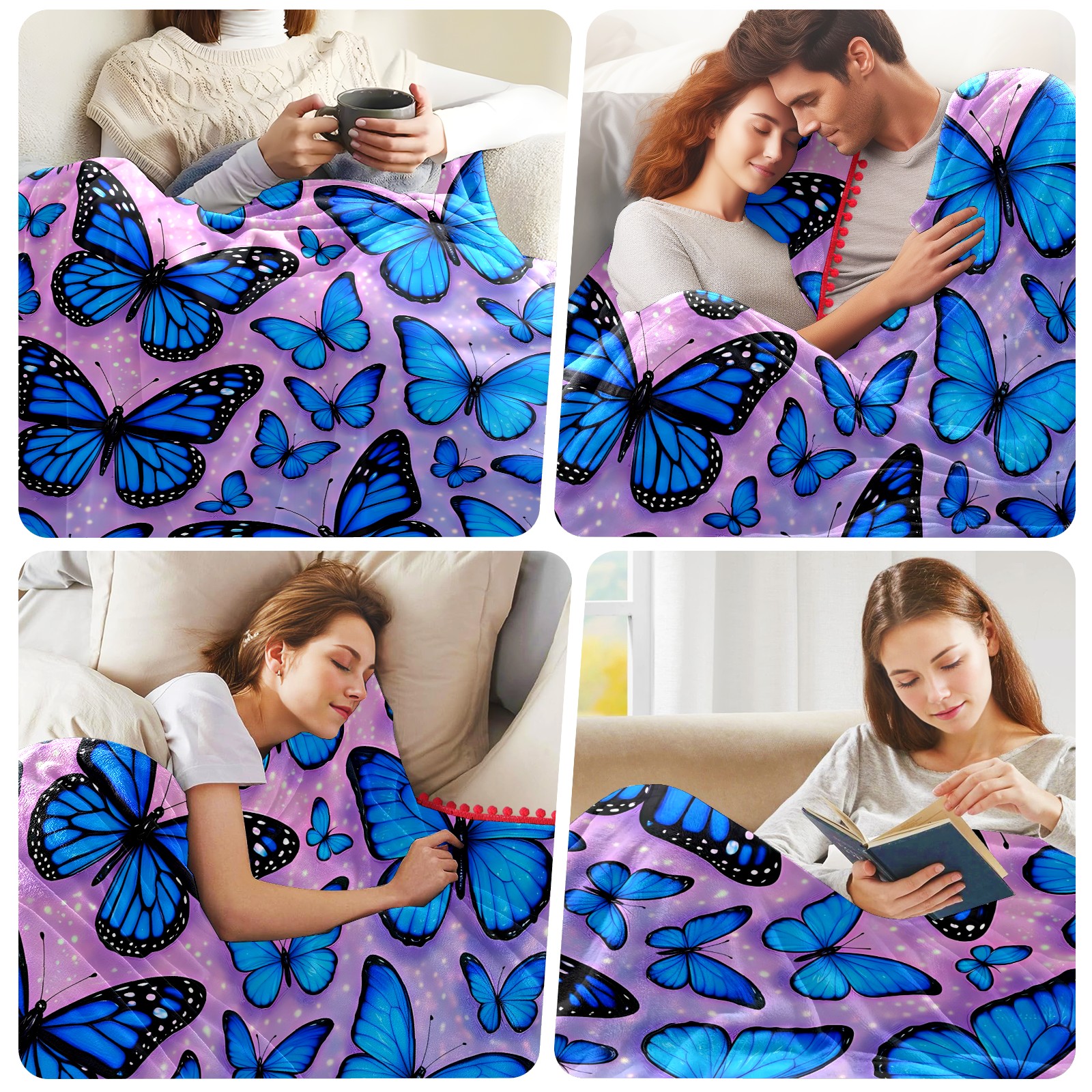 流苏毛毯 Blue Butterflies (1)