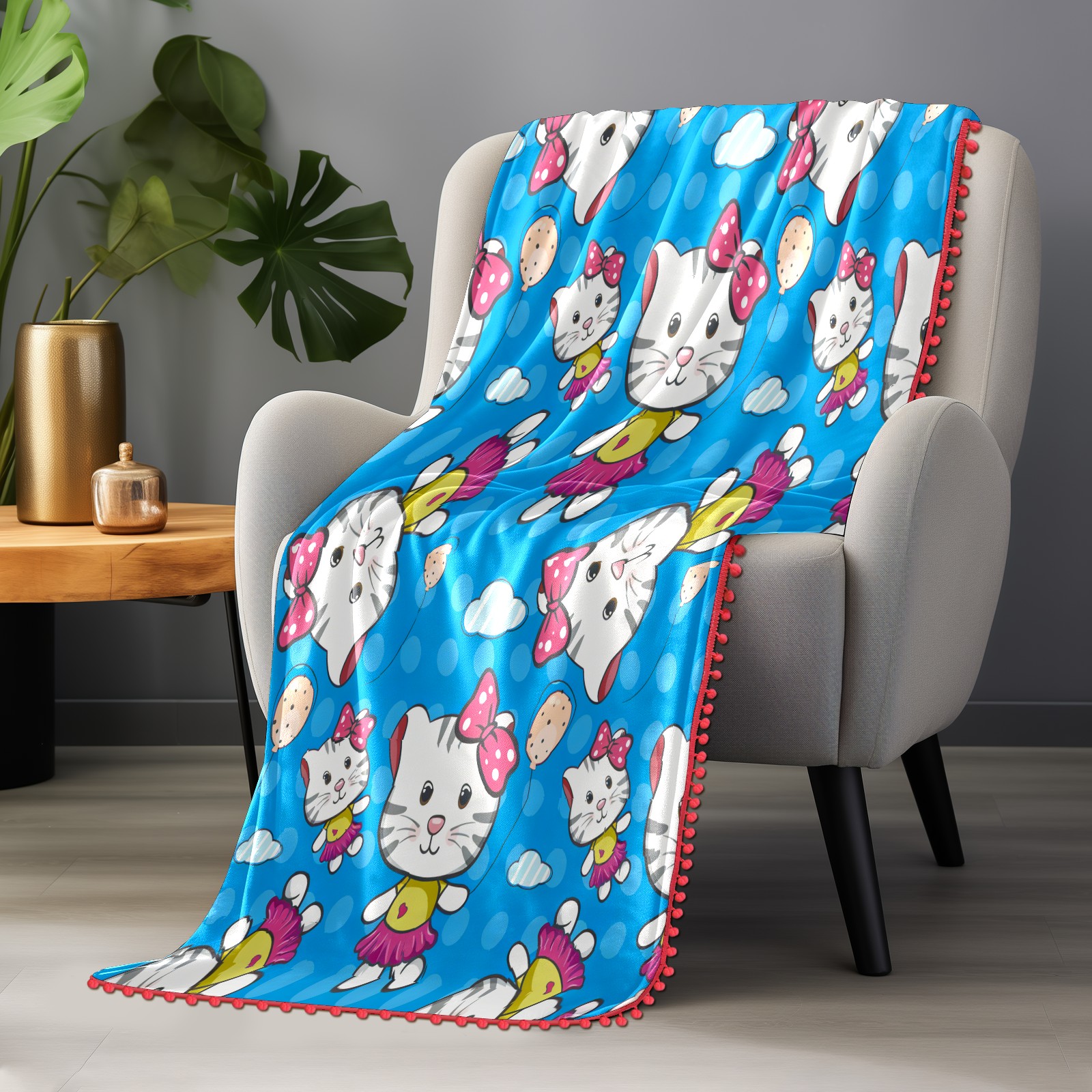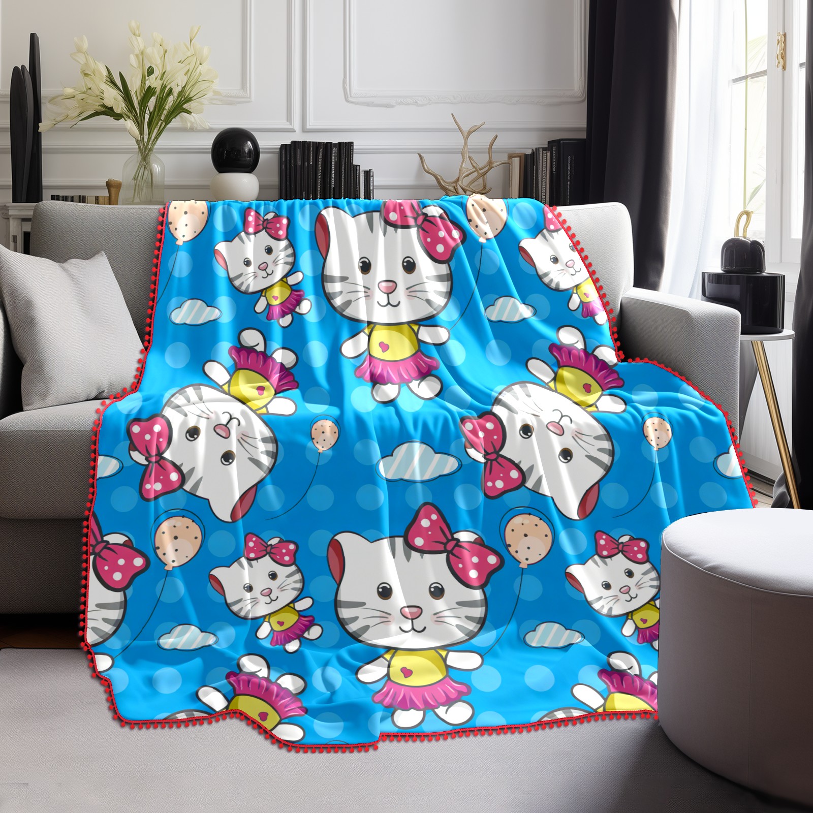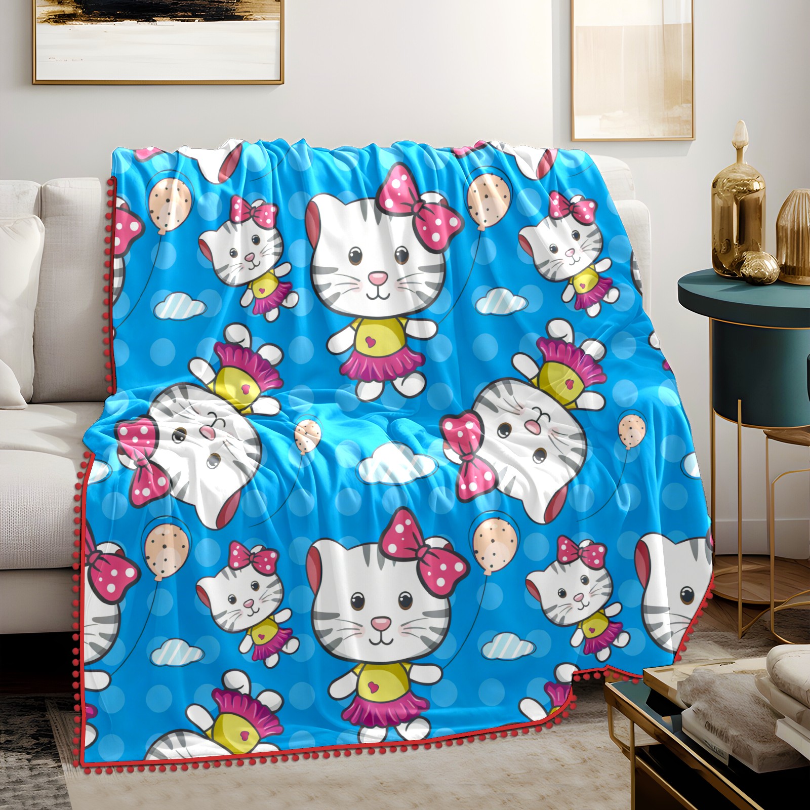 流苏毛毯 Hello Cat Blue
