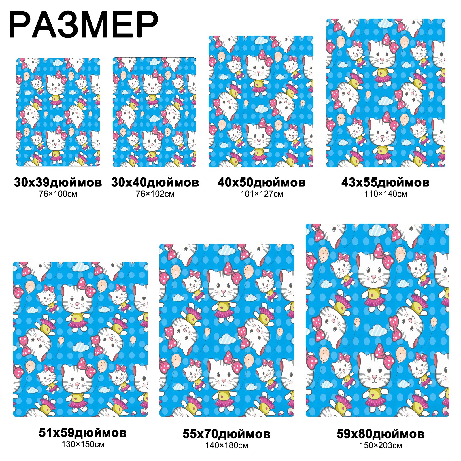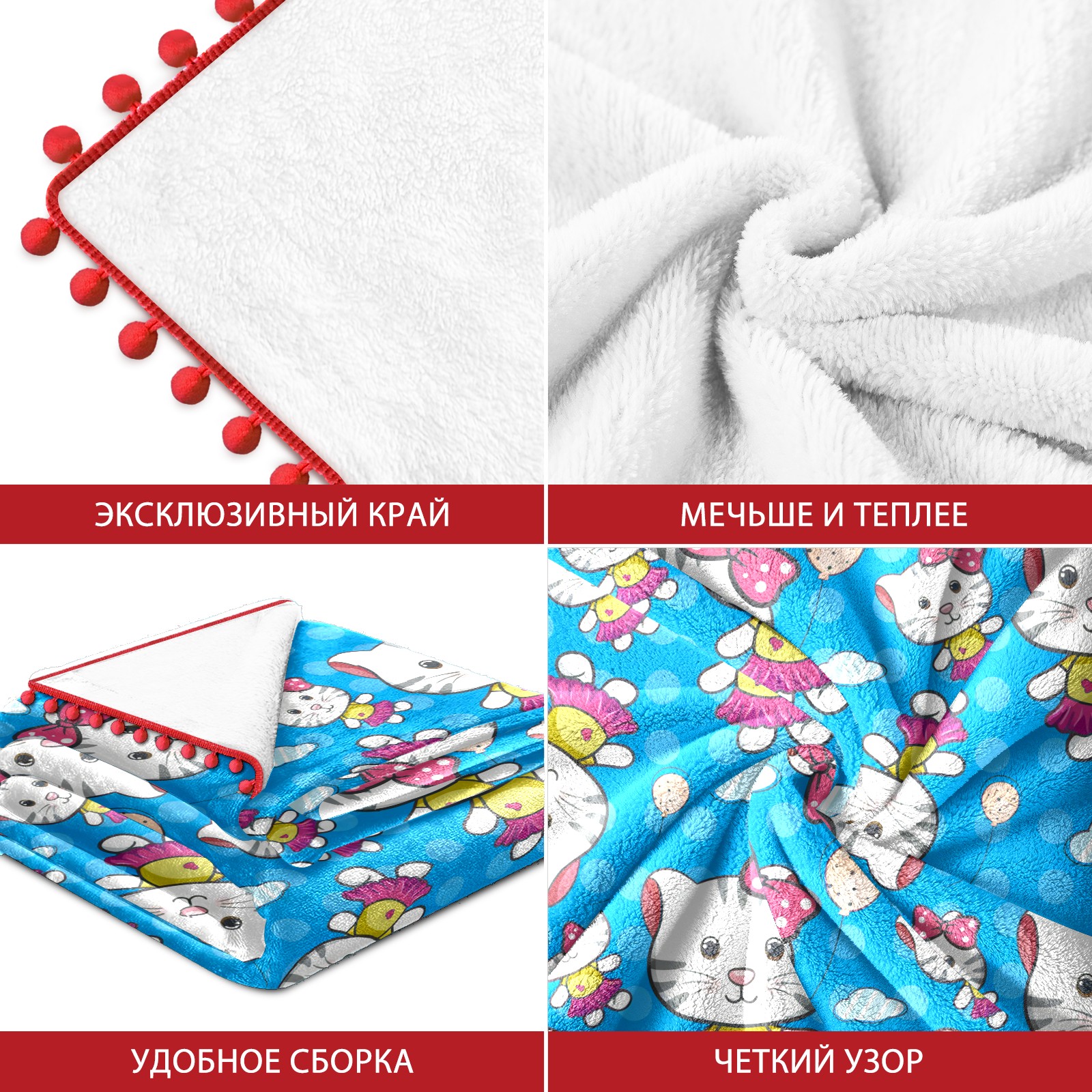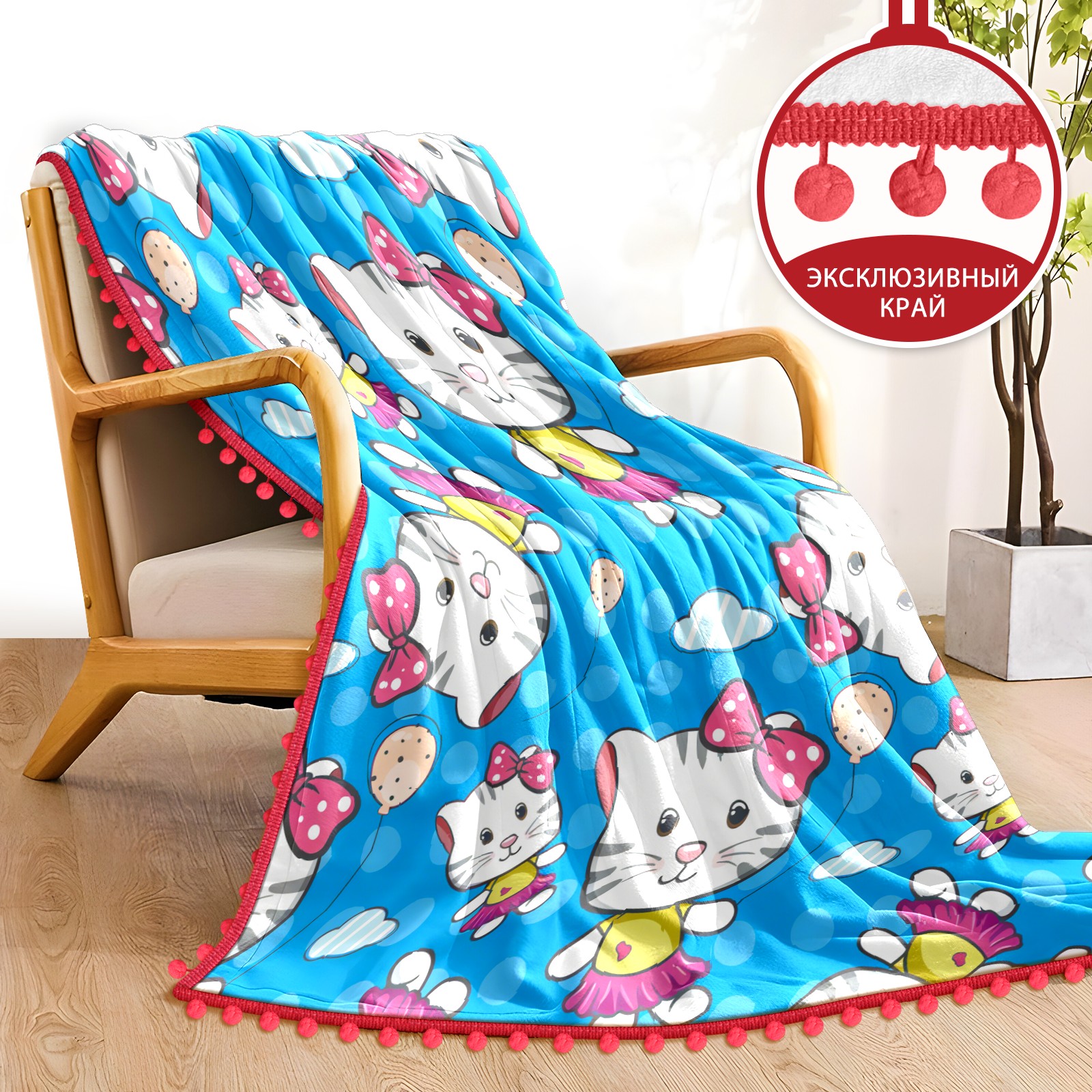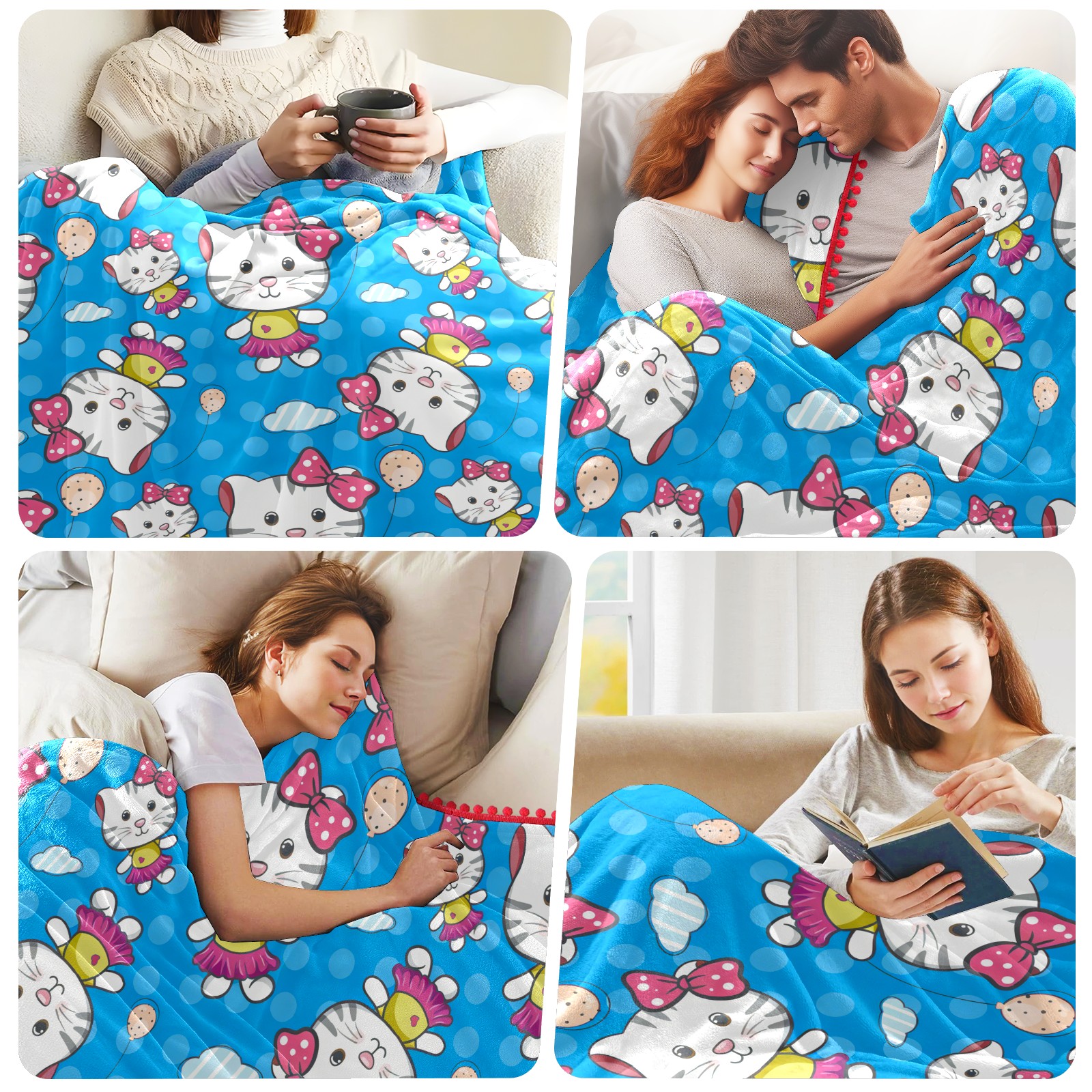 流苏毛毯 Hello Cat Blue