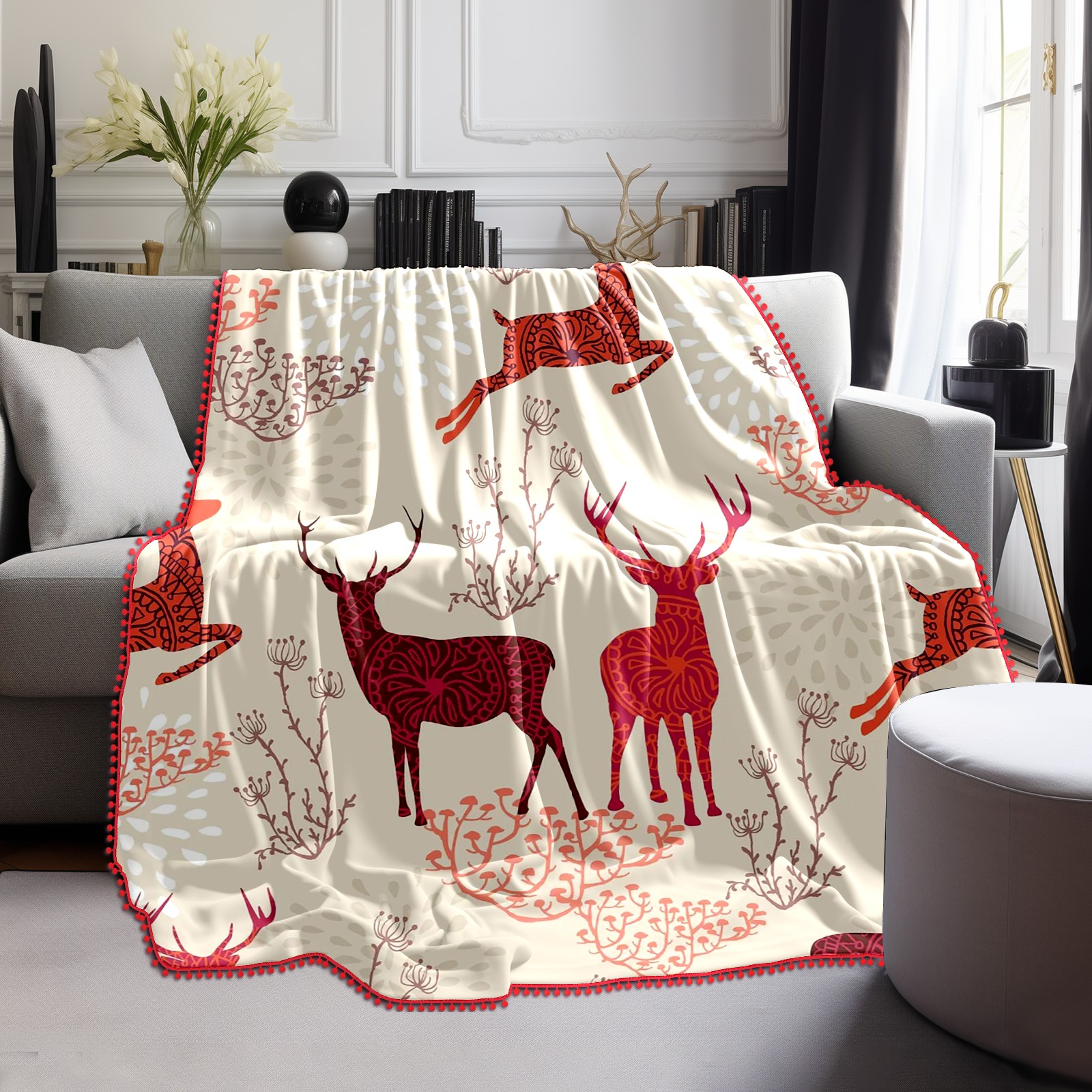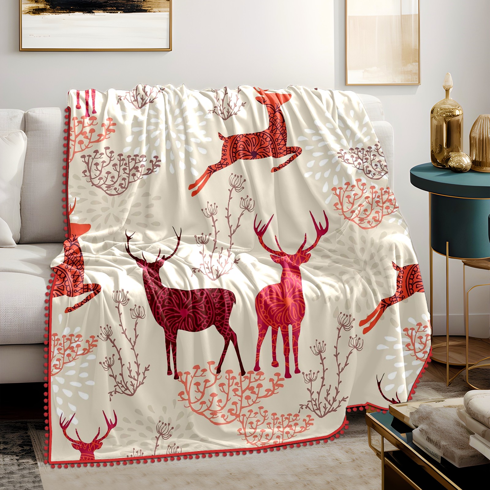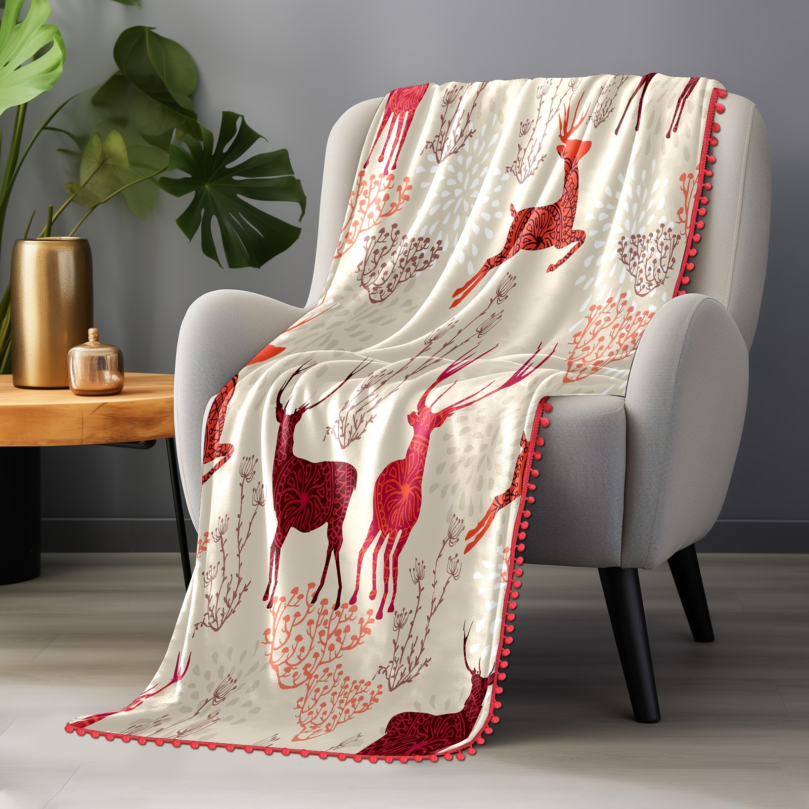 流苏毛毯 Beige Red Deers