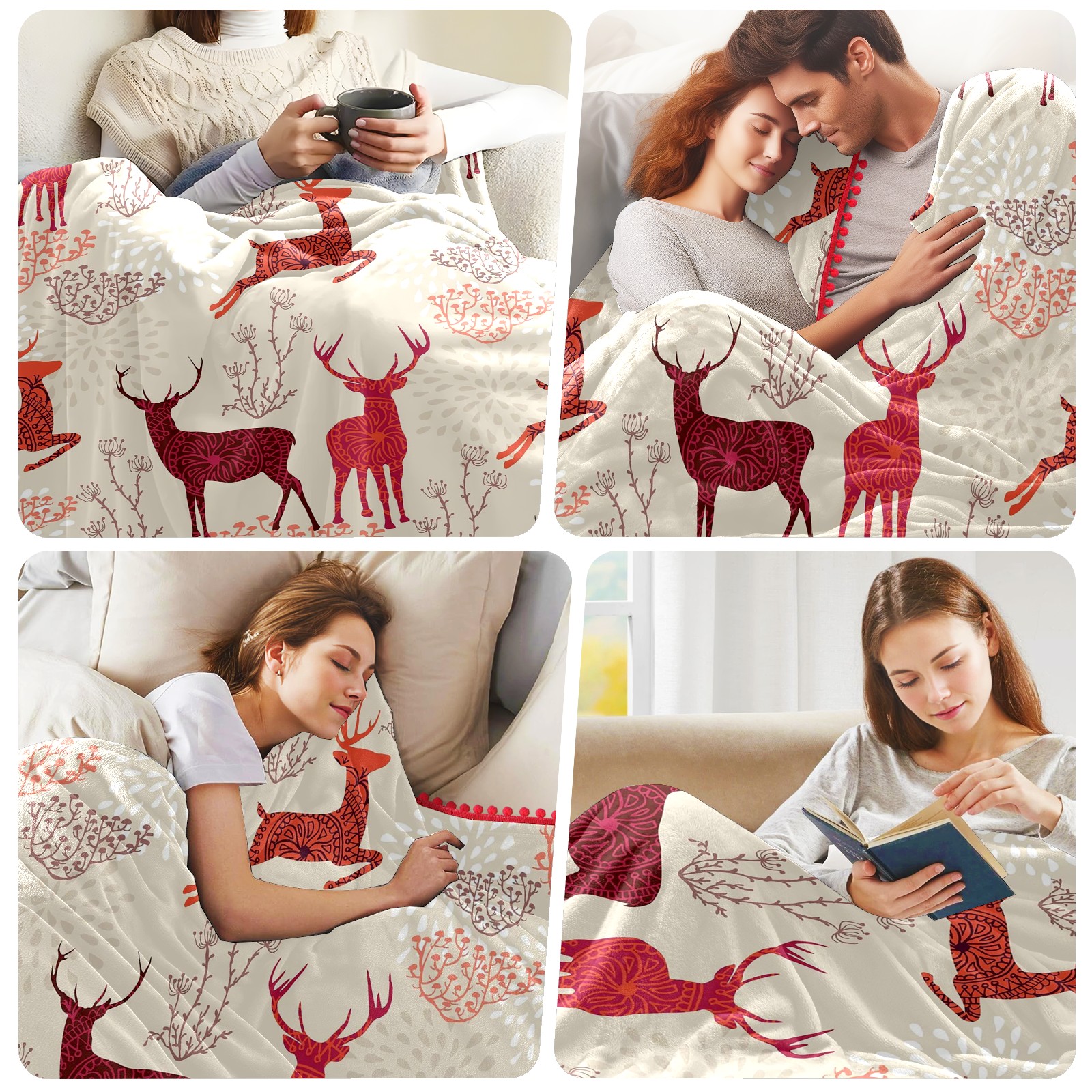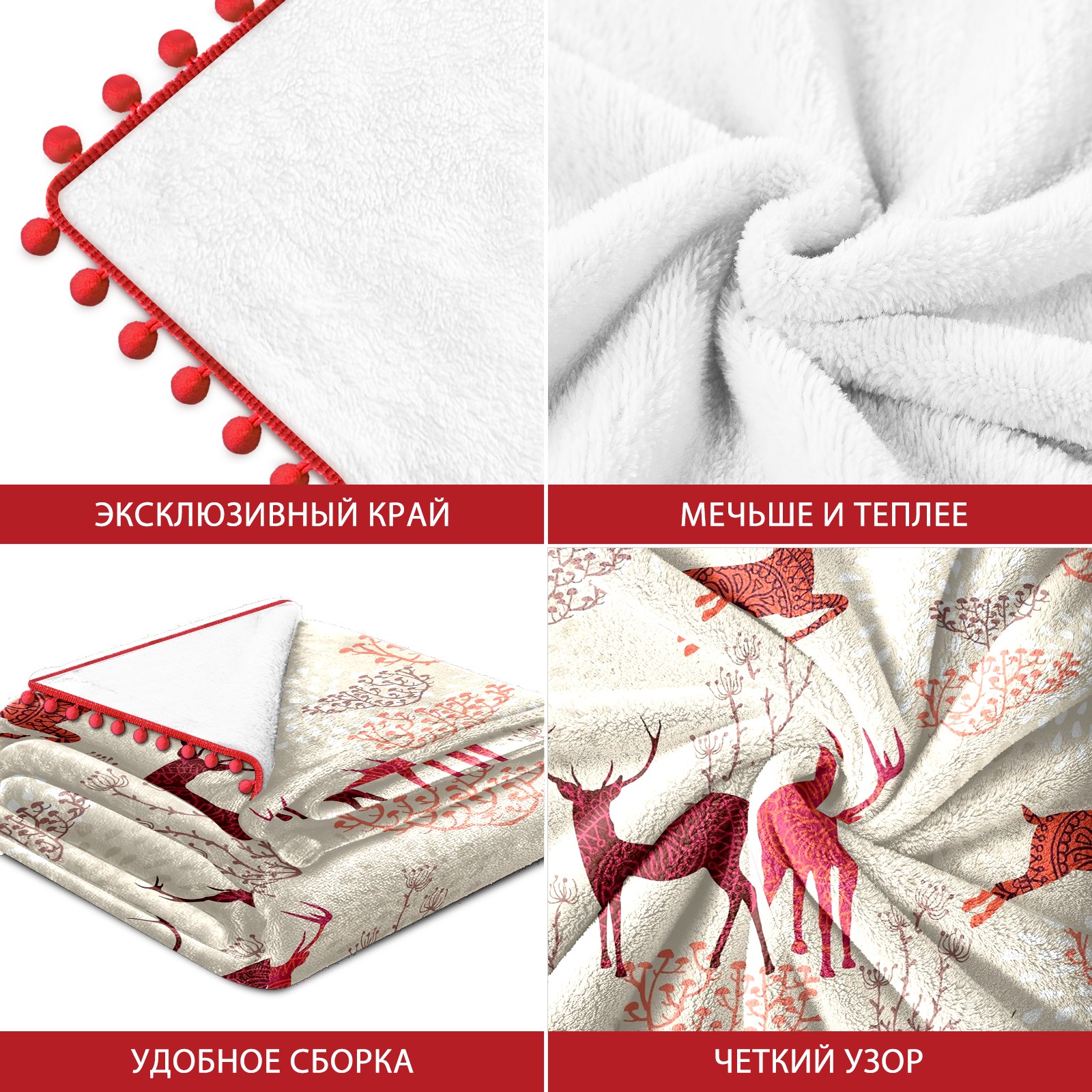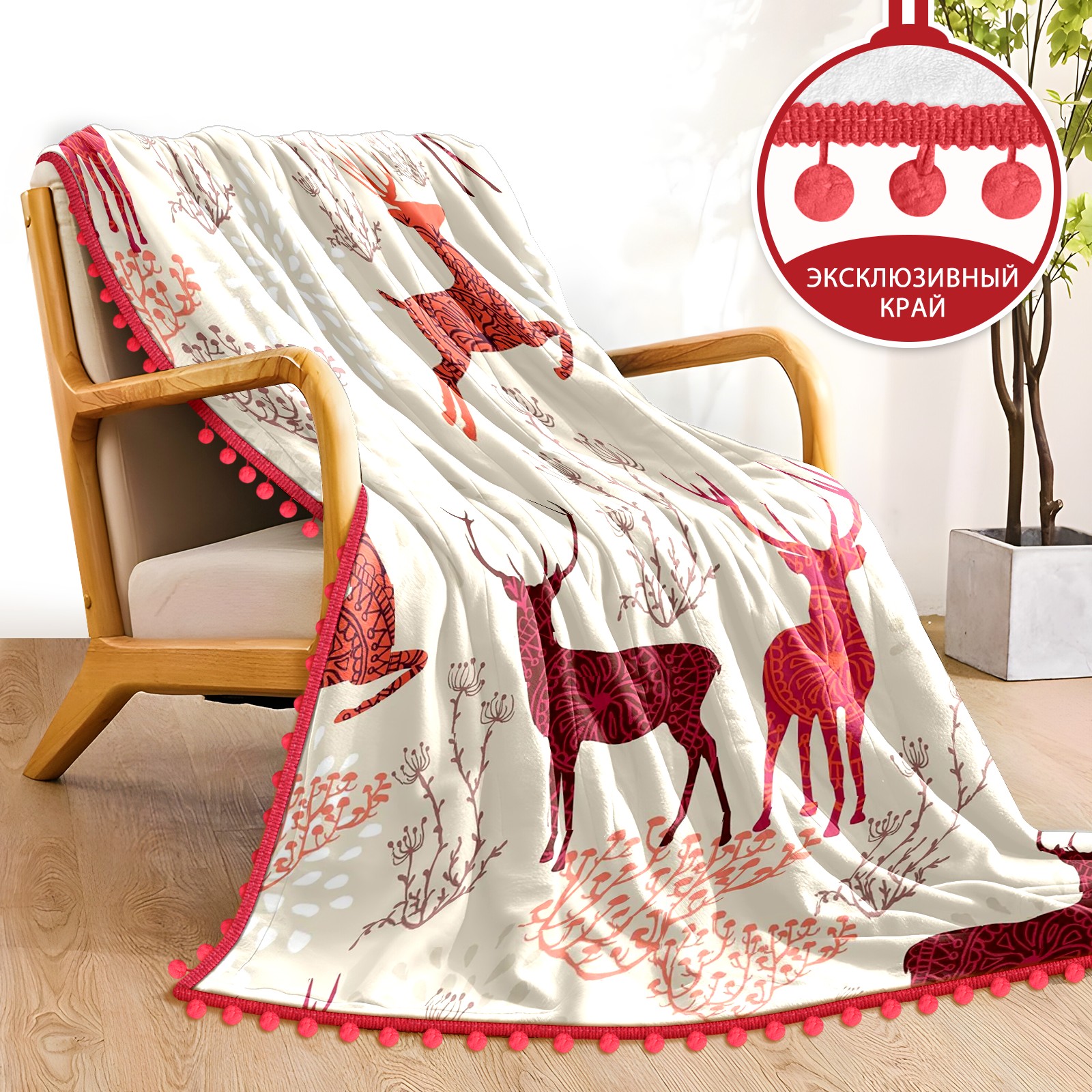 流苏毛毯 Beige Red Deers