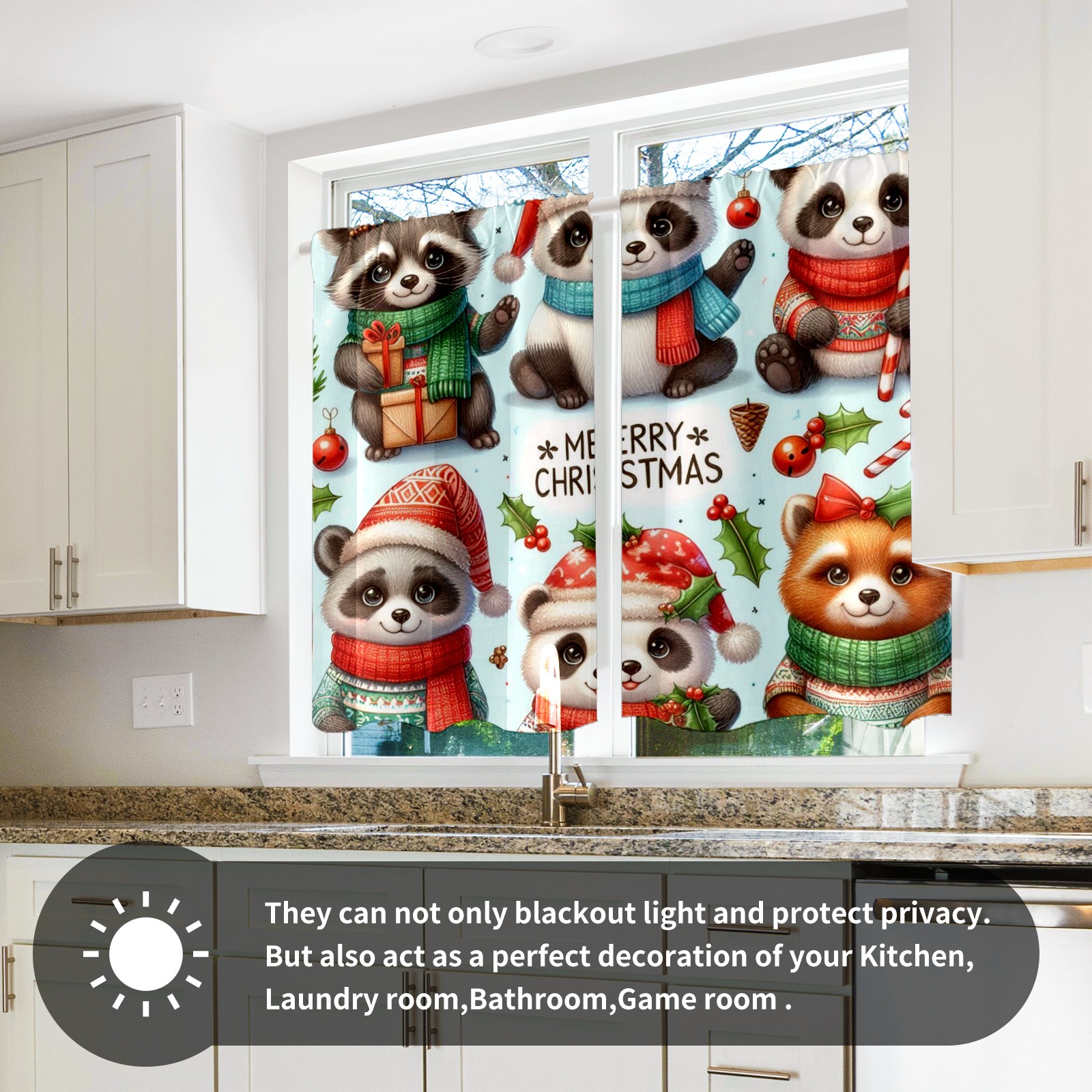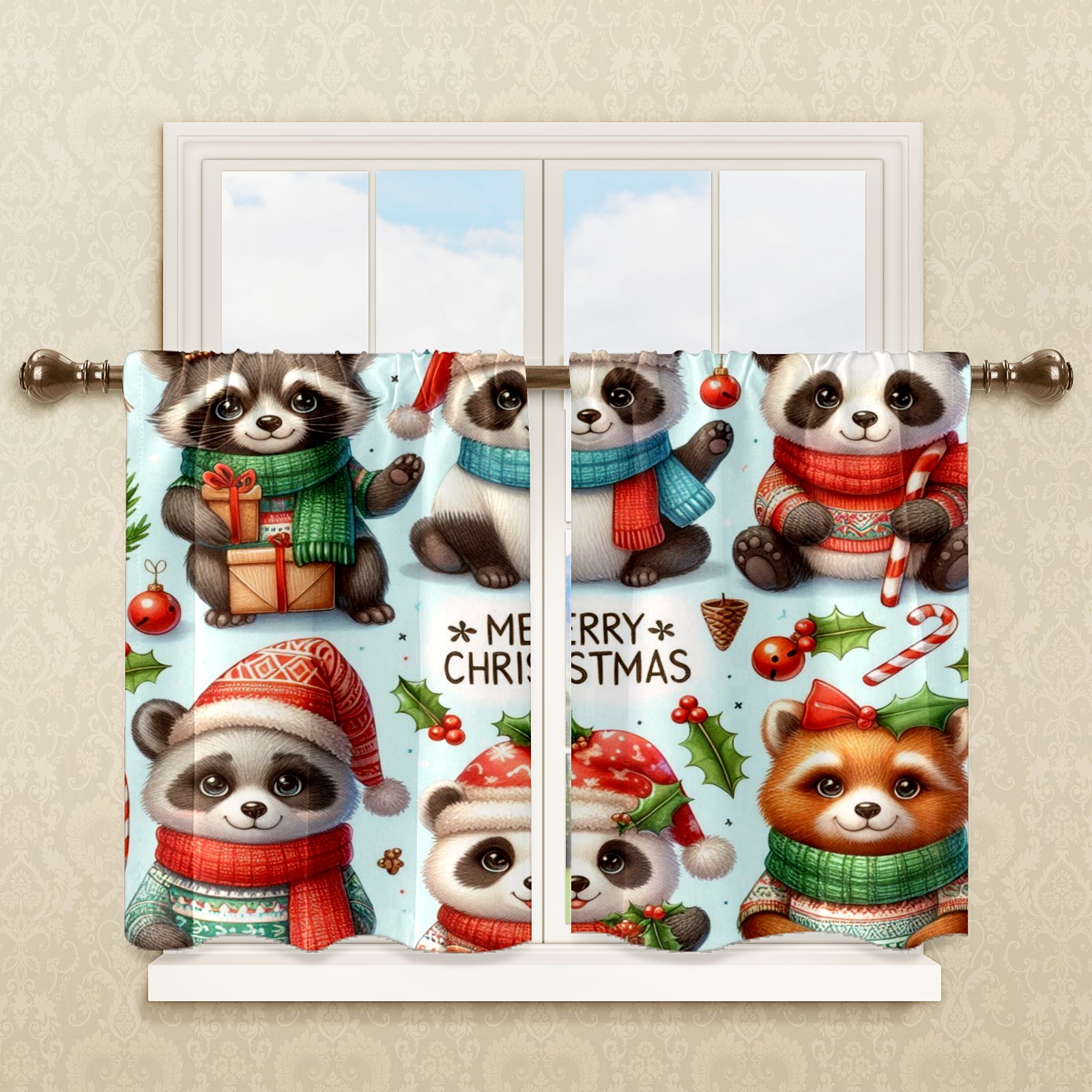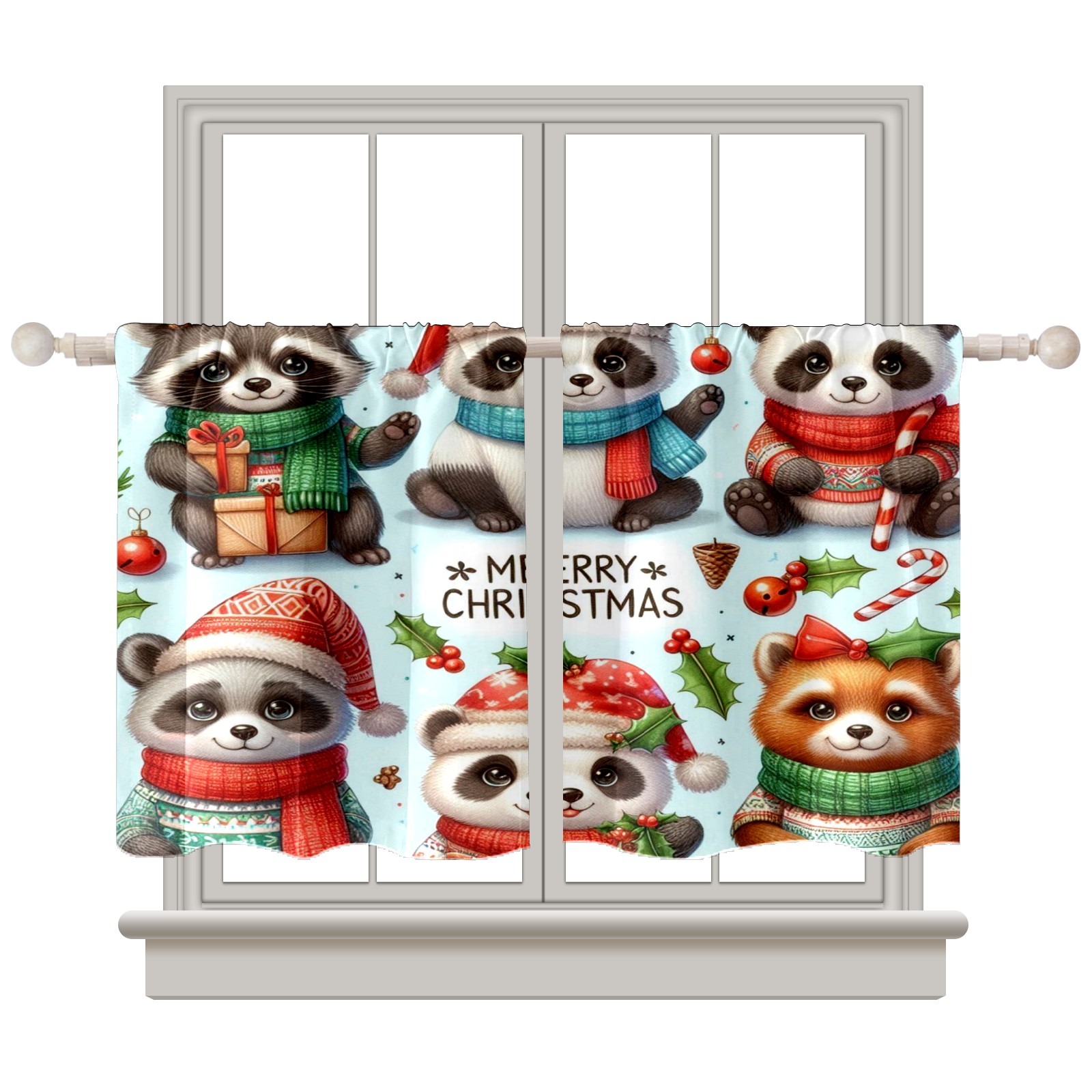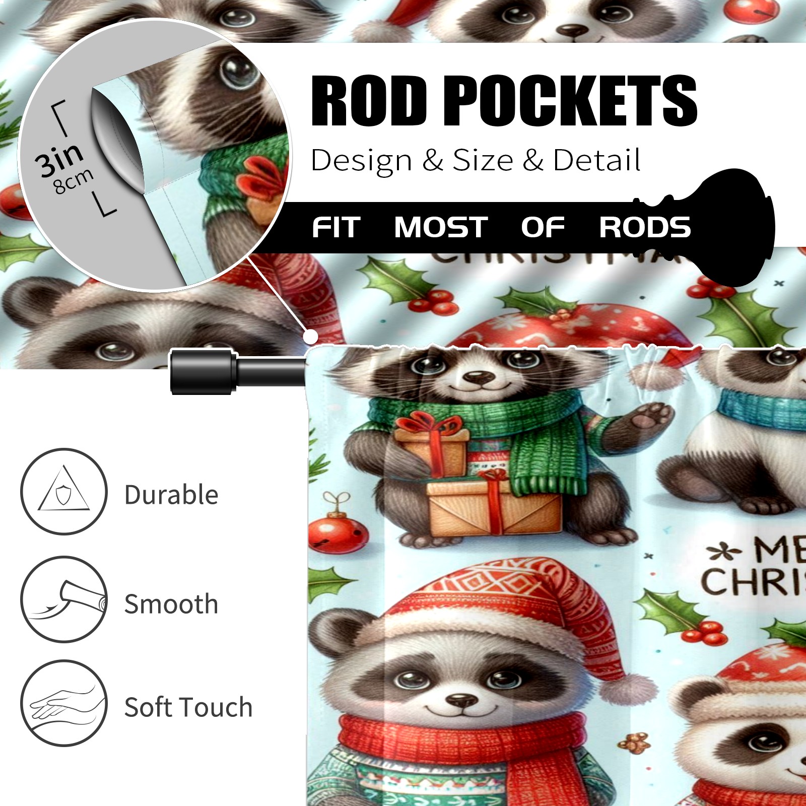 Шторы-панно для дома, декоративные драпировки для гостиной и спальни, легкие и прочные, Red Christmas Pandas Raccoons