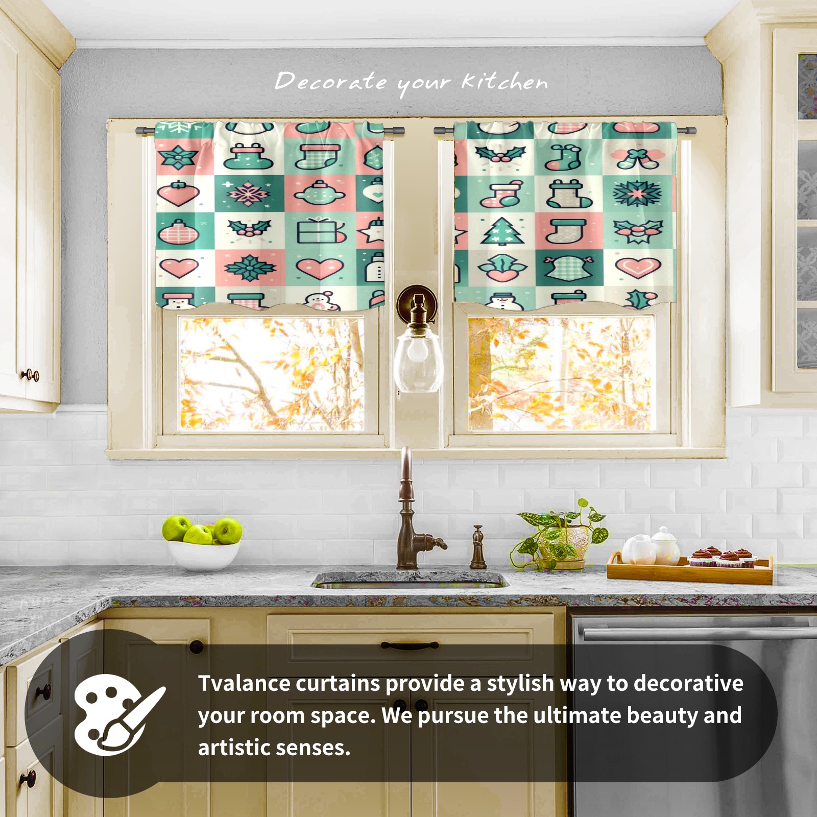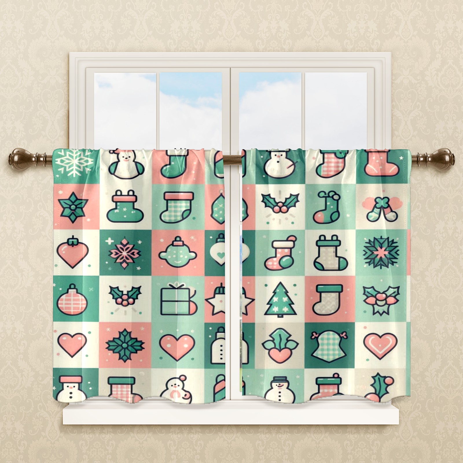 Шторы-панно для дома, декоративные драпировки для гостиной и спальни, легкие и прочные, Green Christmas Grid