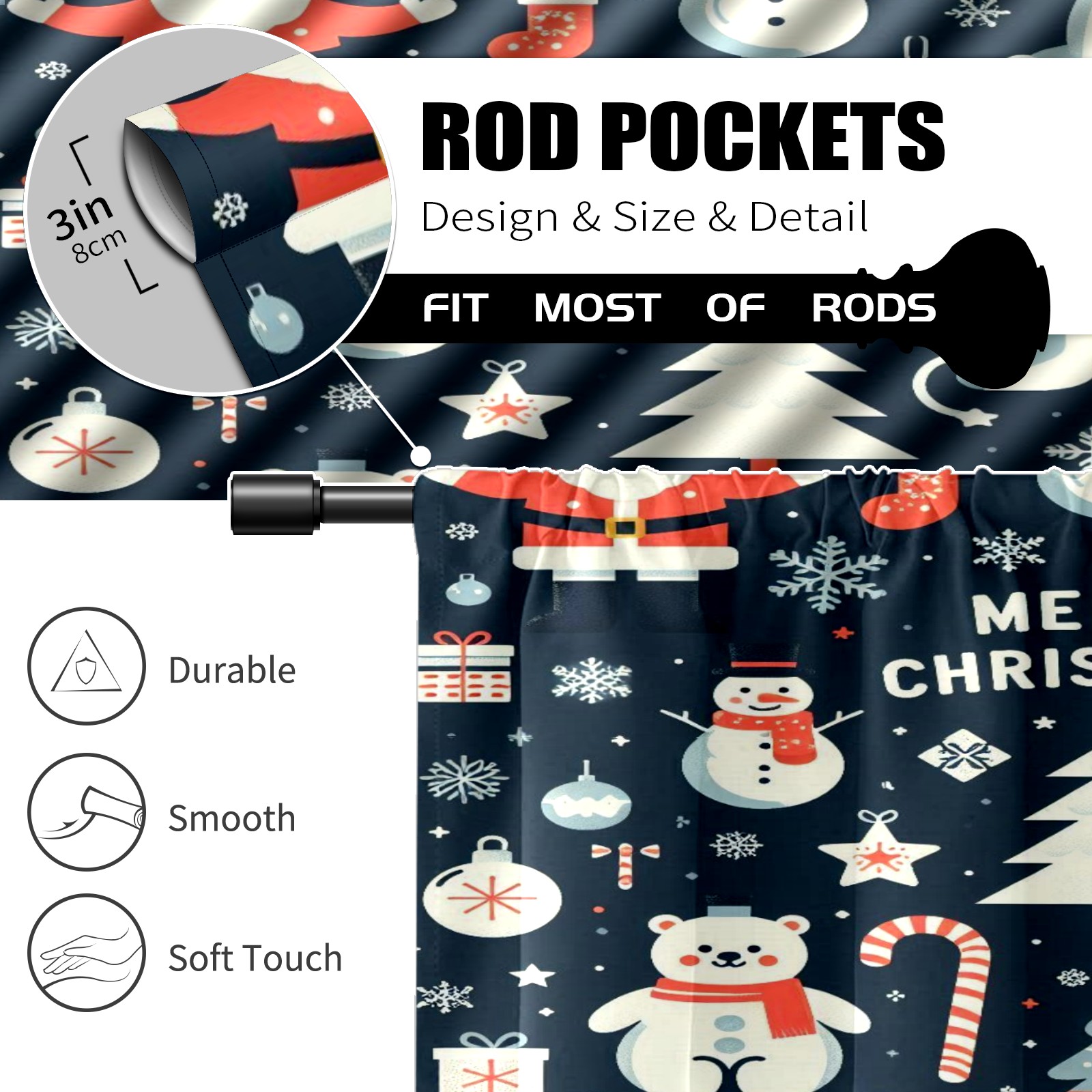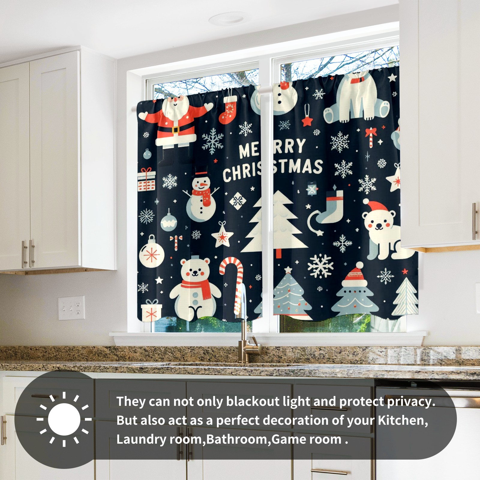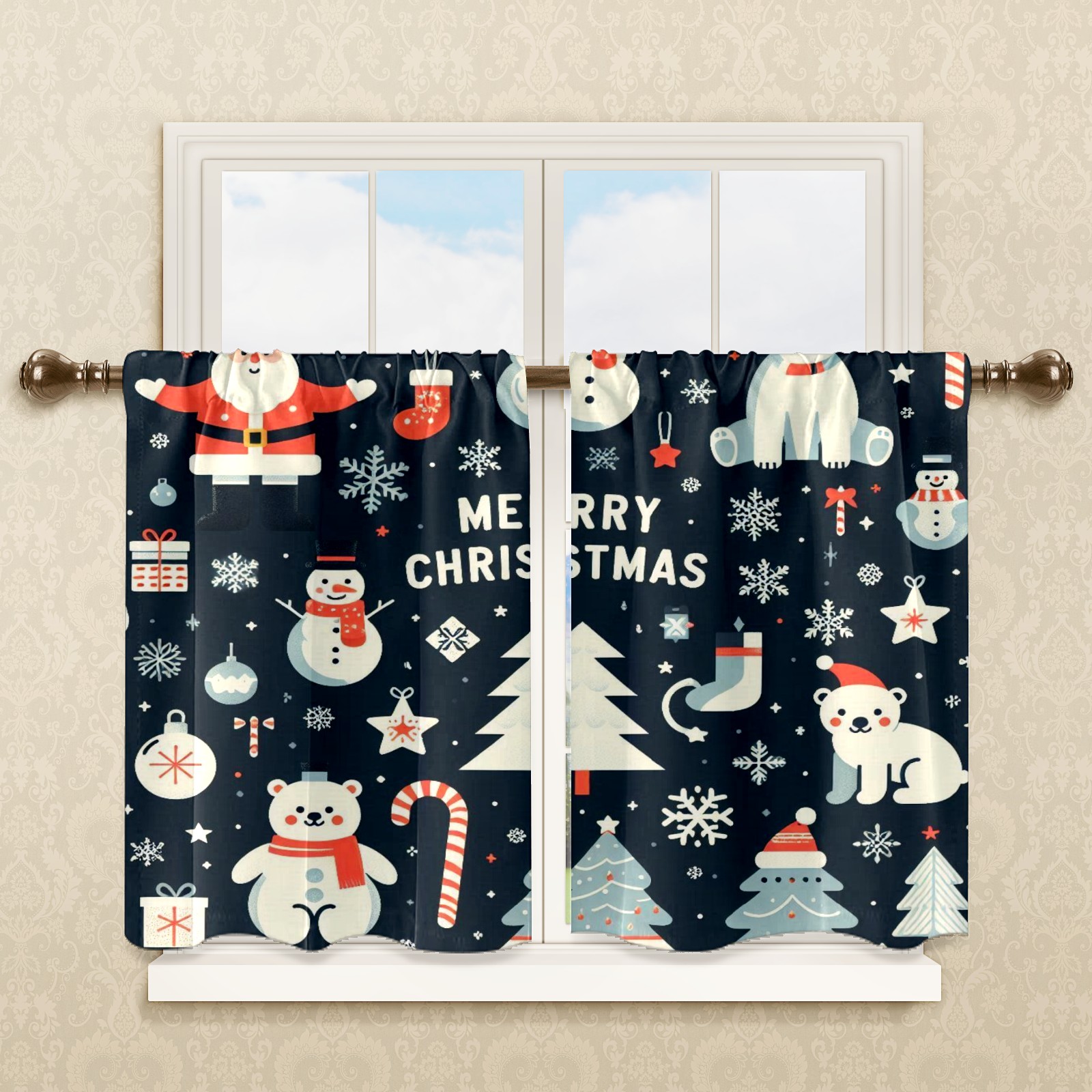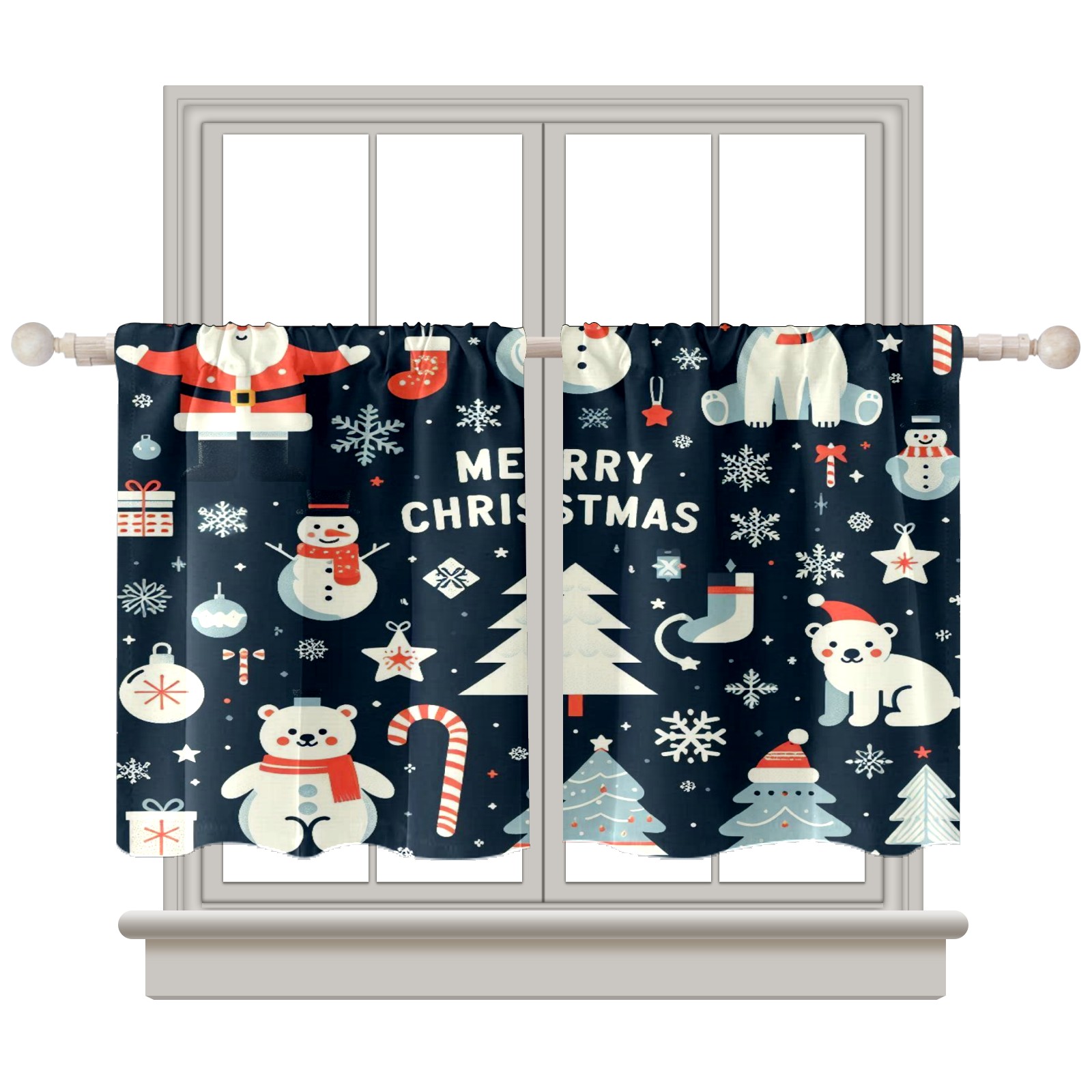 Шторы-панно для дома, декоративные драпировки для гостиной и спальни, легкие и прочные, Blue Christmas Polar Bears Snowmen