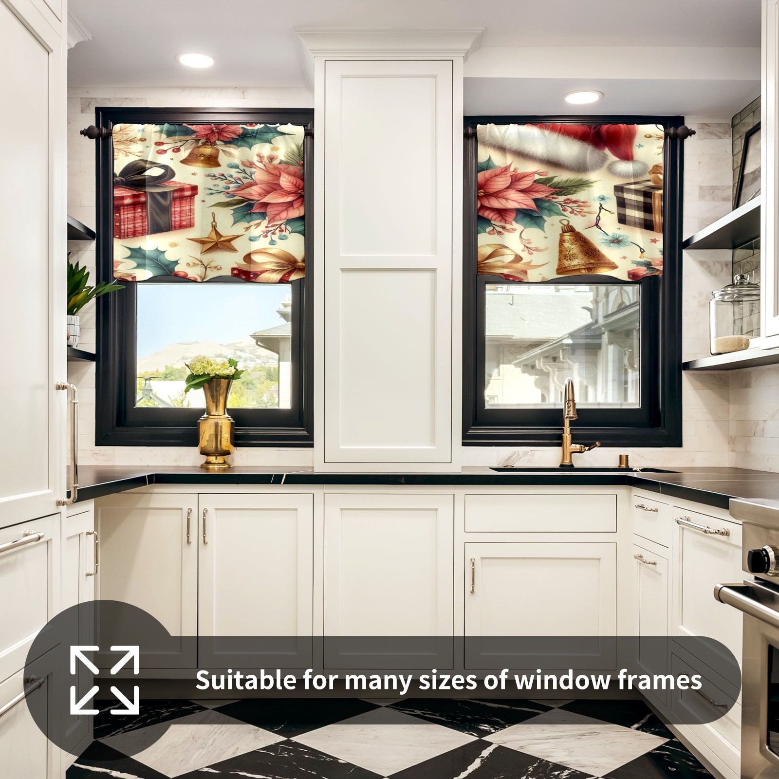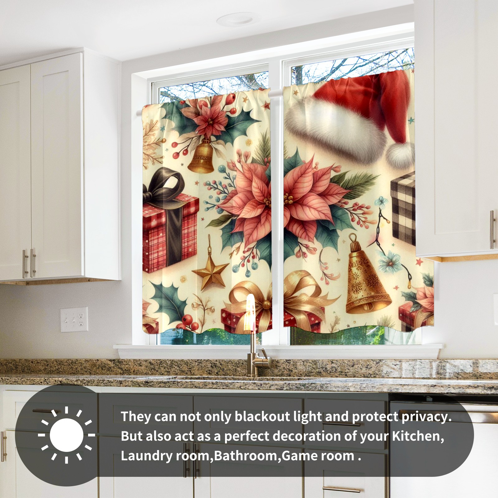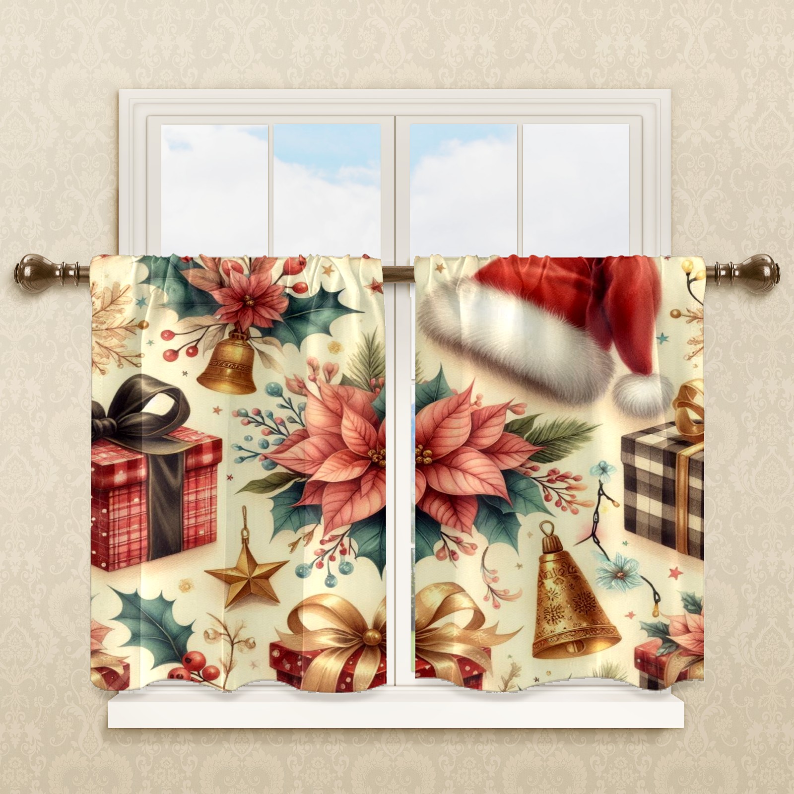 Шторы-панно для дома, декоративные драпировки для гостиной и спальни, легкие и прочные, Pink Christmas Poinsettia Hat