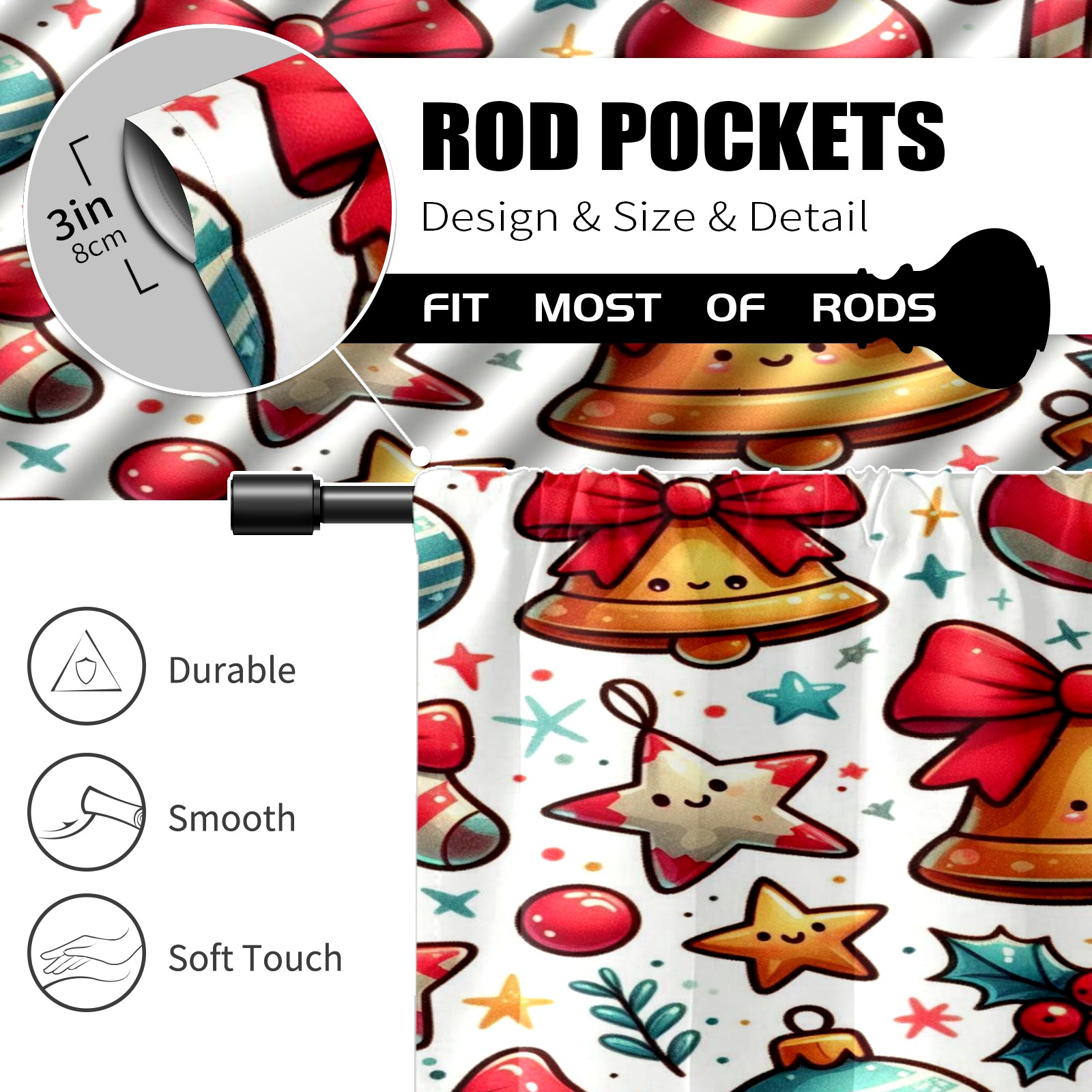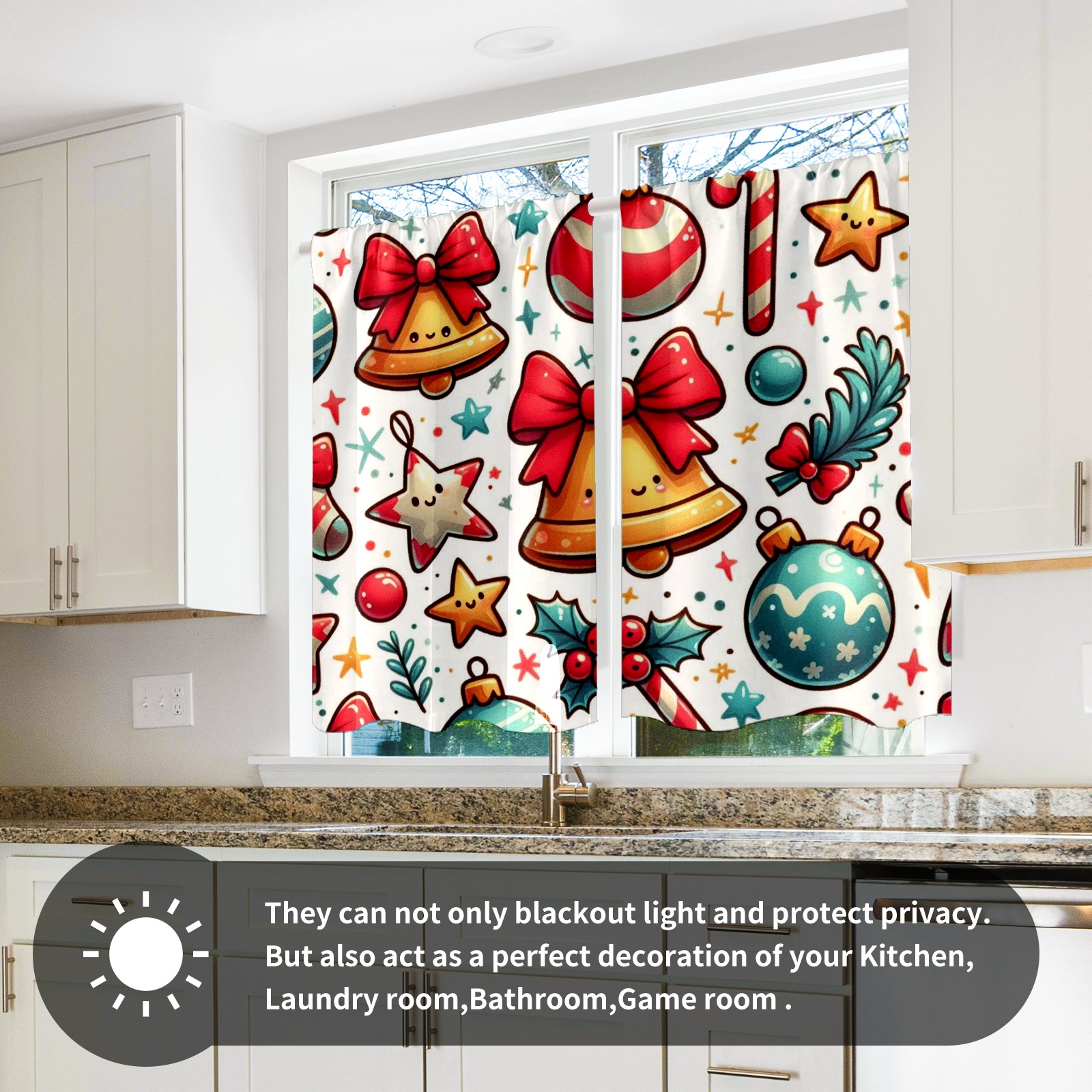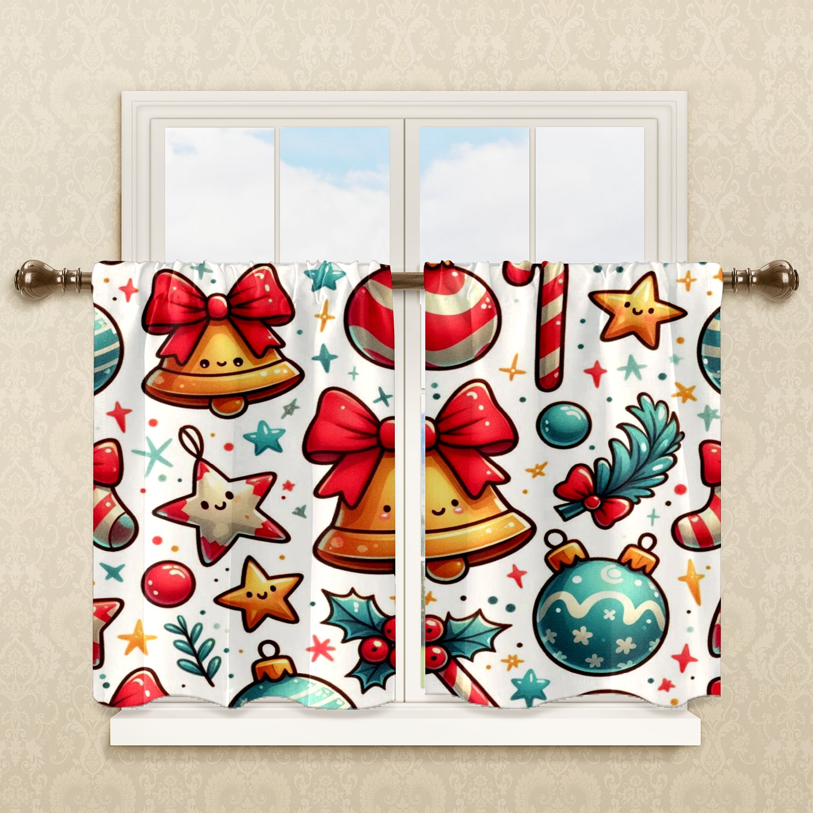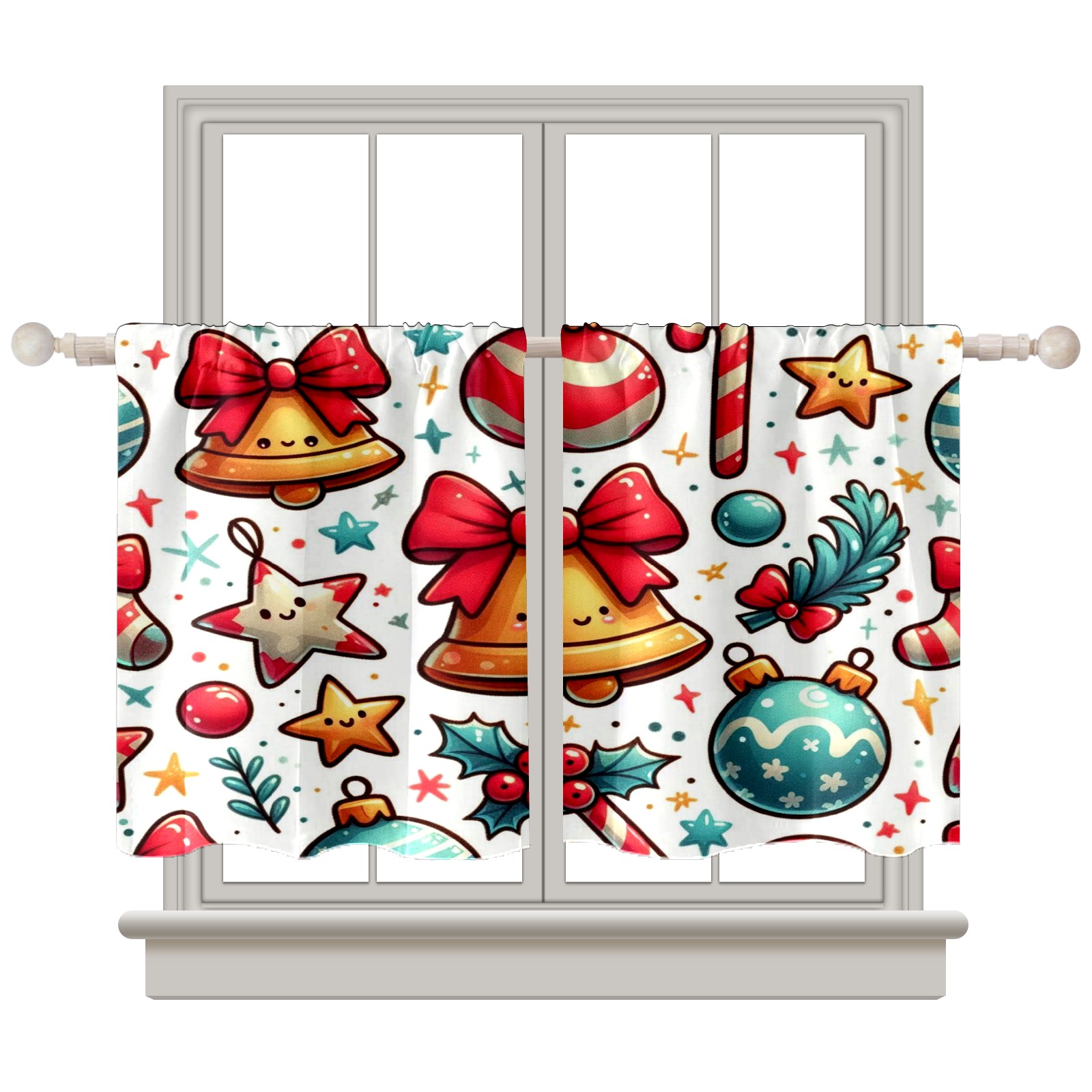 Шторы-панно для дома, декоративные драпировки для гостиной и спальни, легкие и прочные, Red Christmas Bells Ornaments