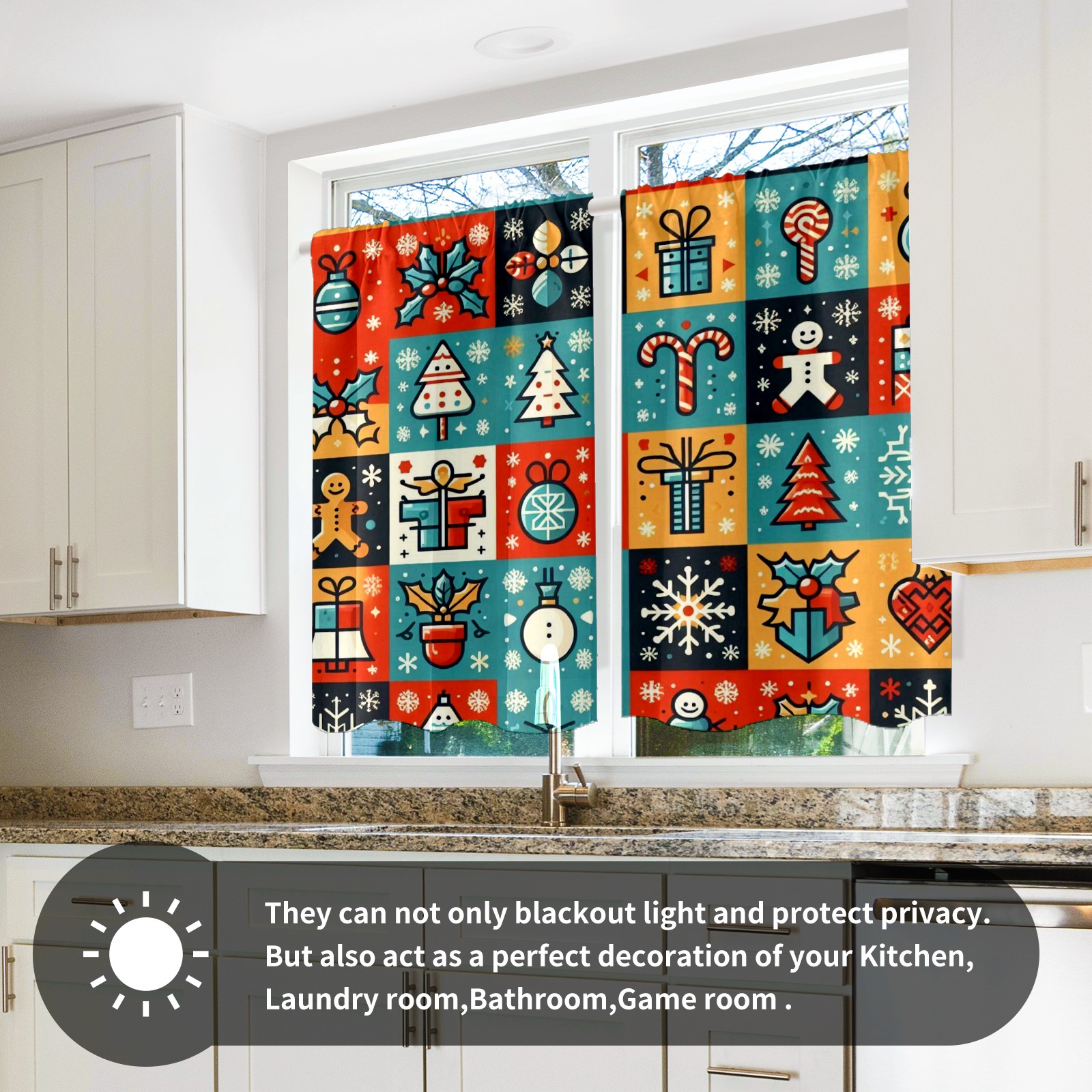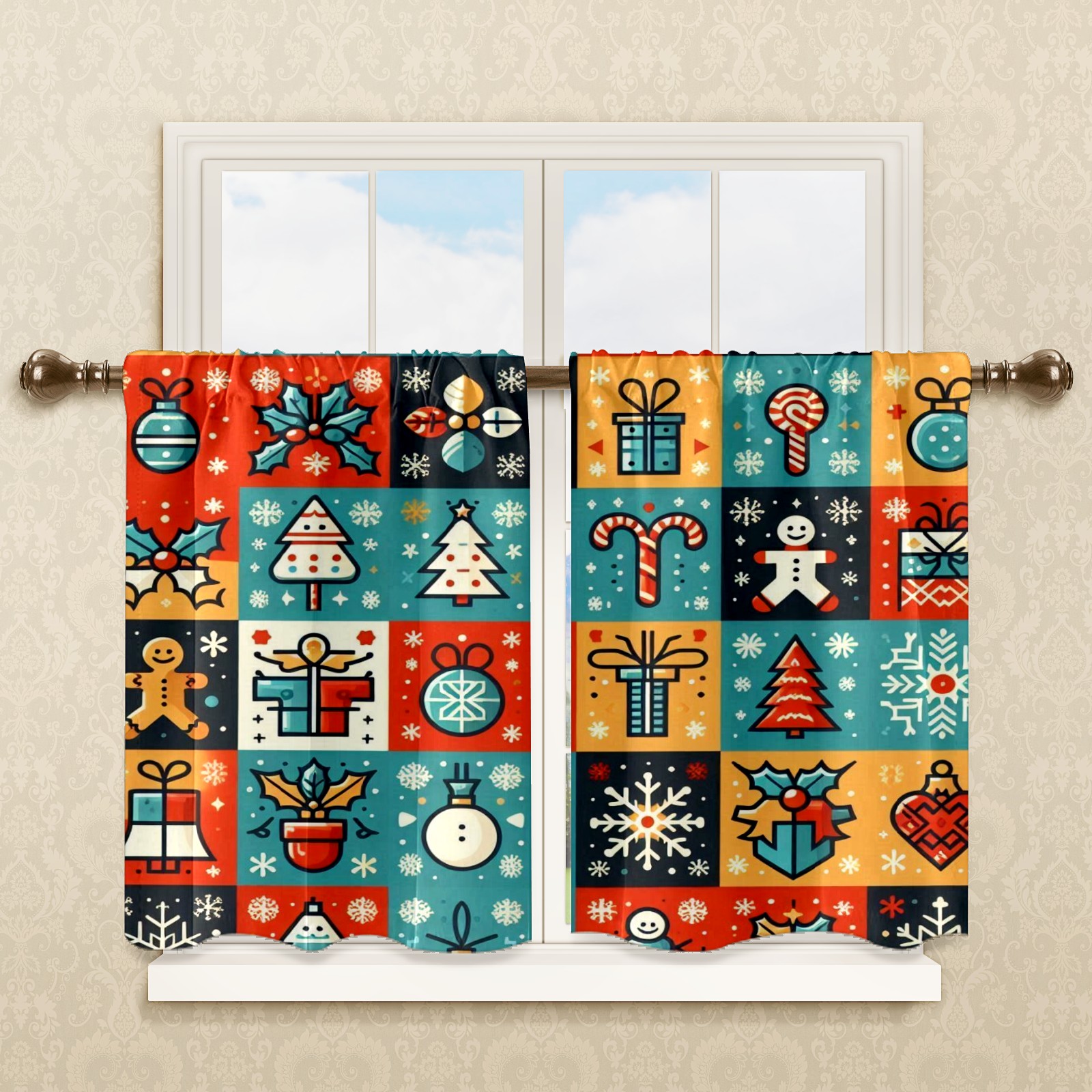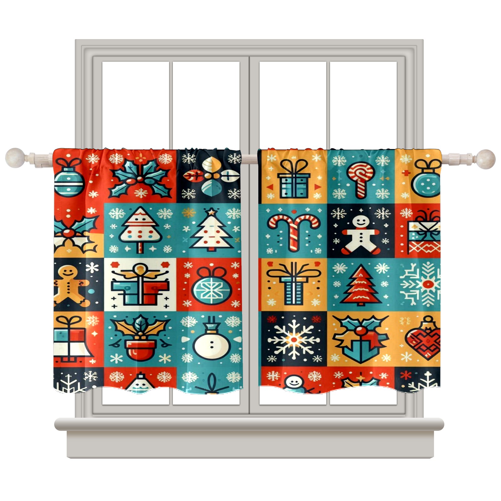 Шторы-панно для дома, декоративные драпировки для гостиной и спальни, легкие и прочные, Blue Red Christmas Icons