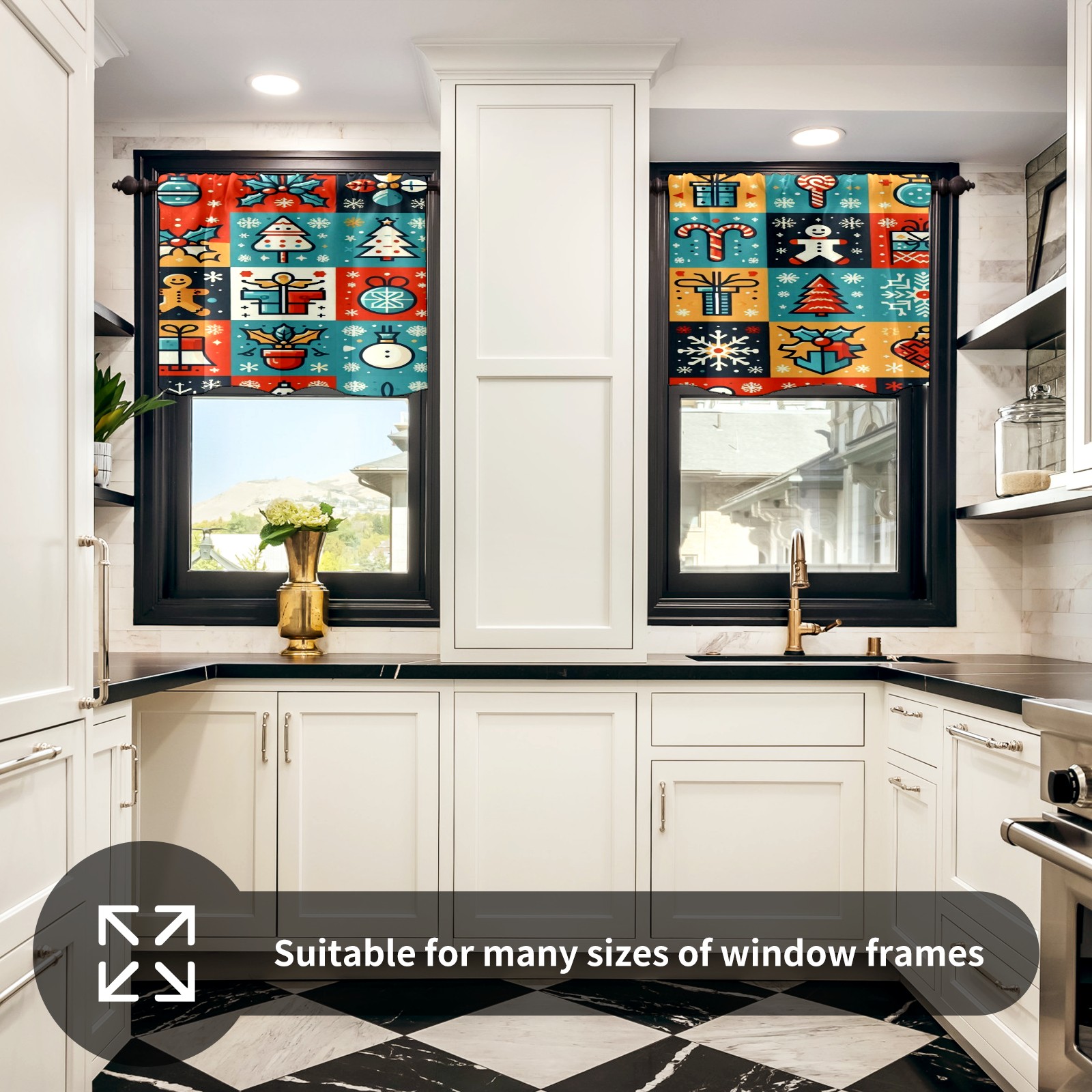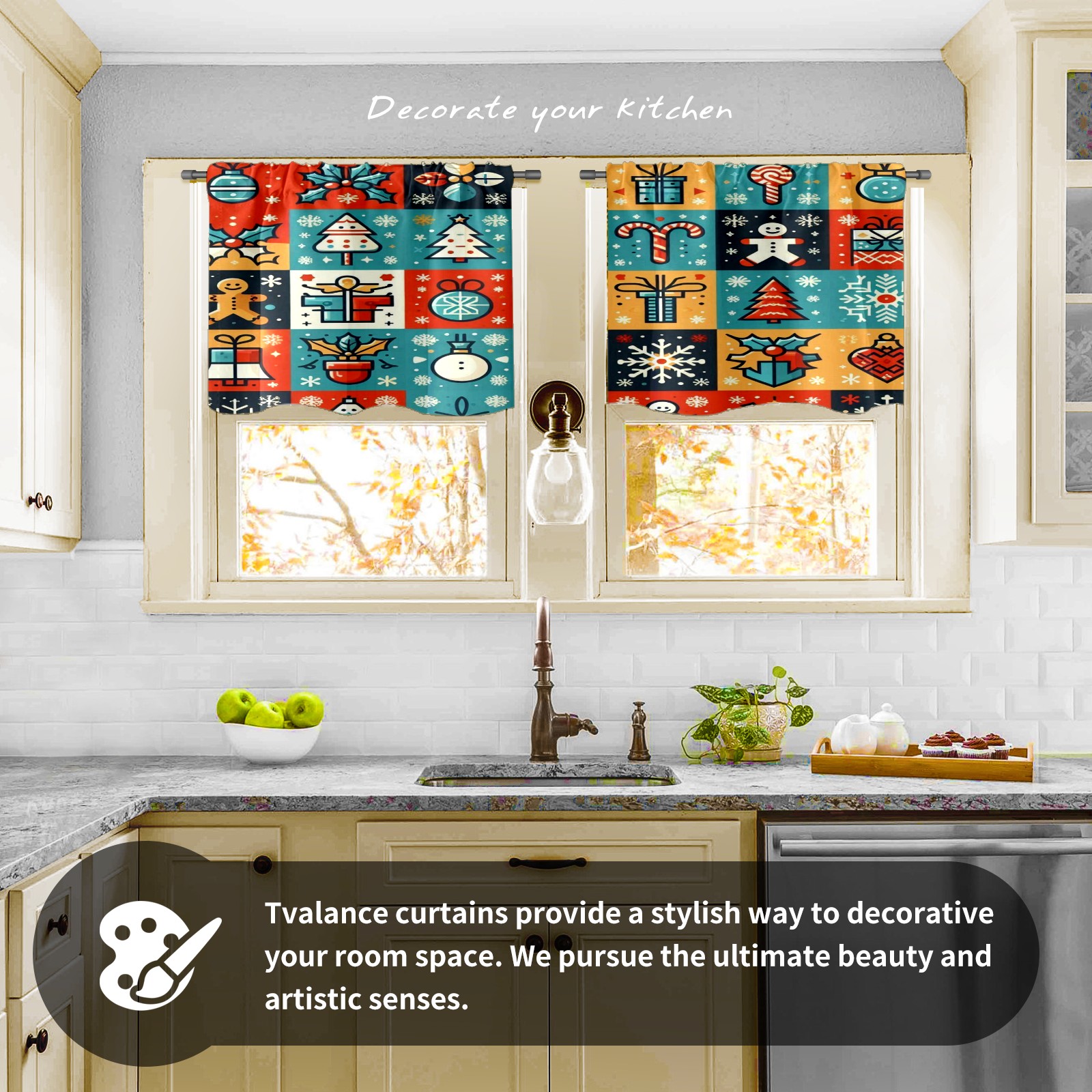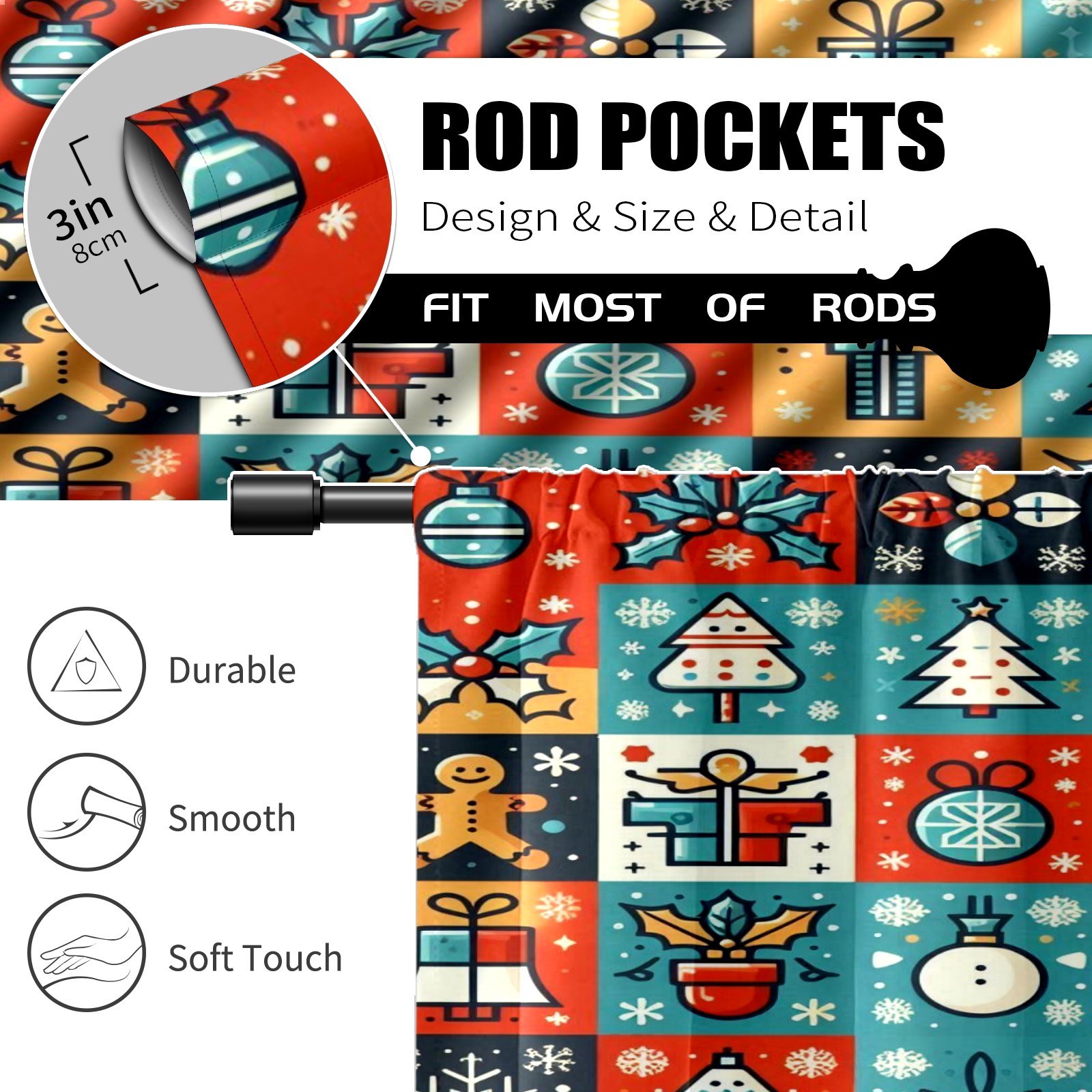 Шторы-панно для дома, декоративные драпировки для гостиной и спальни, легкие и прочные, Blue Red Christmas Icons