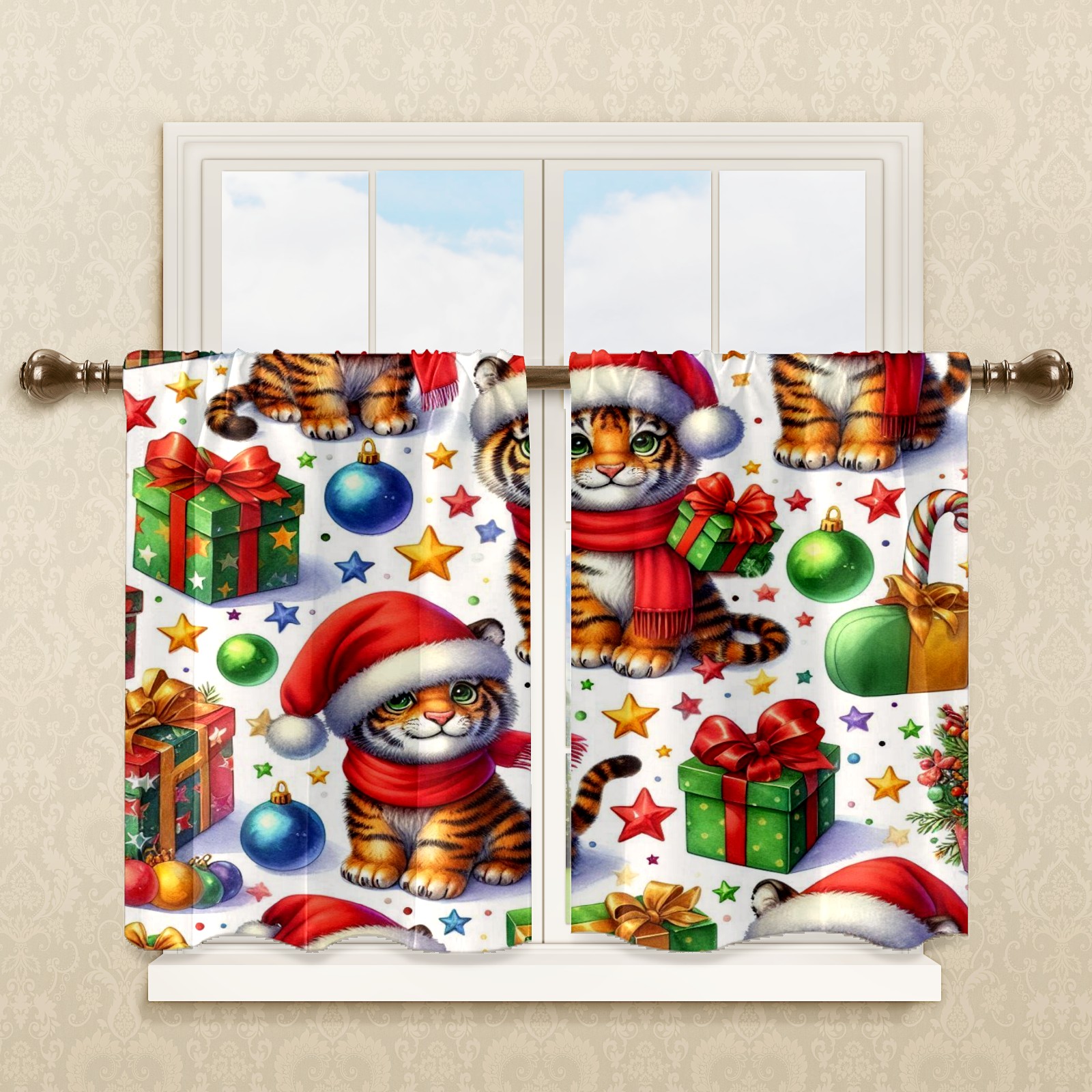 Шторы-панно для дома, декоративные драпировки для гостиной и спальни, легкие и прочные, Red Christmas Tigers Gifts