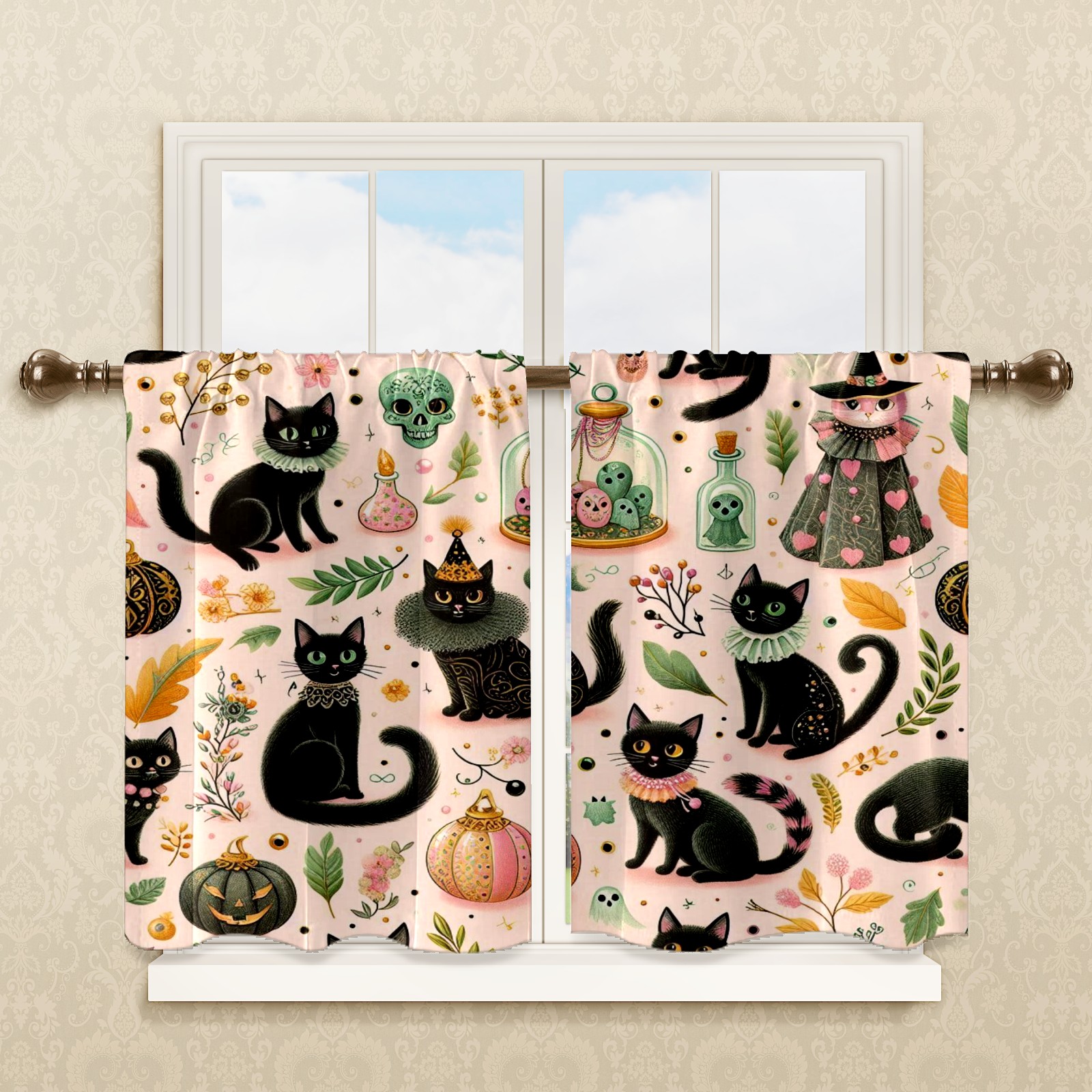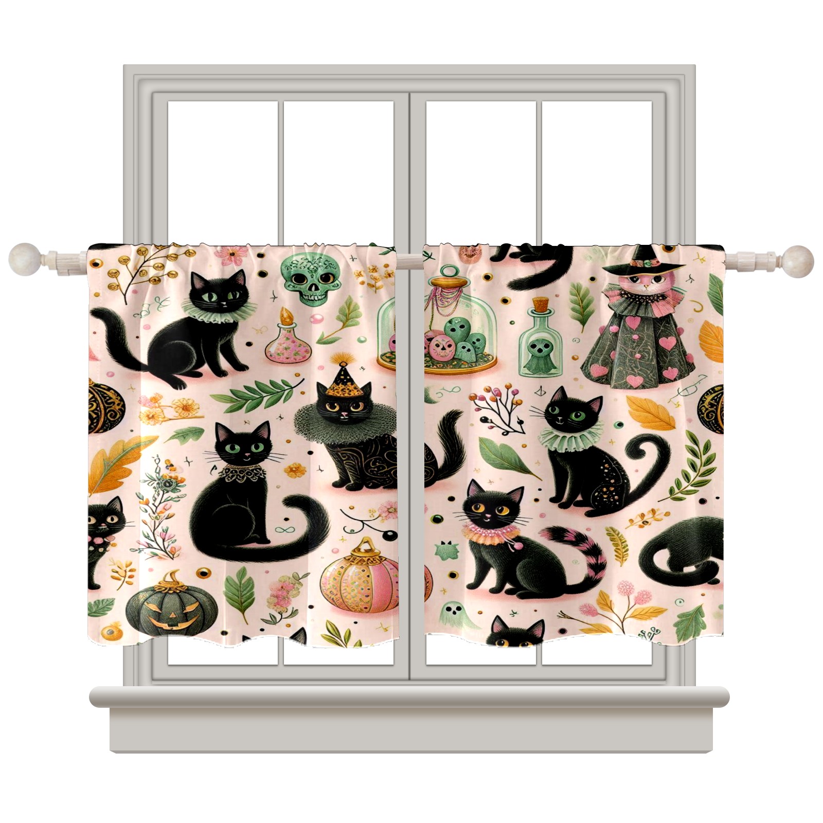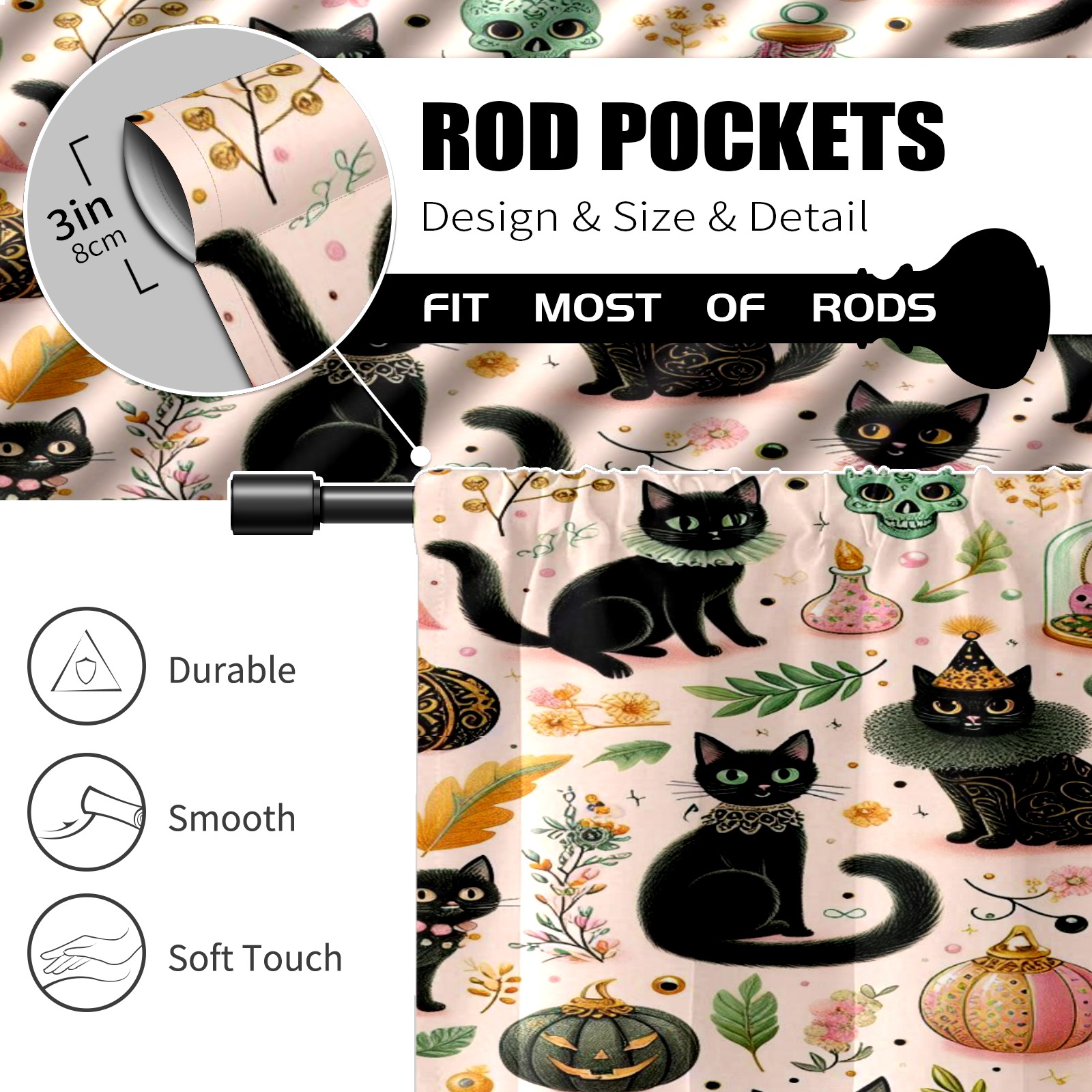 Шторы-панно для дома, декоративные драпировки для гостиной и спальни, легкие и прочные, Black Halloween Cats
