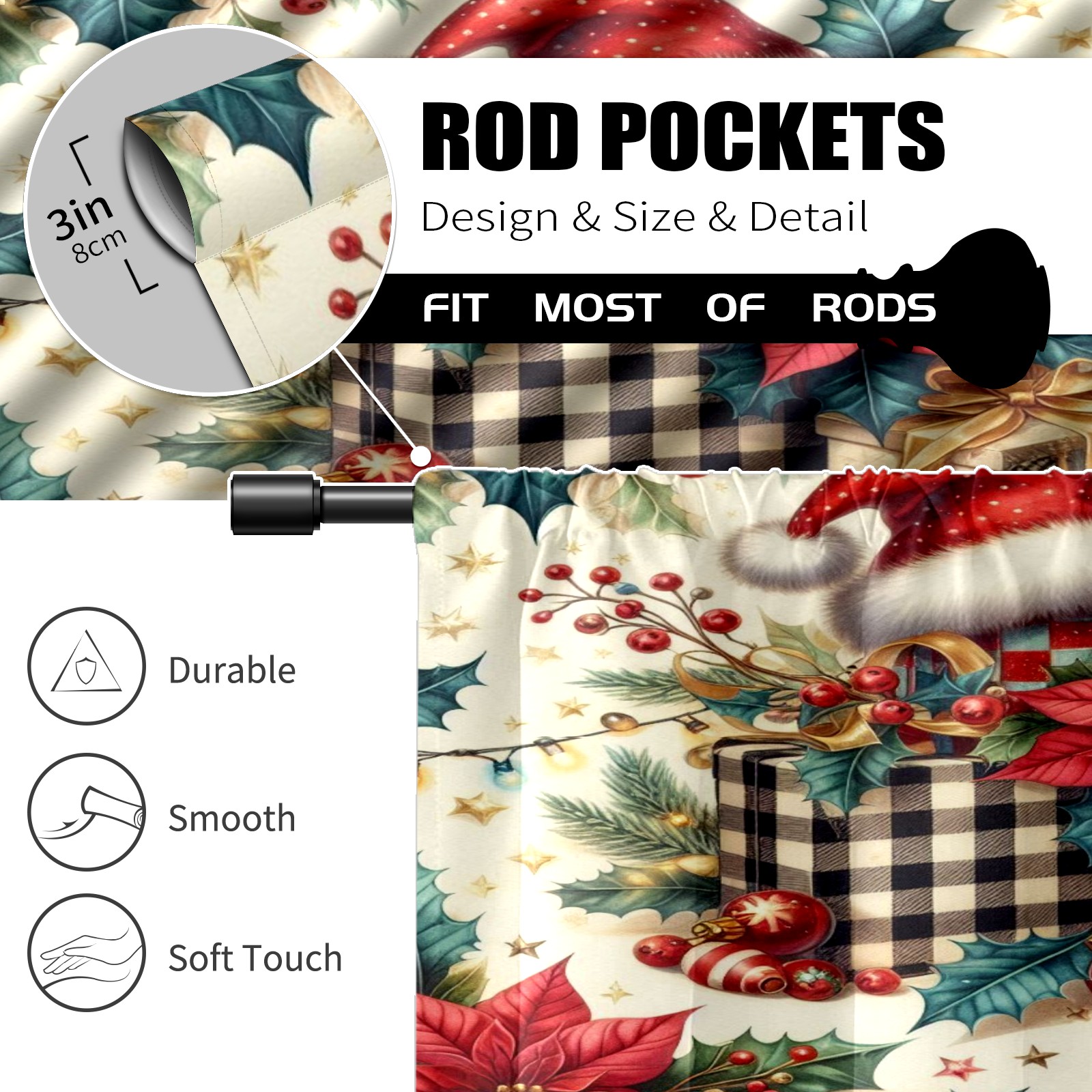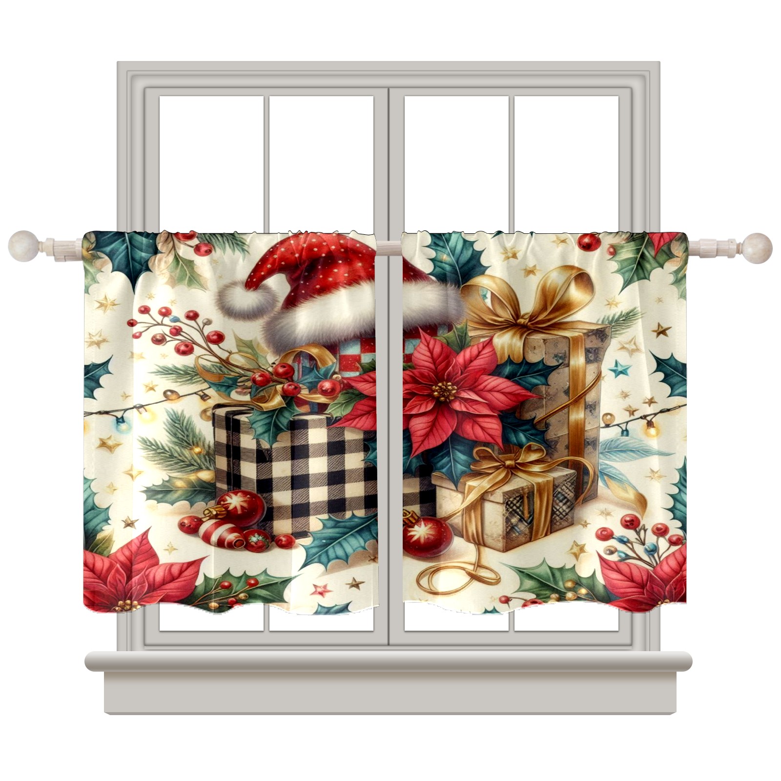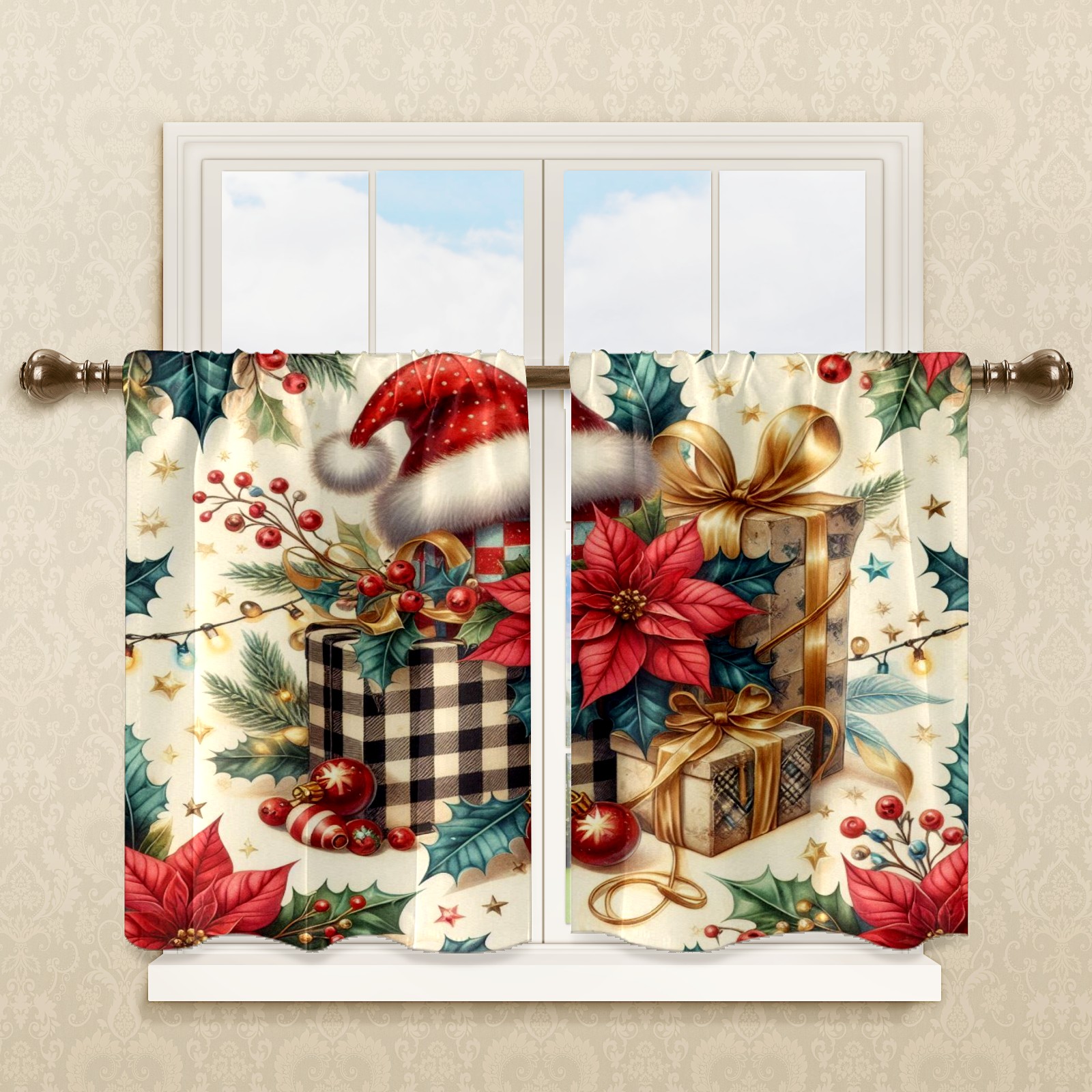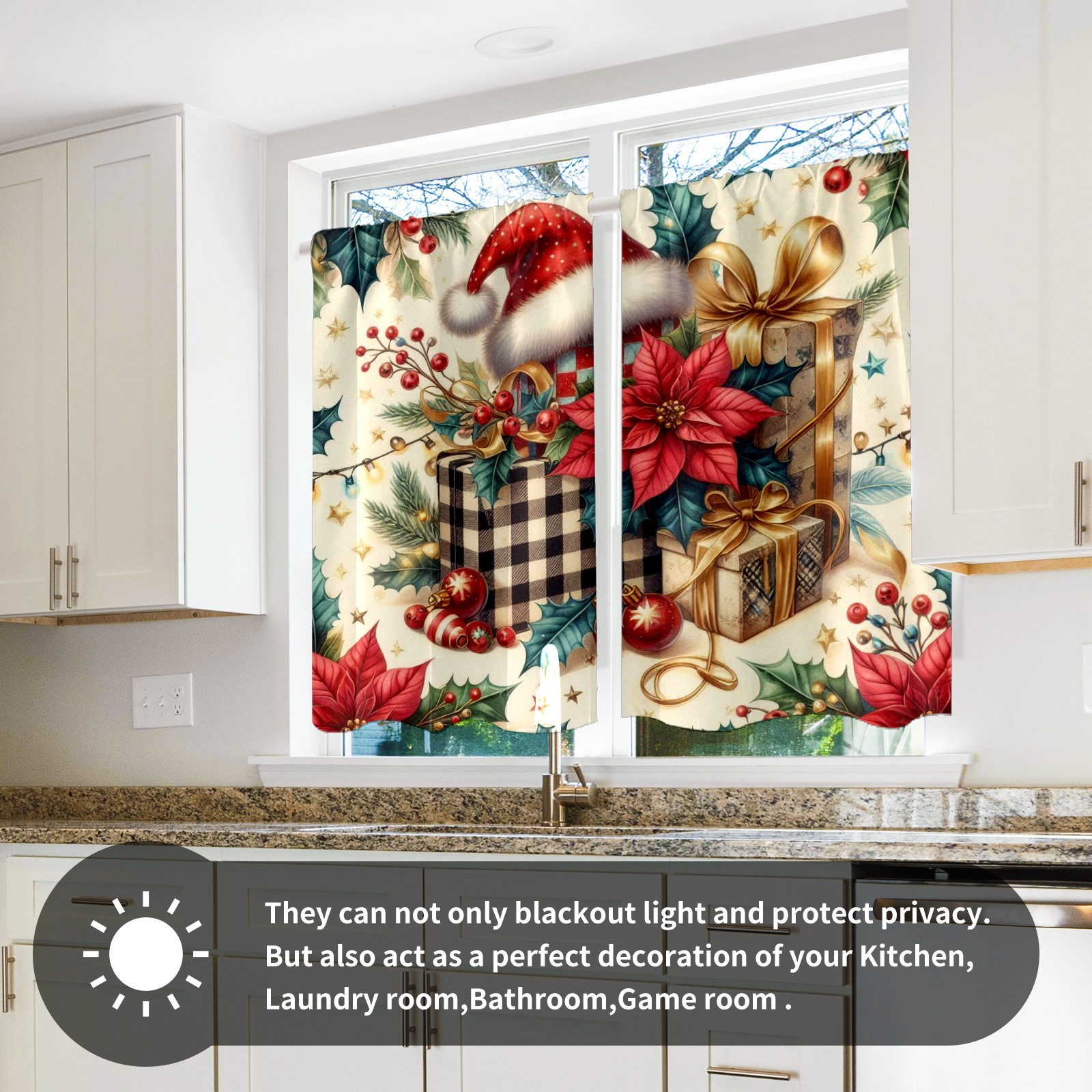 Шторы-панно для дома, декоративные драпировки для гостиной и спальни, легкие и прочные, Red Christmas Santa Poinsettia