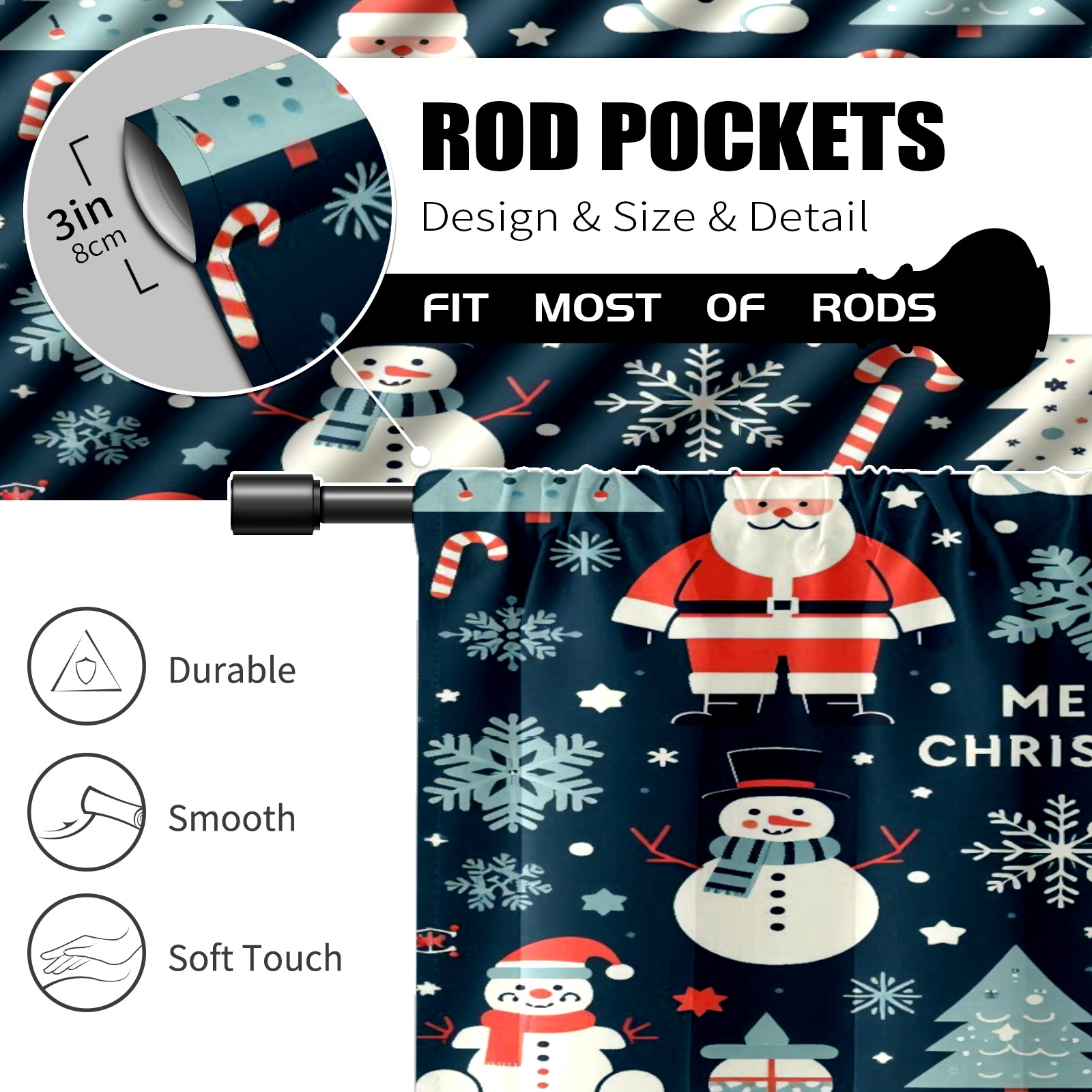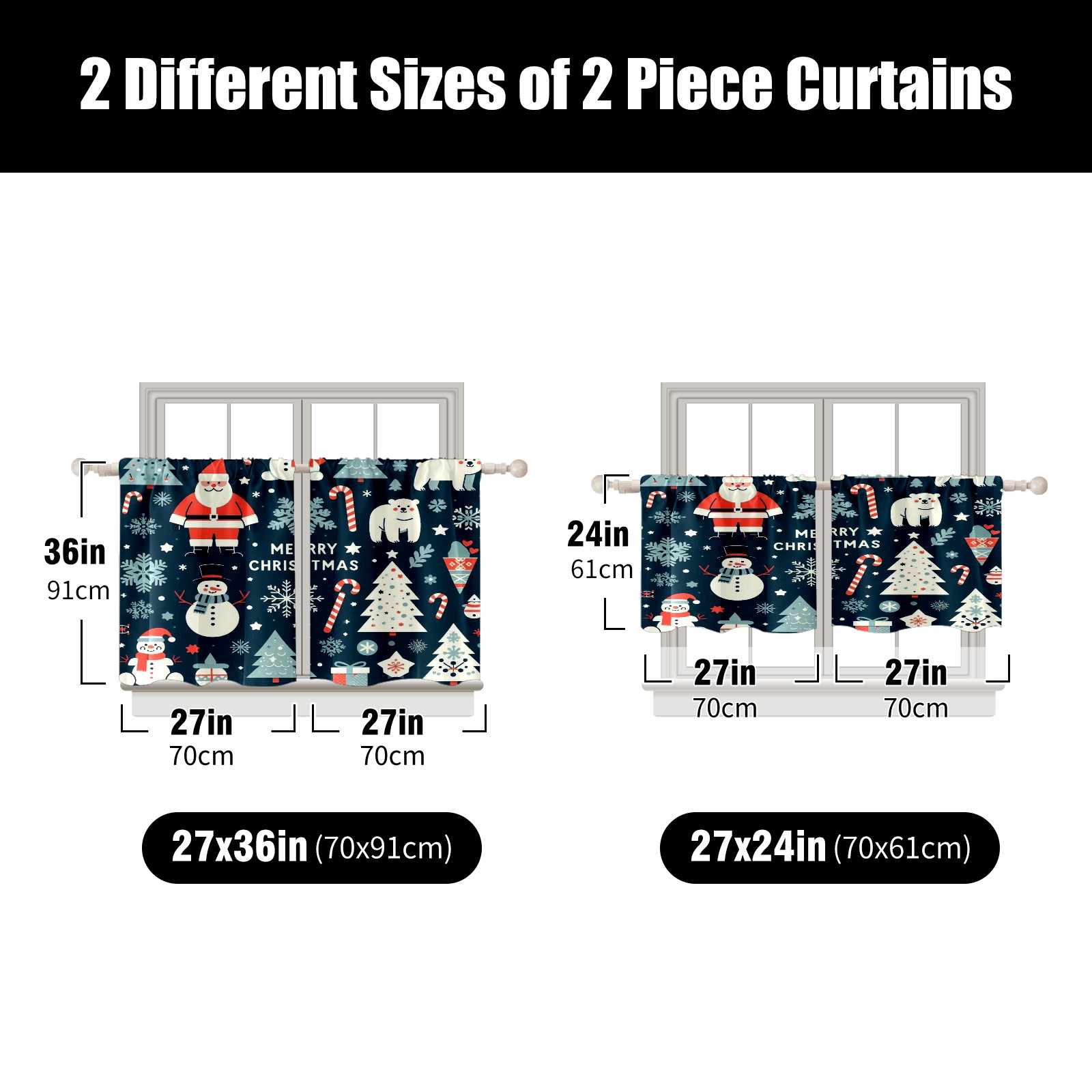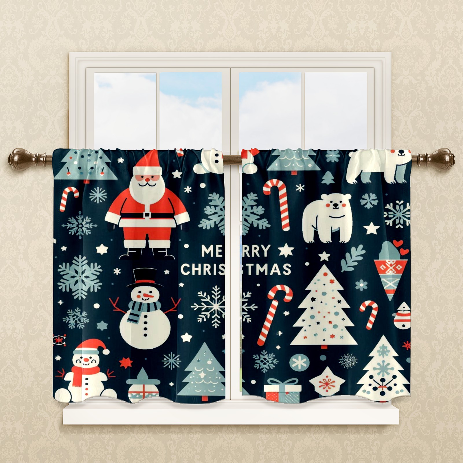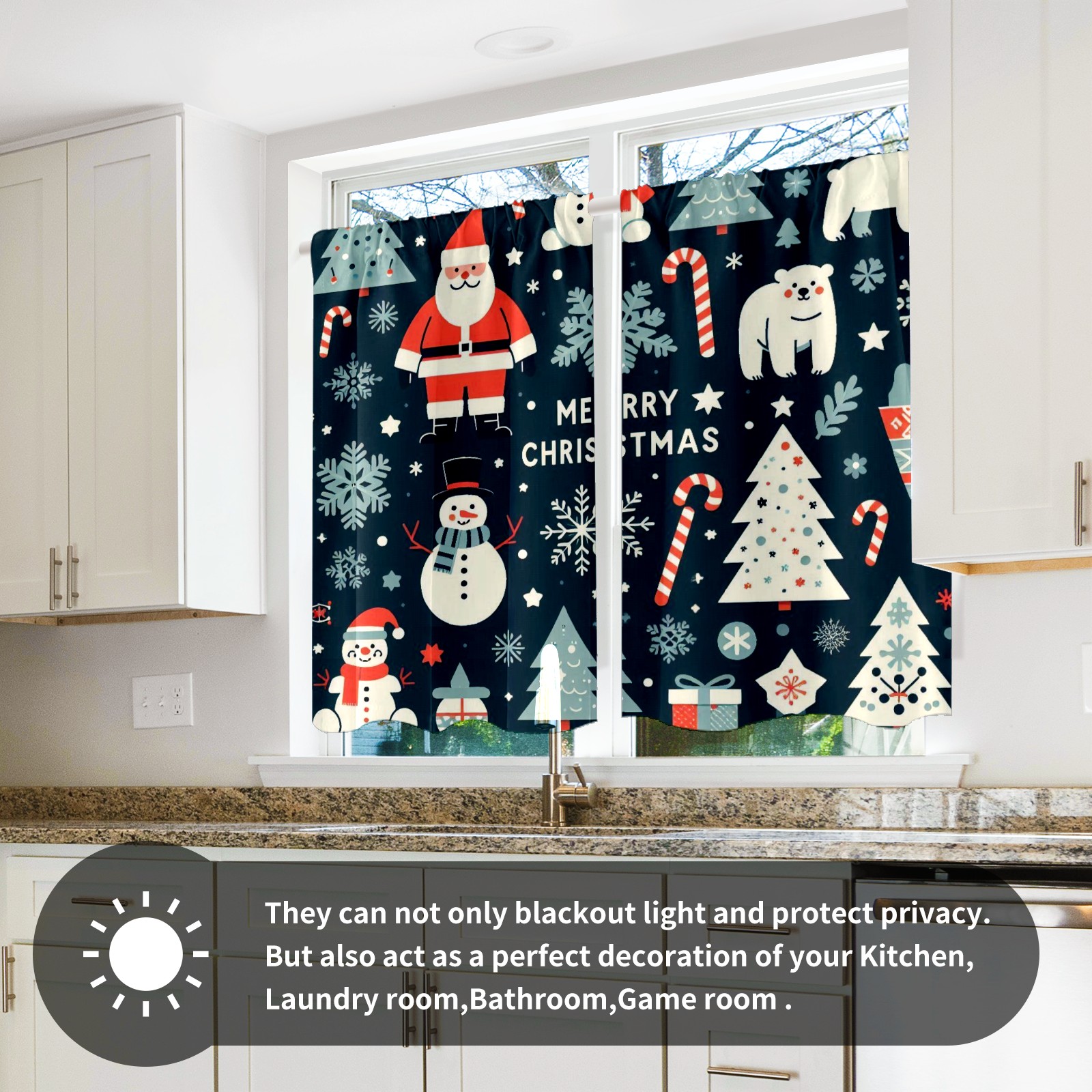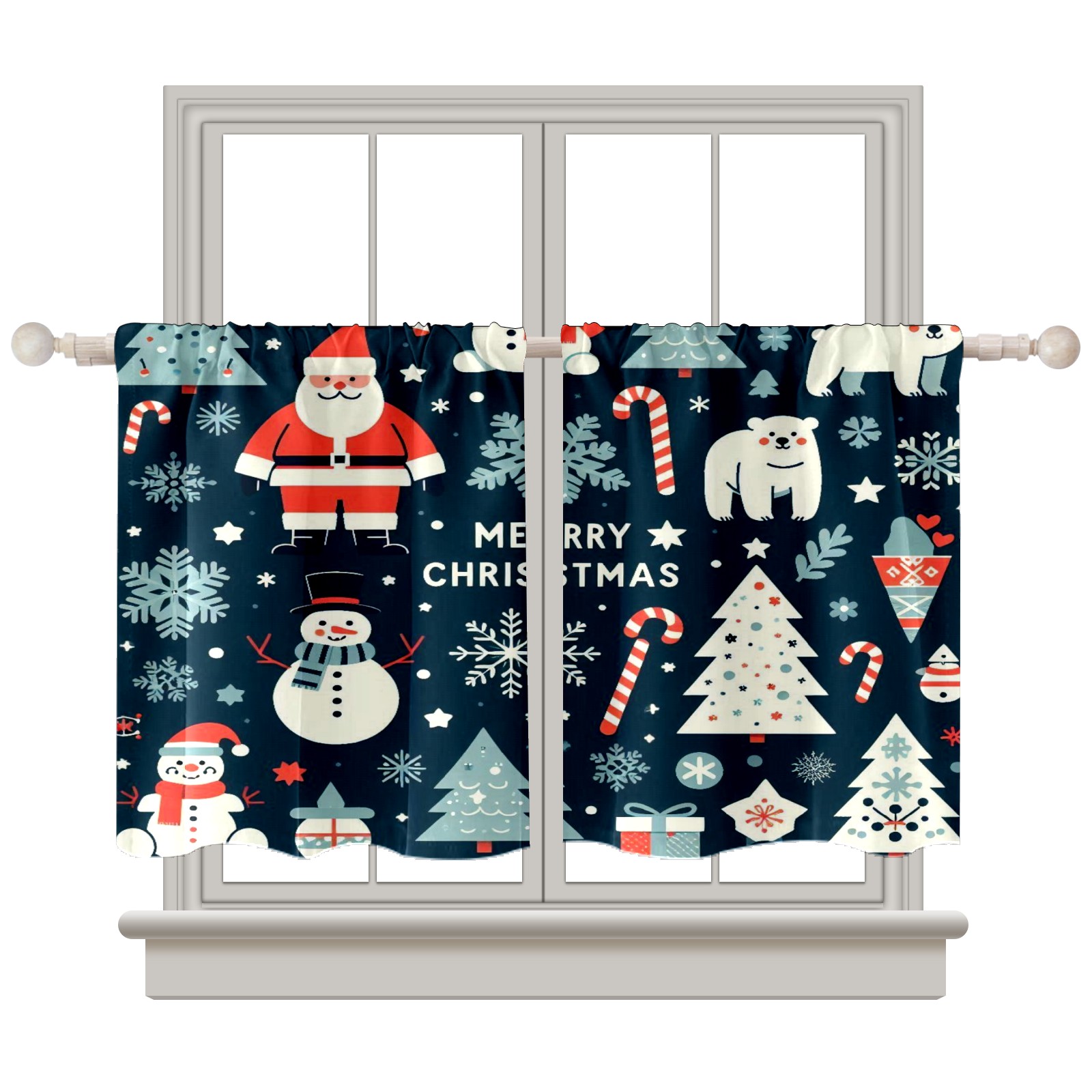 Шторы-панно для дома, декоративные драпировки для гостиной и спальни, легкие и прочные, Dark Blue Christmas Santa Snowman Polar Bear