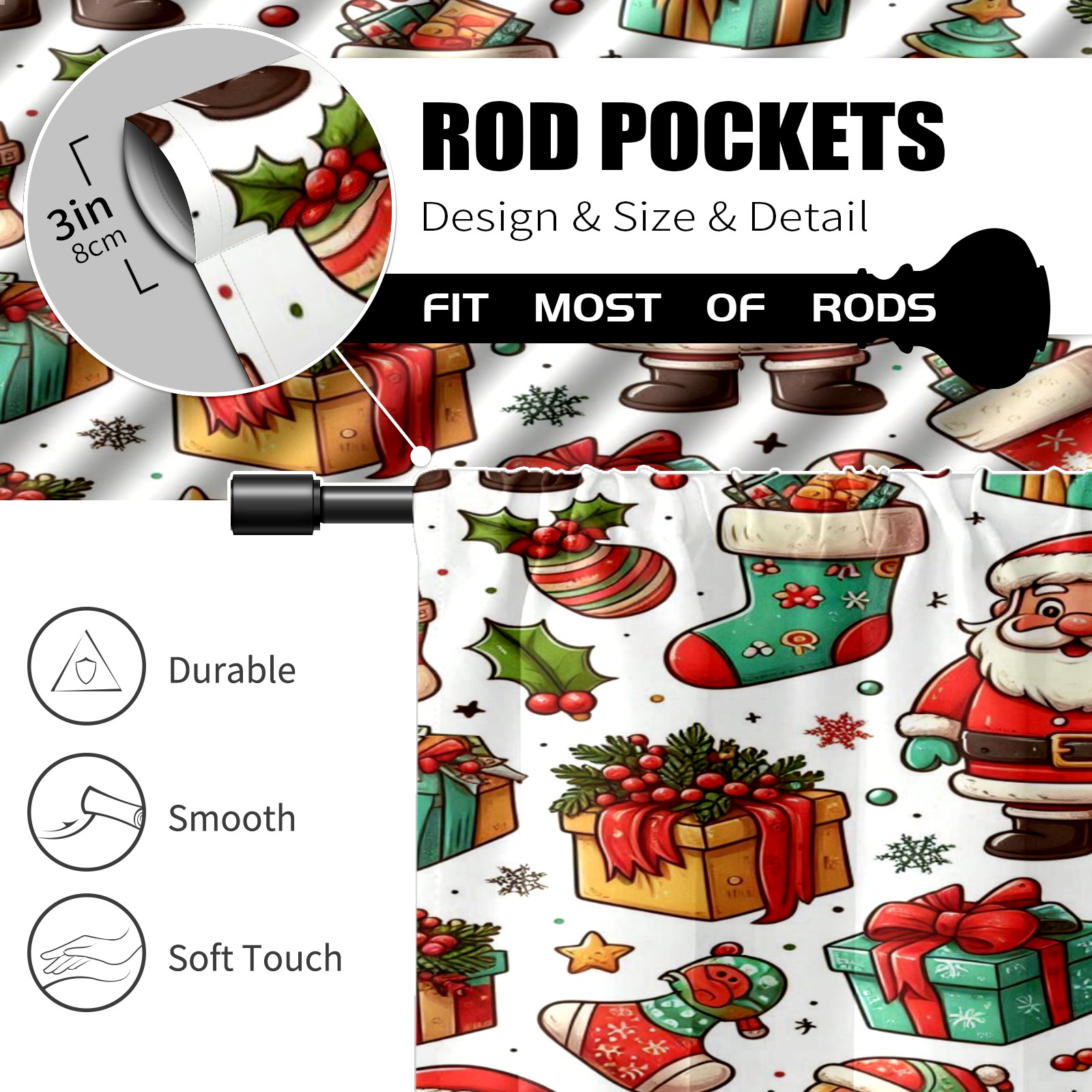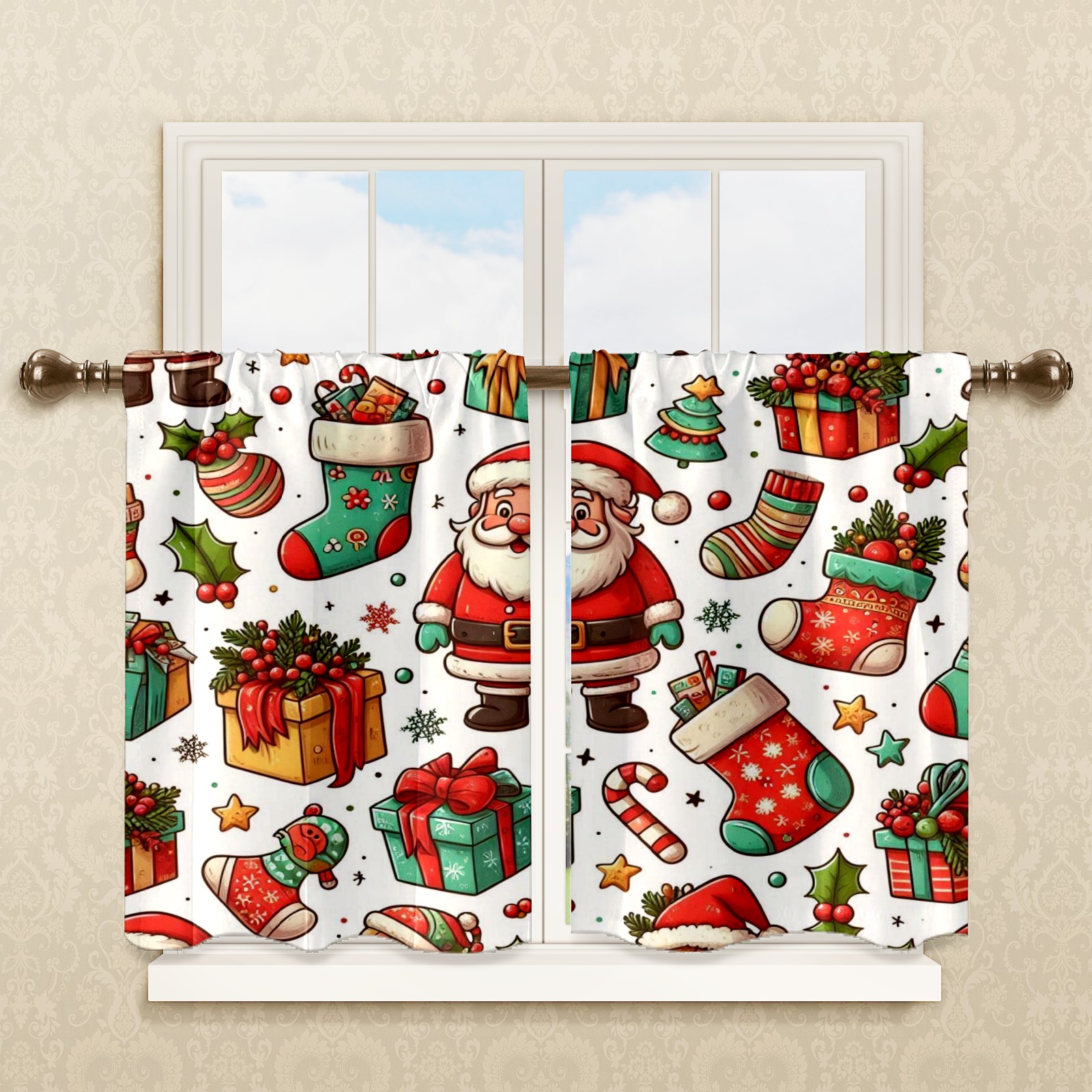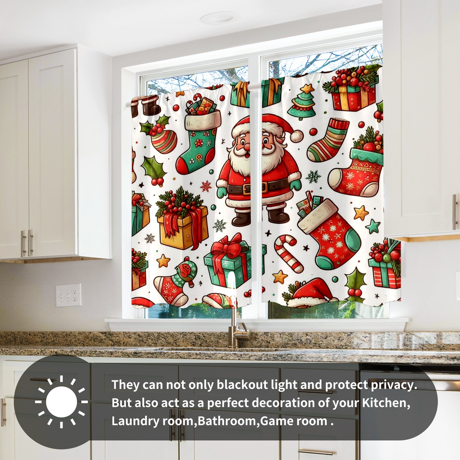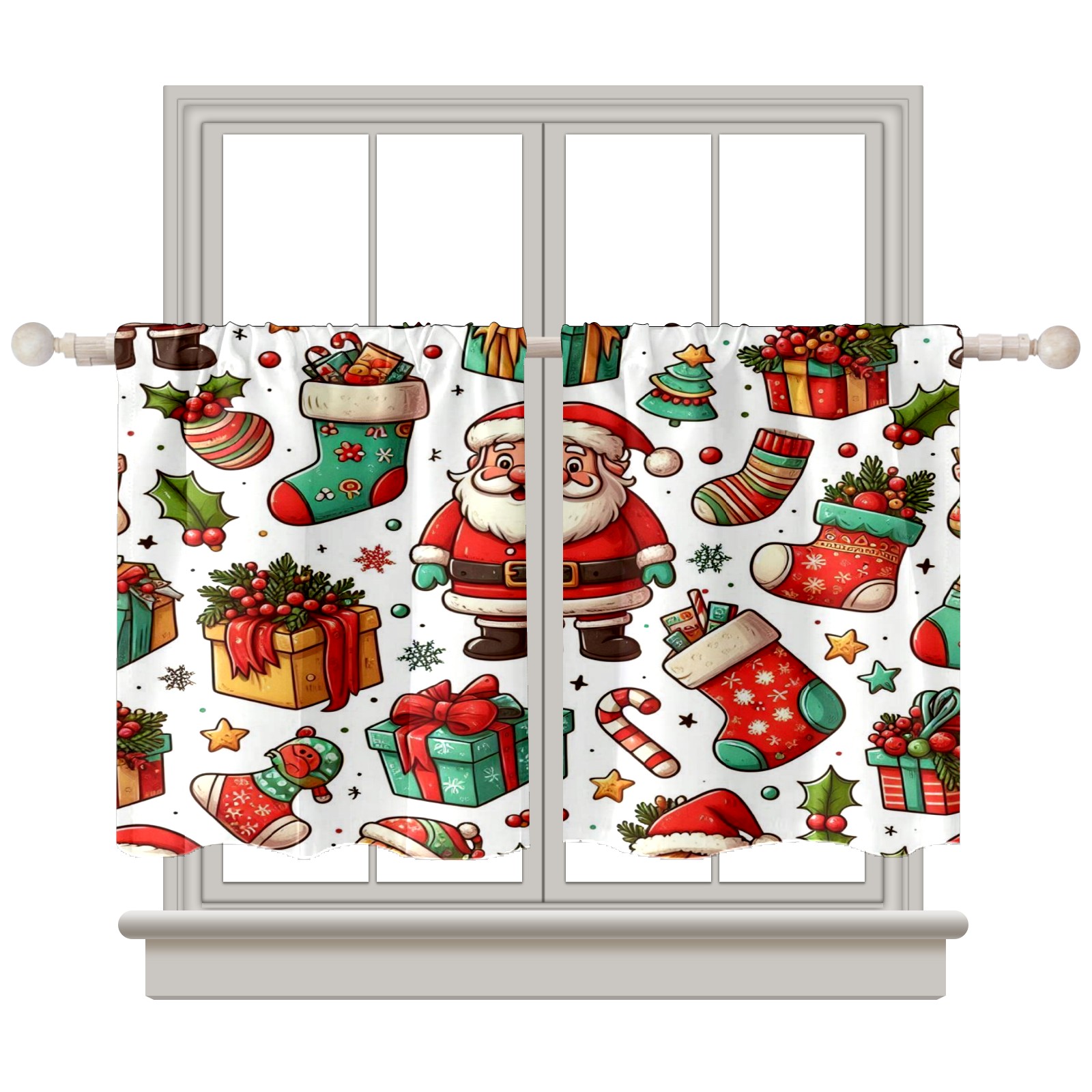 Шторы-панно для дома, декоративные драпировки для гостиной и спальни, легкие и прочные, Red Christmas Socks Santa