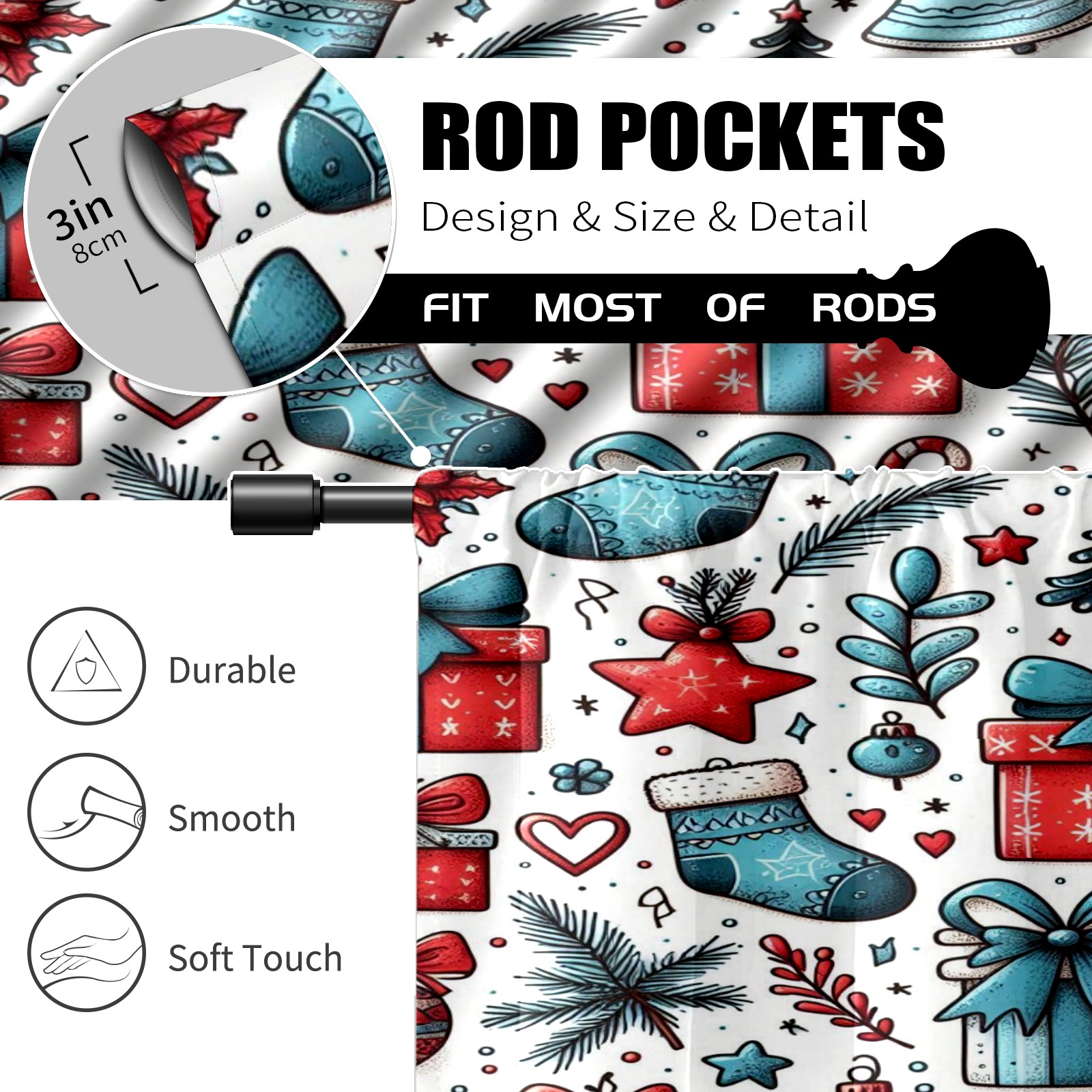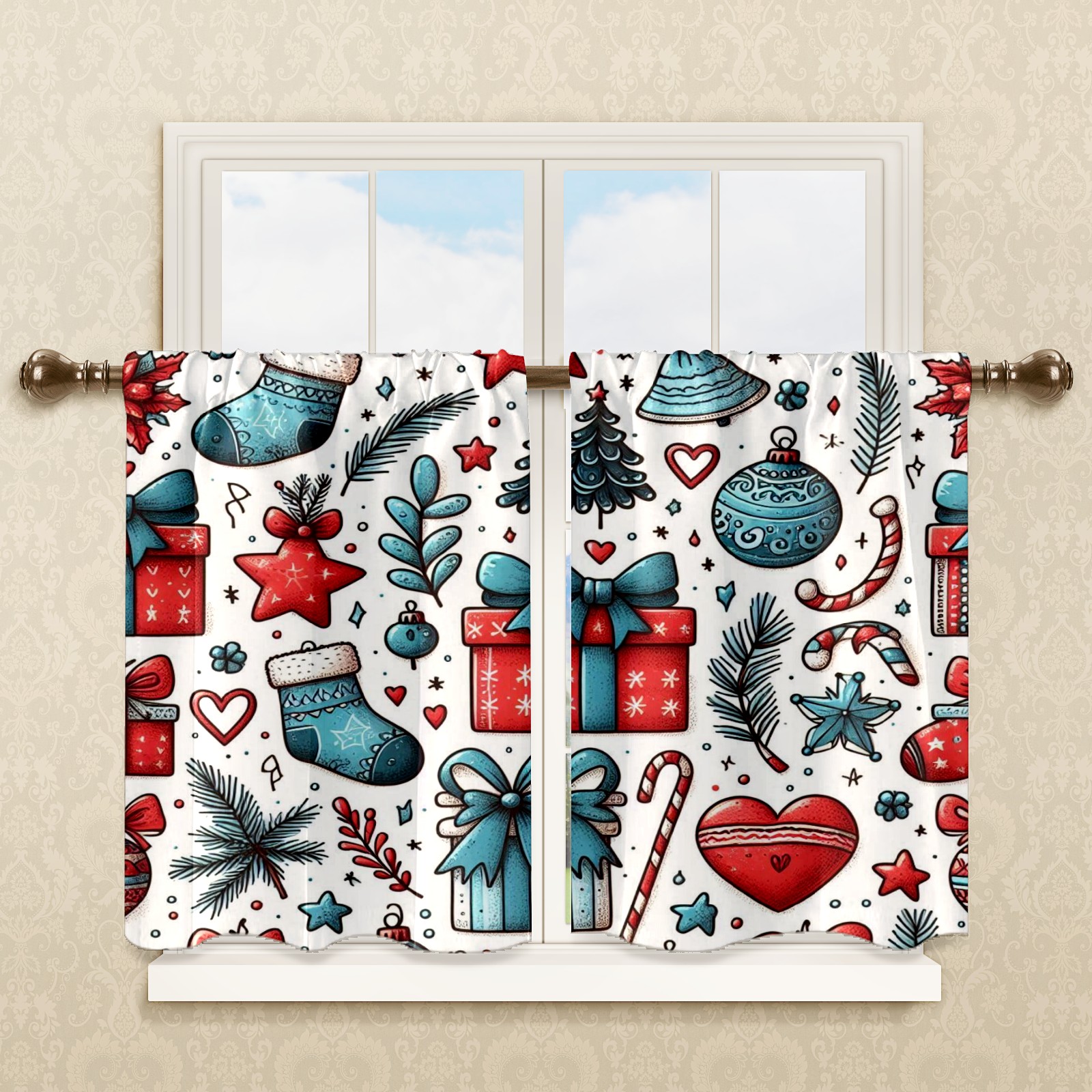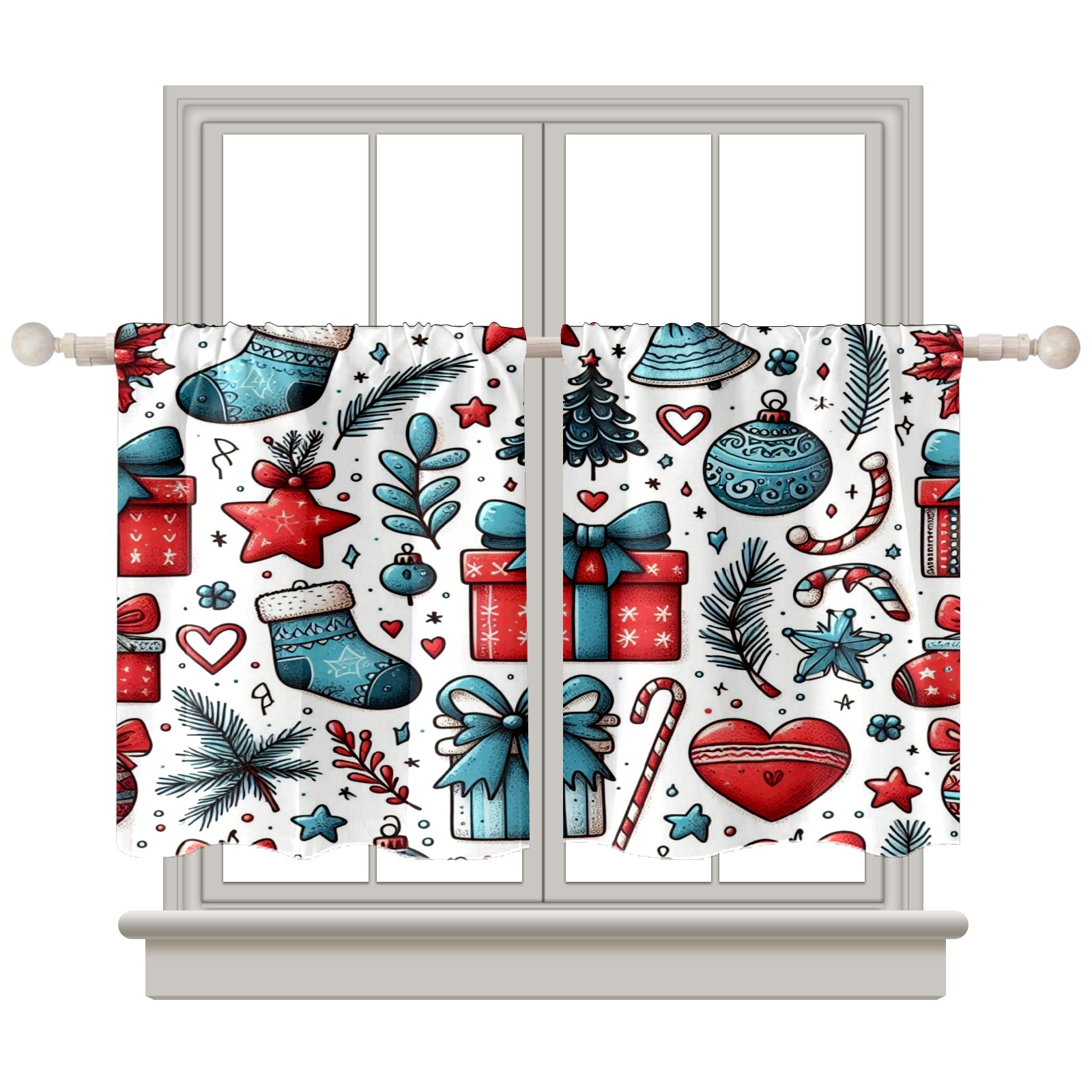 Шторы-панно для дома, декоративные драпировки для гостиной и спальни, легкие и прочные, Red Blue Christmas Socks Gifts