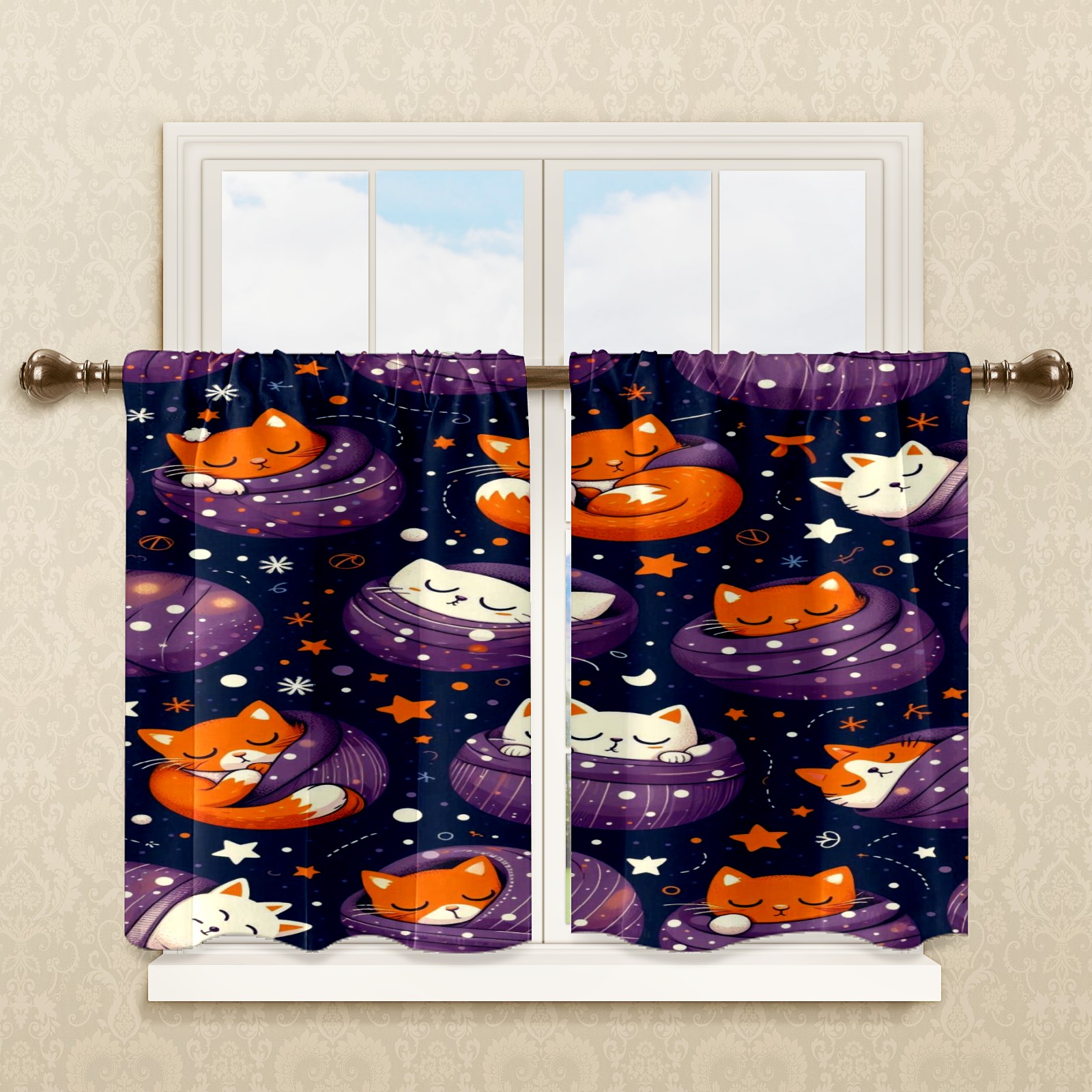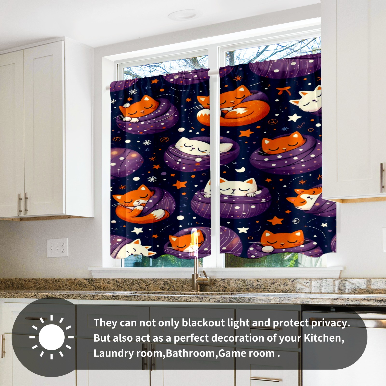 Шторы-панно для дома, декоративные драпировки для гостиной и спальни, легкие и прочные, Purple Christmas Cats