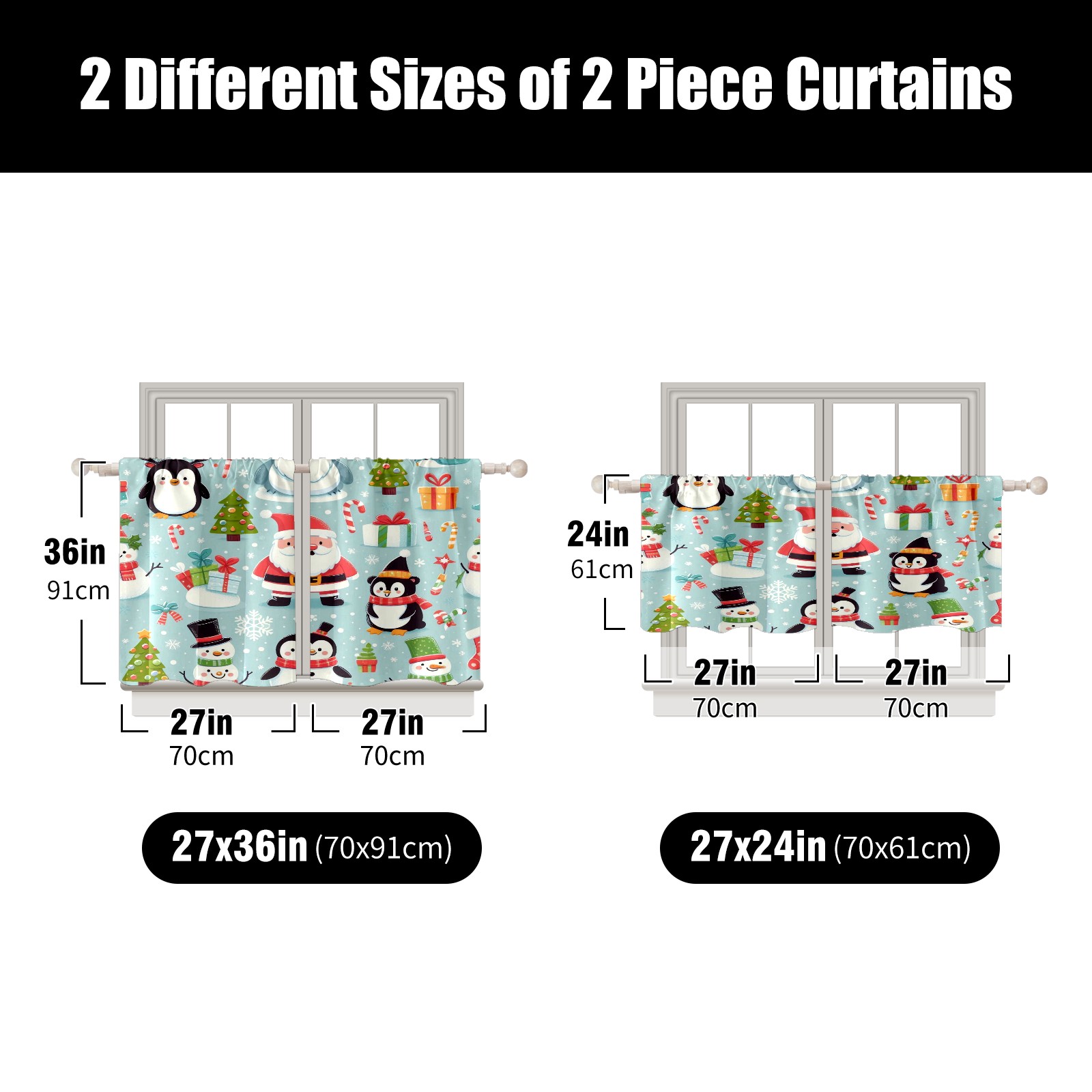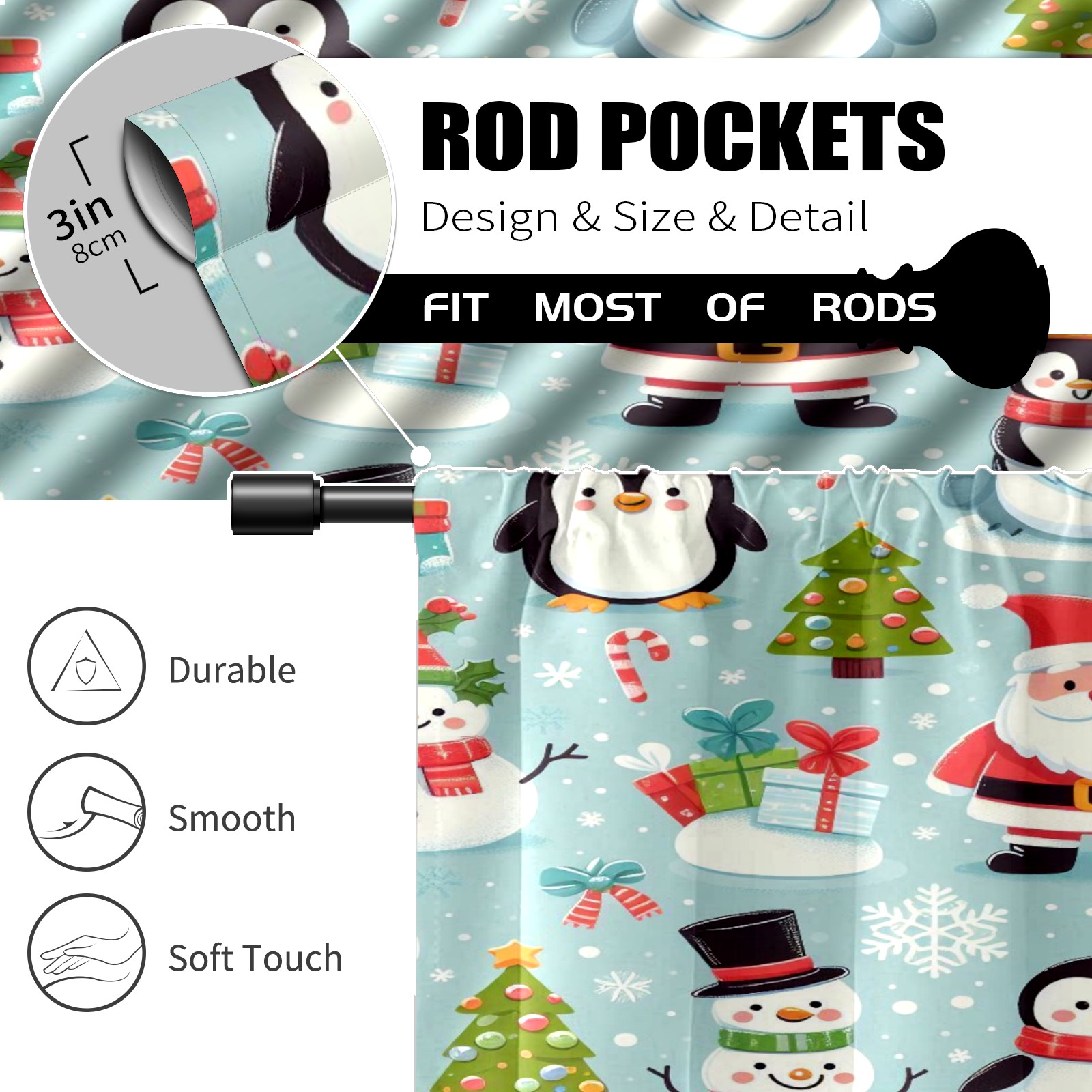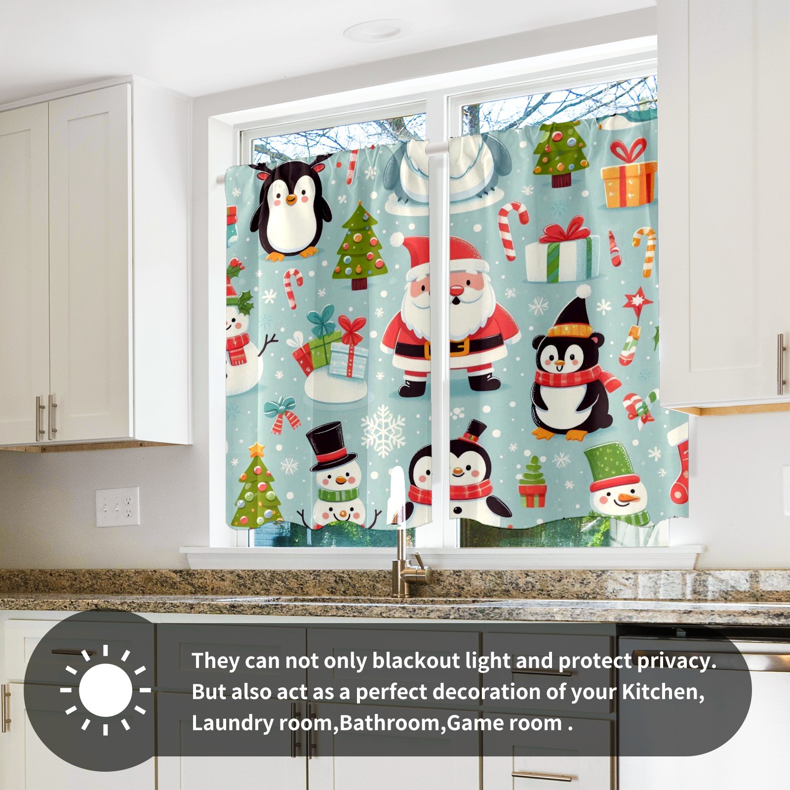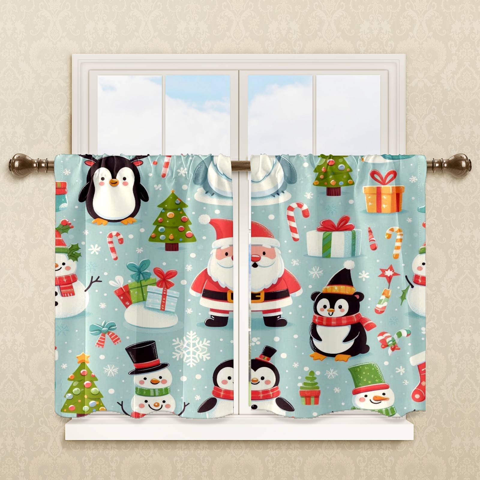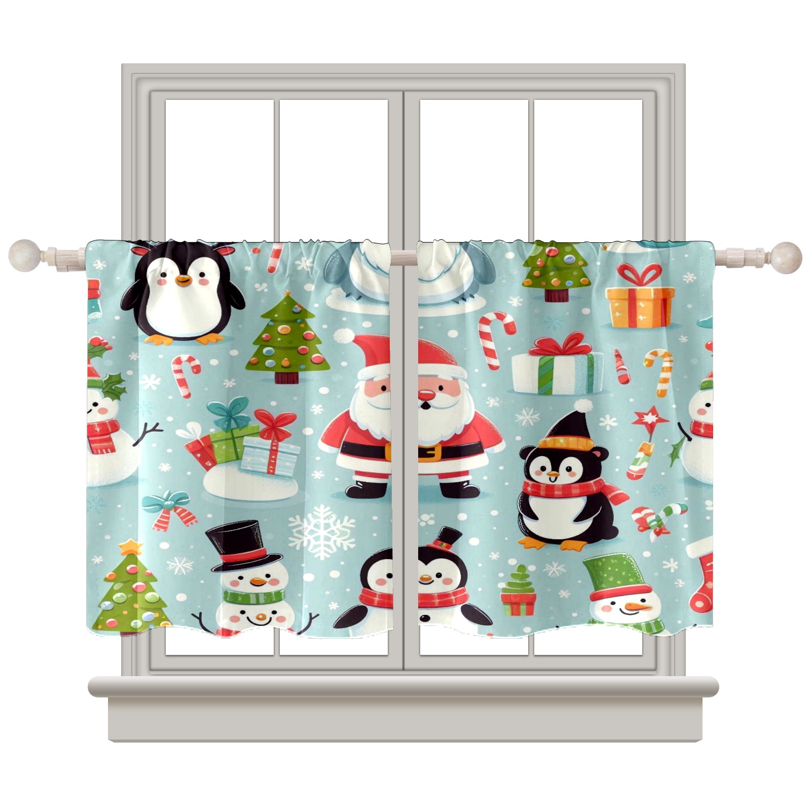 Шторы-панно для дома, декоративные драпировки для гостиной и спальни, легкие и прочные, Light Blue Christmas Penguins Santa