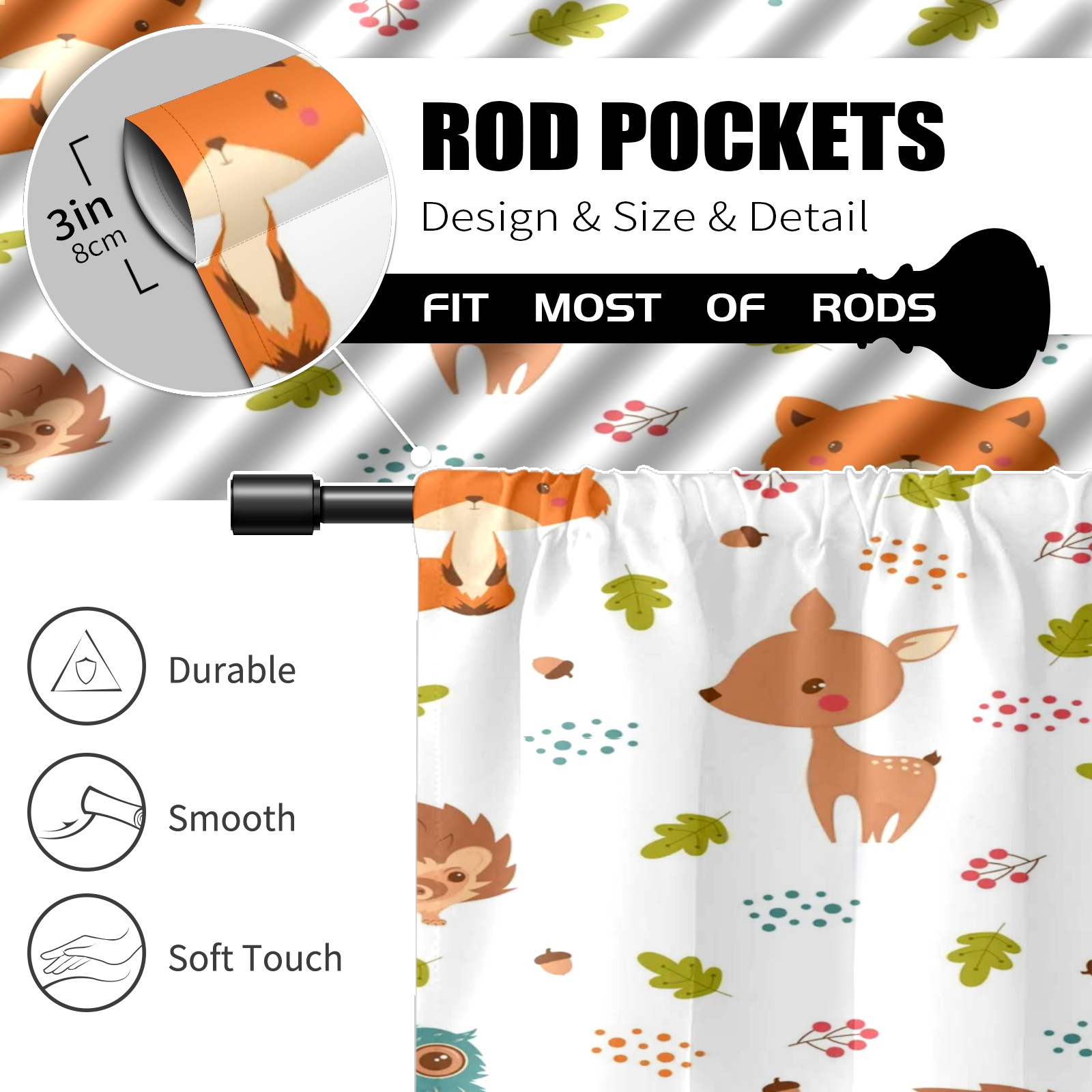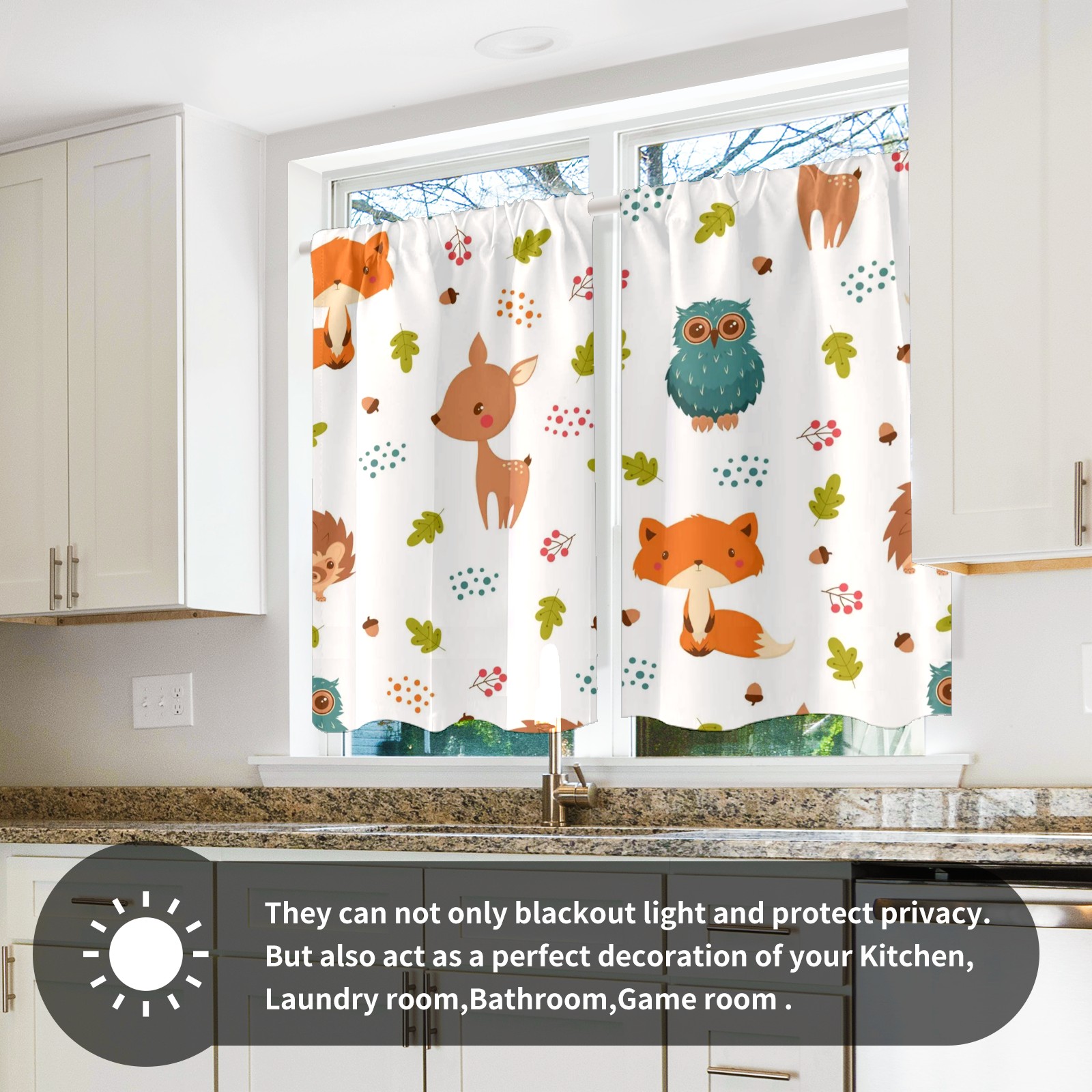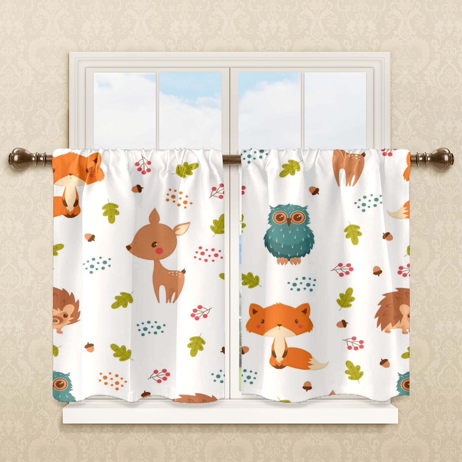 Шторы-панно для дома, декоративные драпировки для гостиной и спальни, легкие и прочные, White Colorful Forest Animals