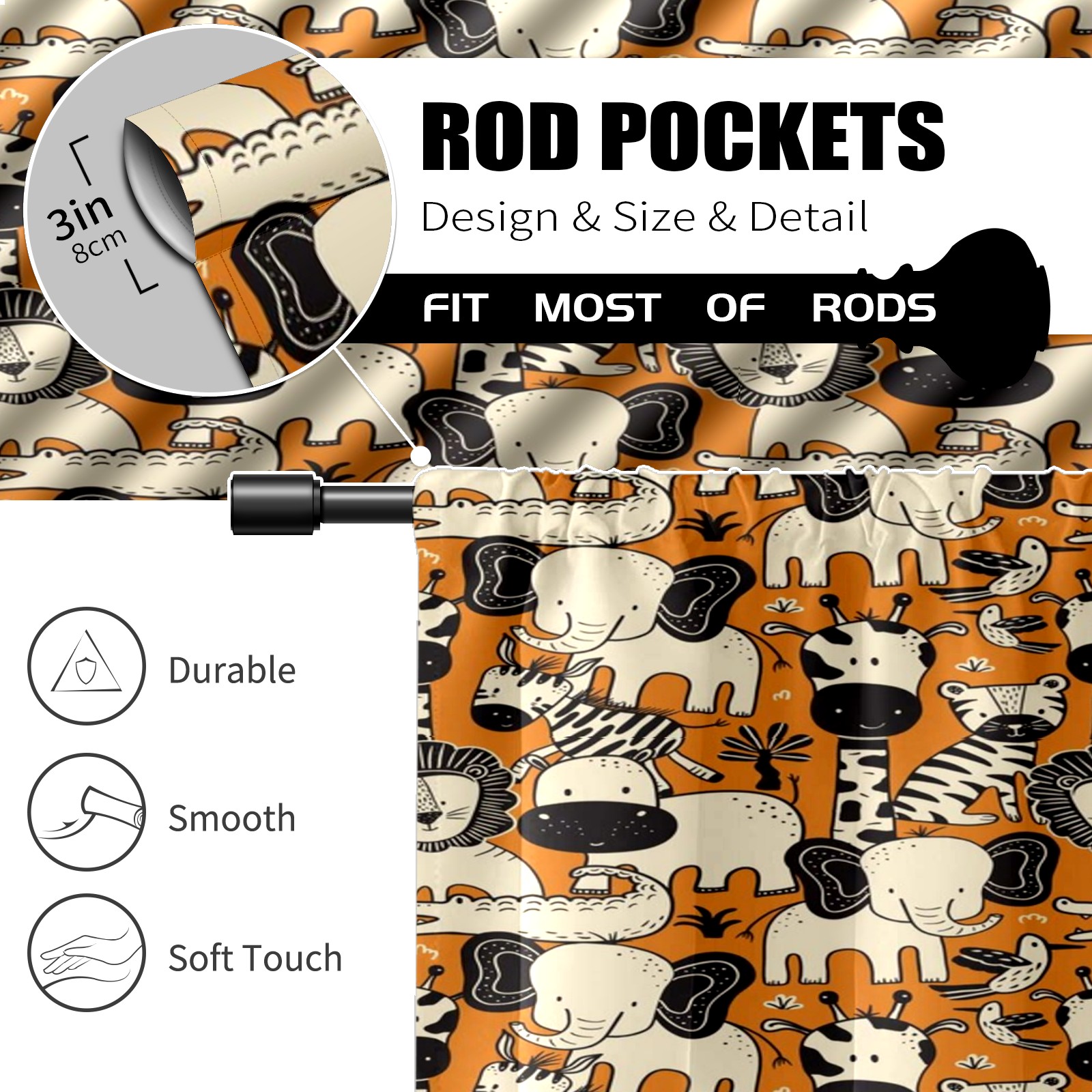 Шторы-панно для дома, декоративные драпировки для гостиной и спальни, легкие и прочные, Orange Beige Animals