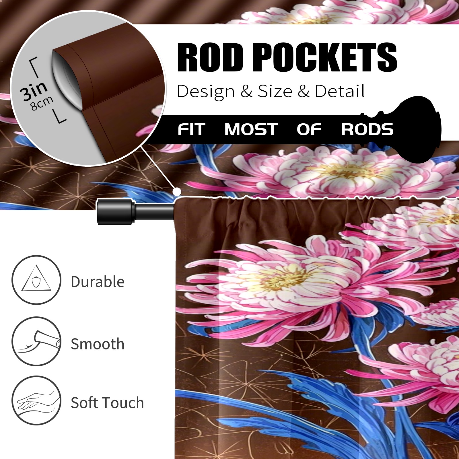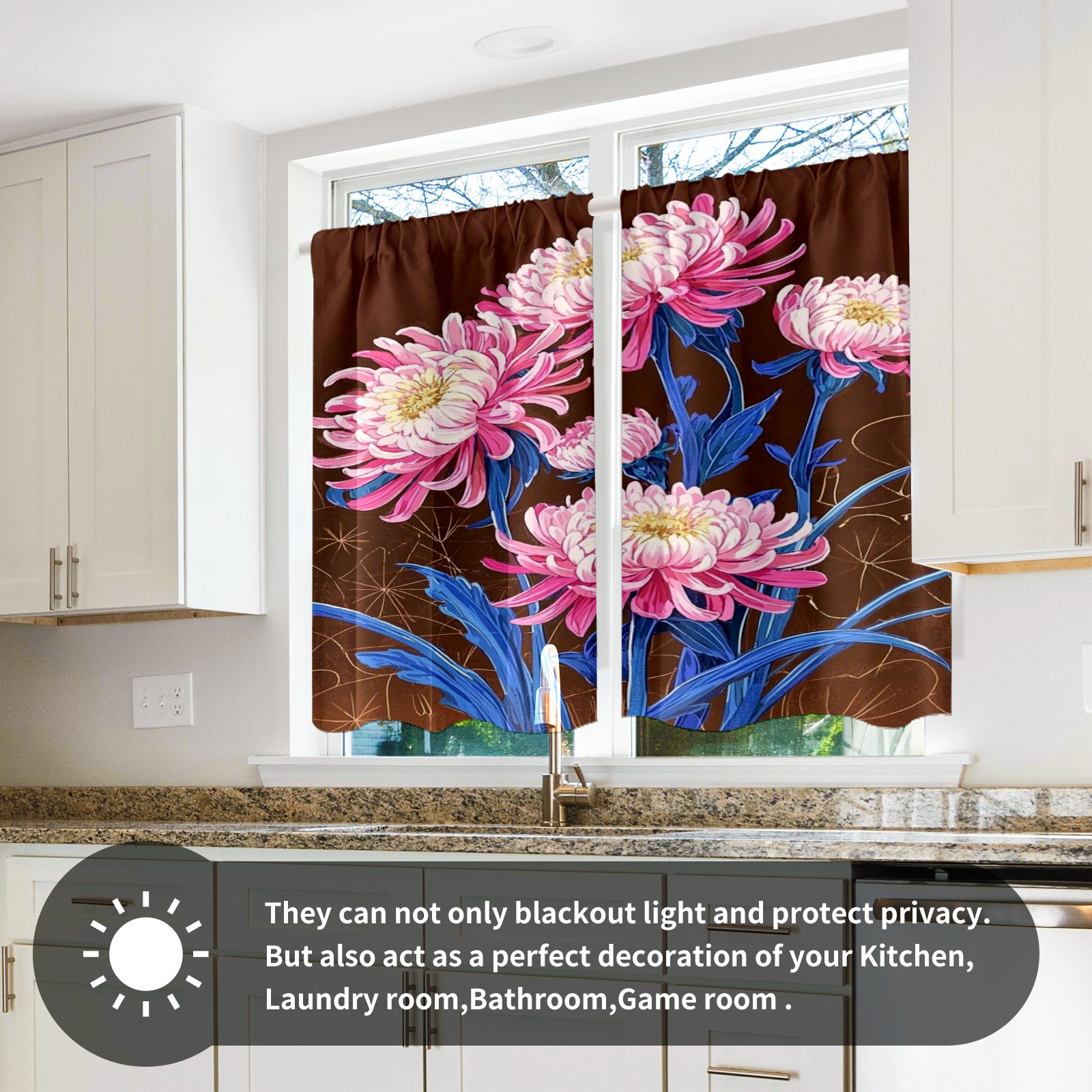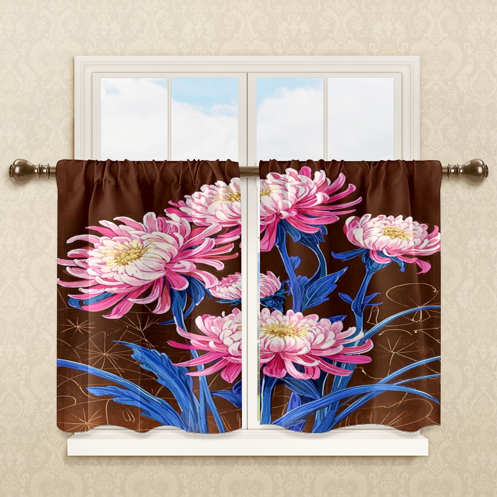 Шторы-панно для дома, декоративные драпировки для гостиной и спальни, легкие и прочные, Pink Chrysanthemums