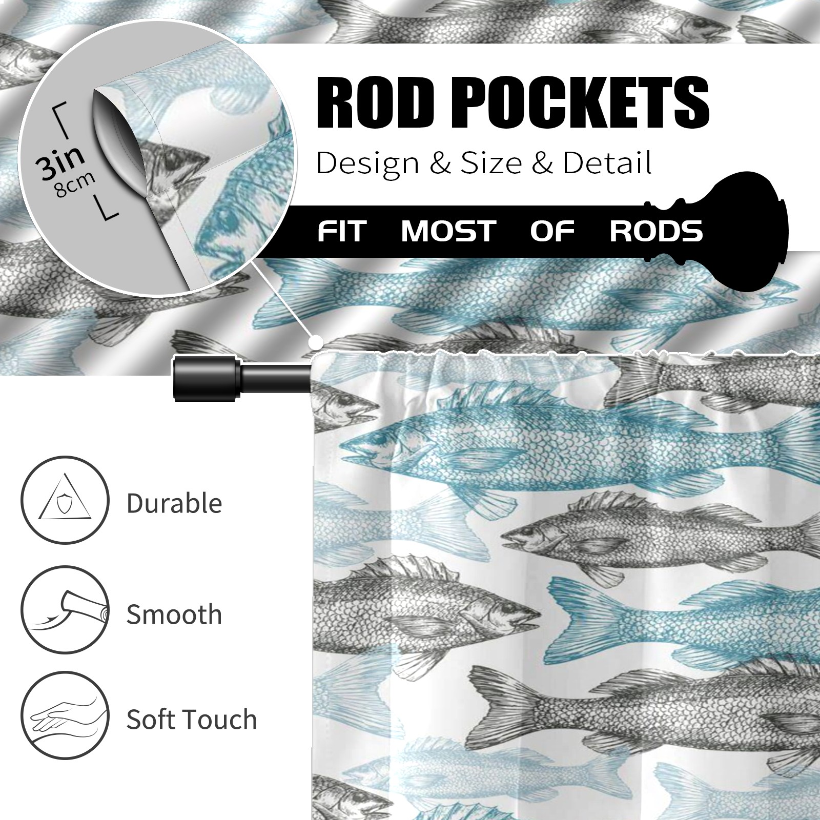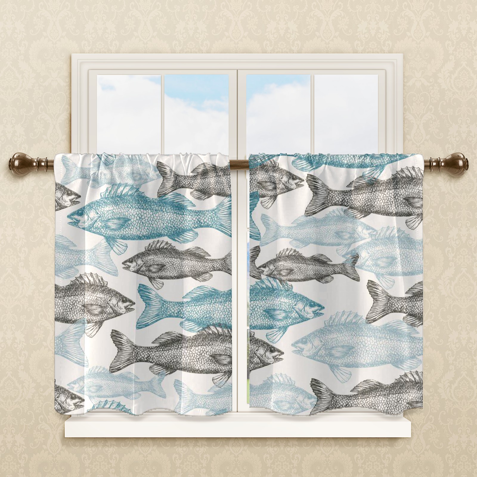 Шторы-панно для дома, декоративные драпировки для гостиной и спальни, легкие и прочные, Vintage Blue Fishes
