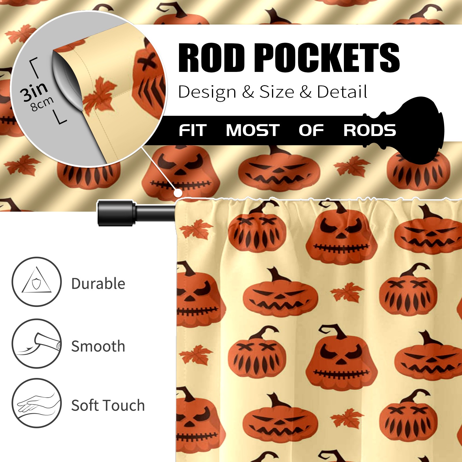 Шторы-панно для дома, декоративные драпировки для гостиной и спальни, легкие и прочные, Orange Halloween Pumpkin