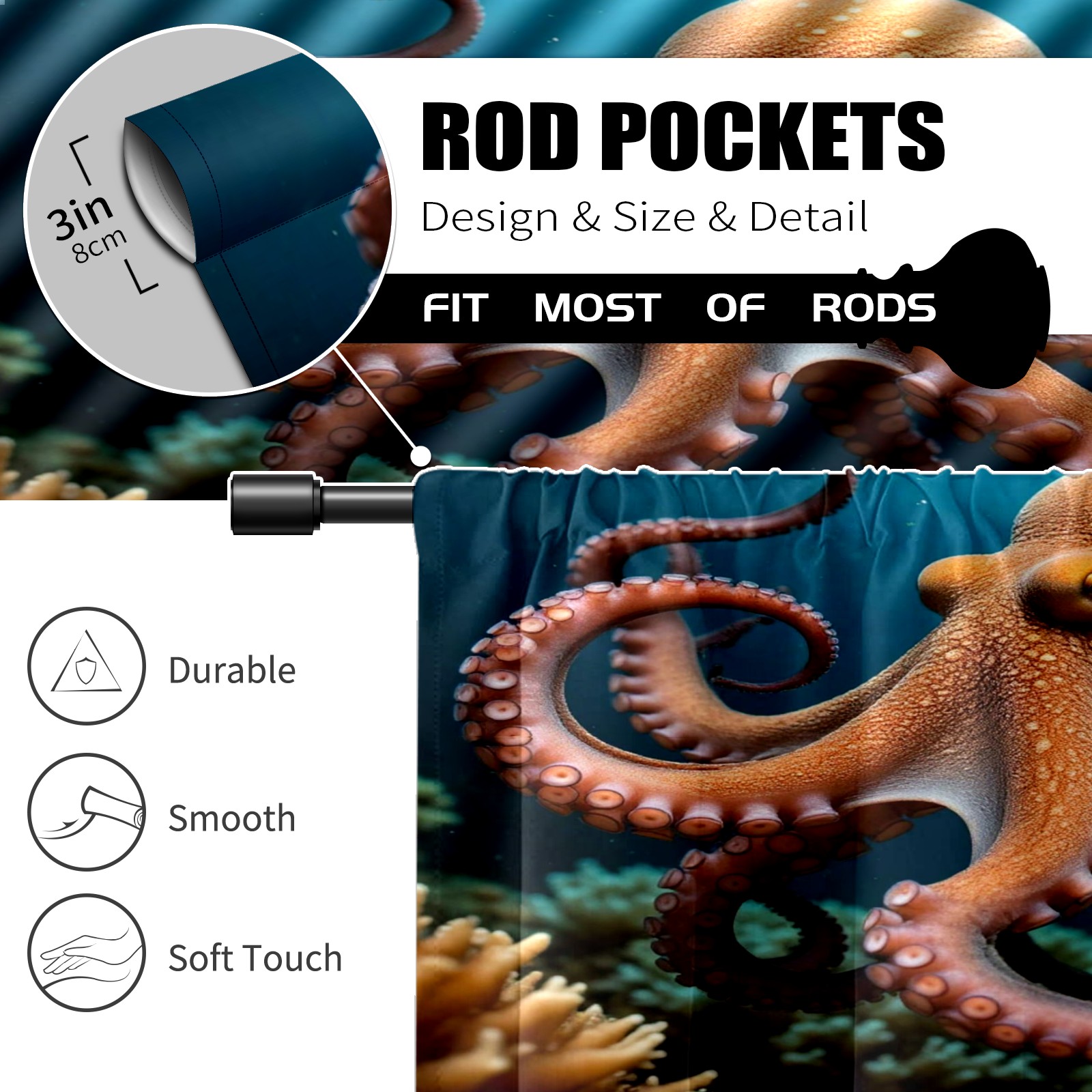Шторы-панно для дома, декоративные драпировки для гостиной и спальни, легкие и прочные, Brown Octopus