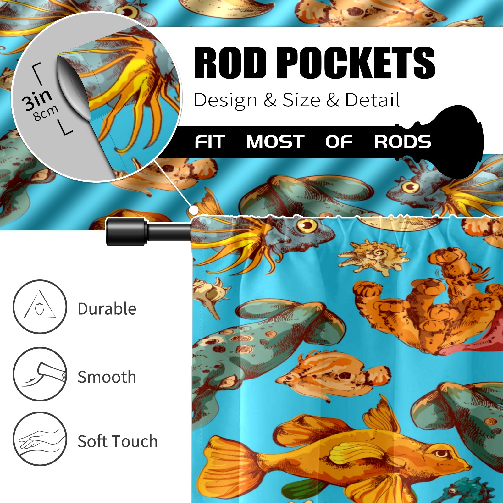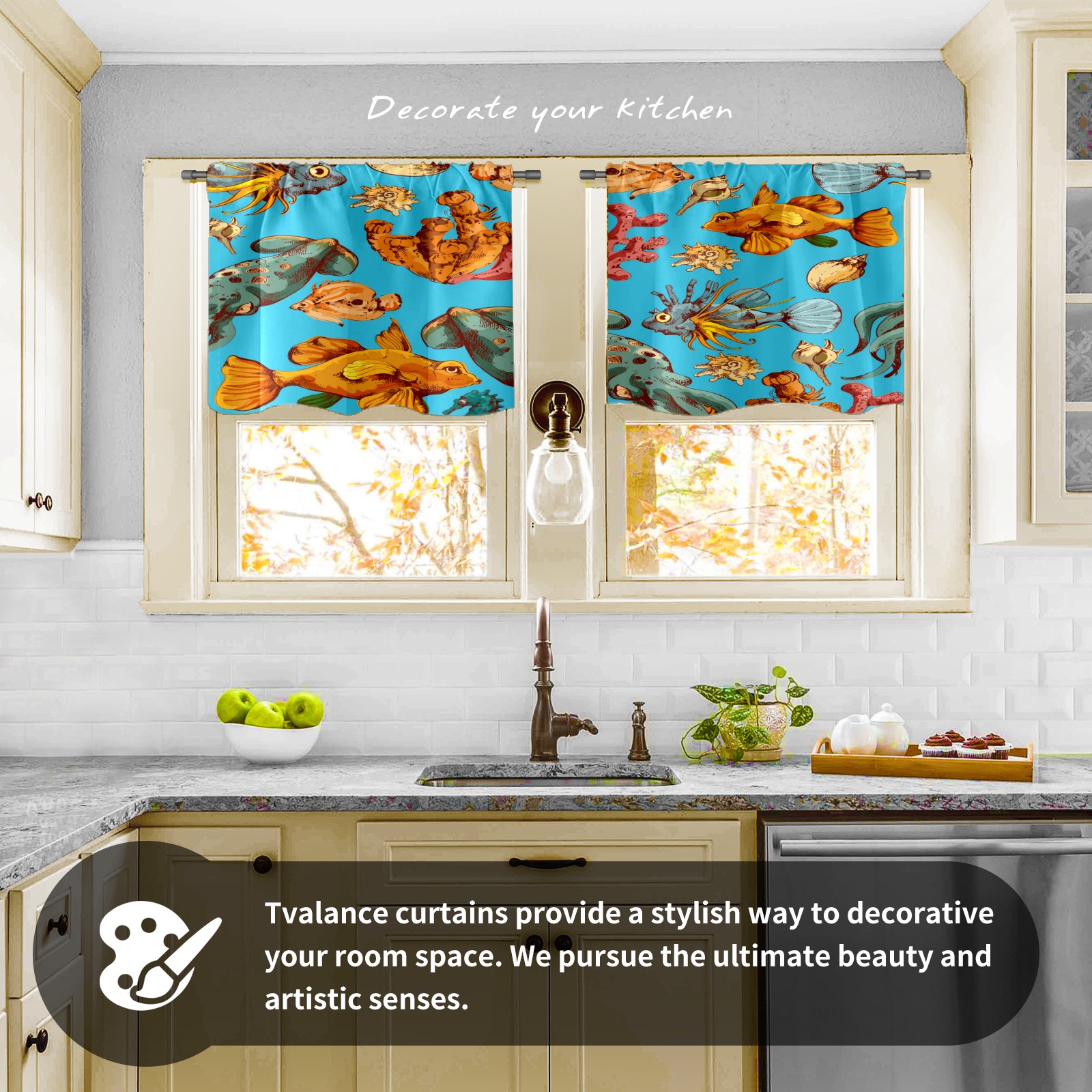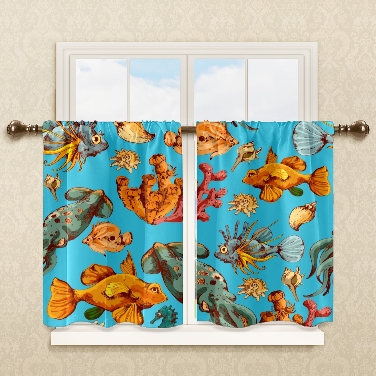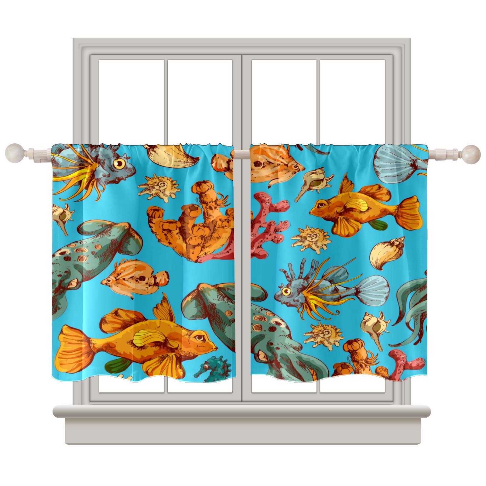 Шторы-панно для дома, декоративные драпировки для гостиной и спальни, легкие и прочные, Blue Sea Colorful Fishes