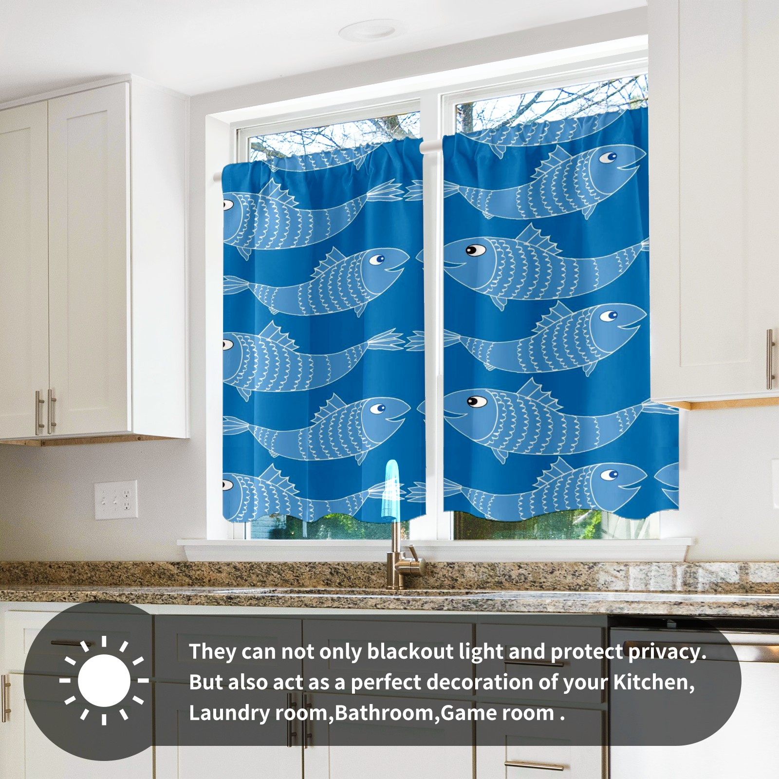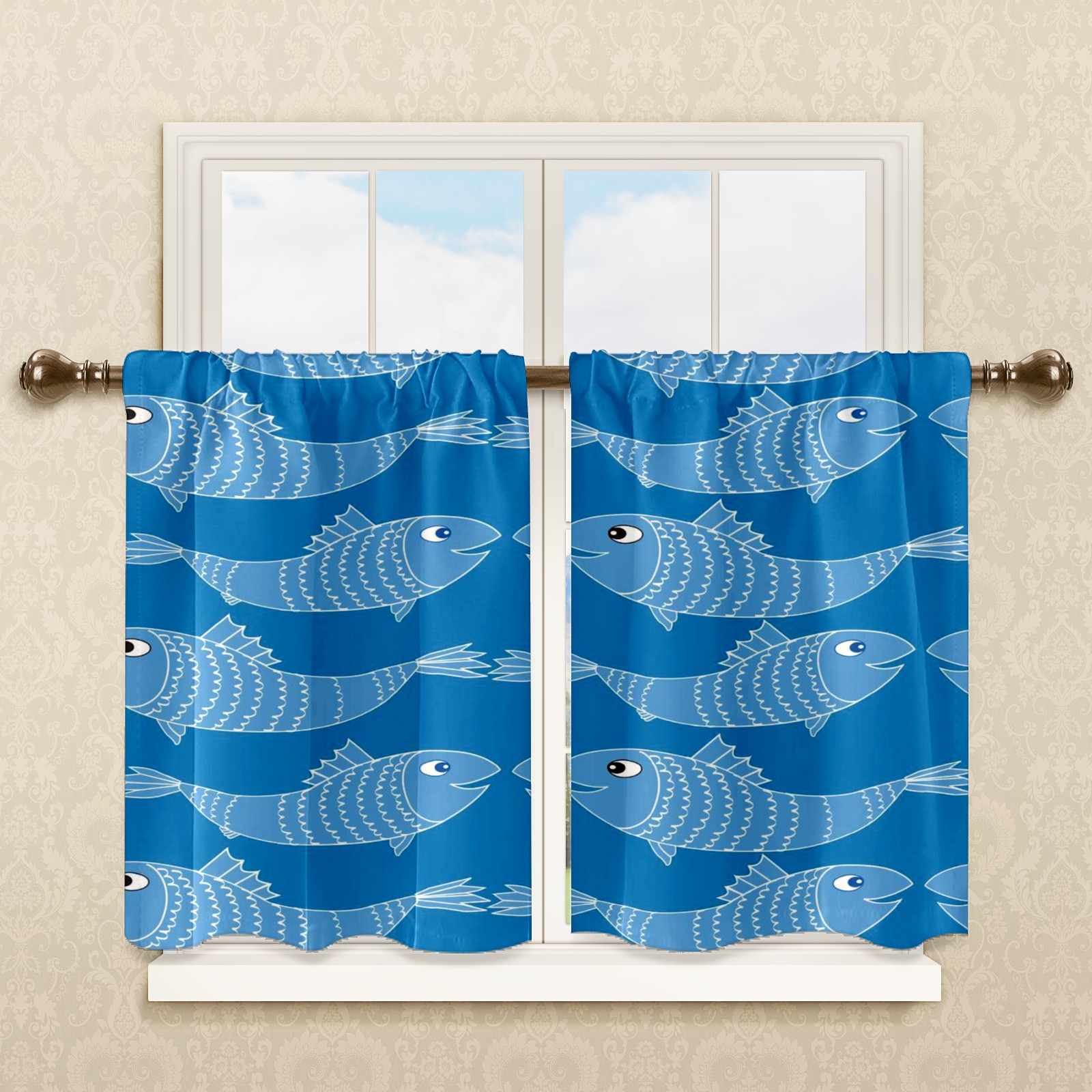 Шторы-панно для дома, декоративные драпировки для гостиной и спальни, легкие и прочные, Blue Sea Fishes