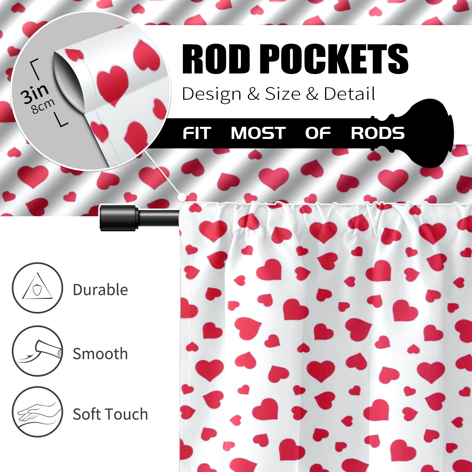 Шторы-панно для дома, декоративные драпировки для гостиной и спальни, легкие и прочные, Hearts Love Red Romance (1)