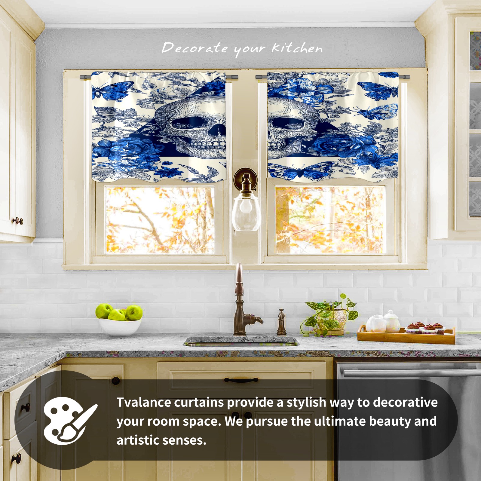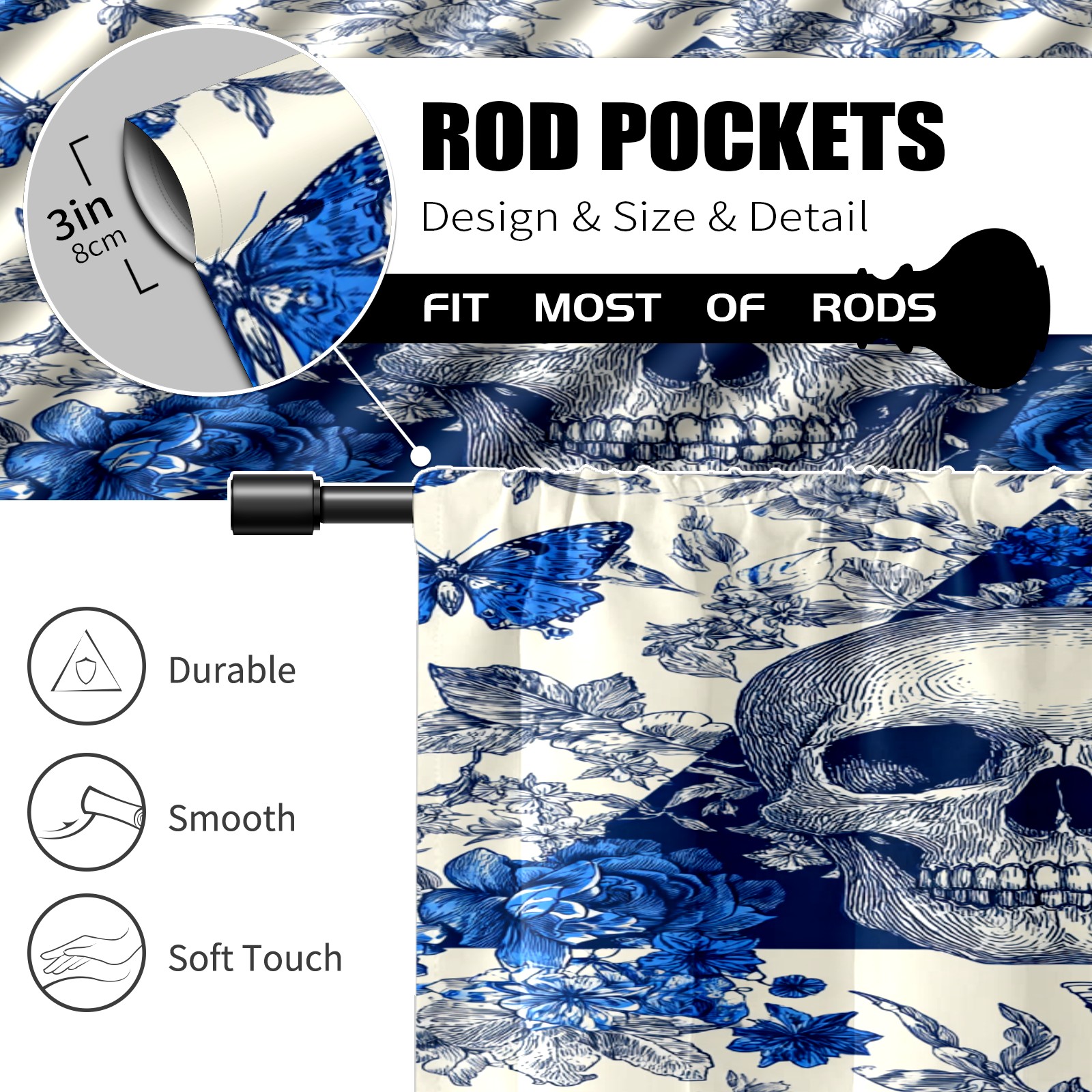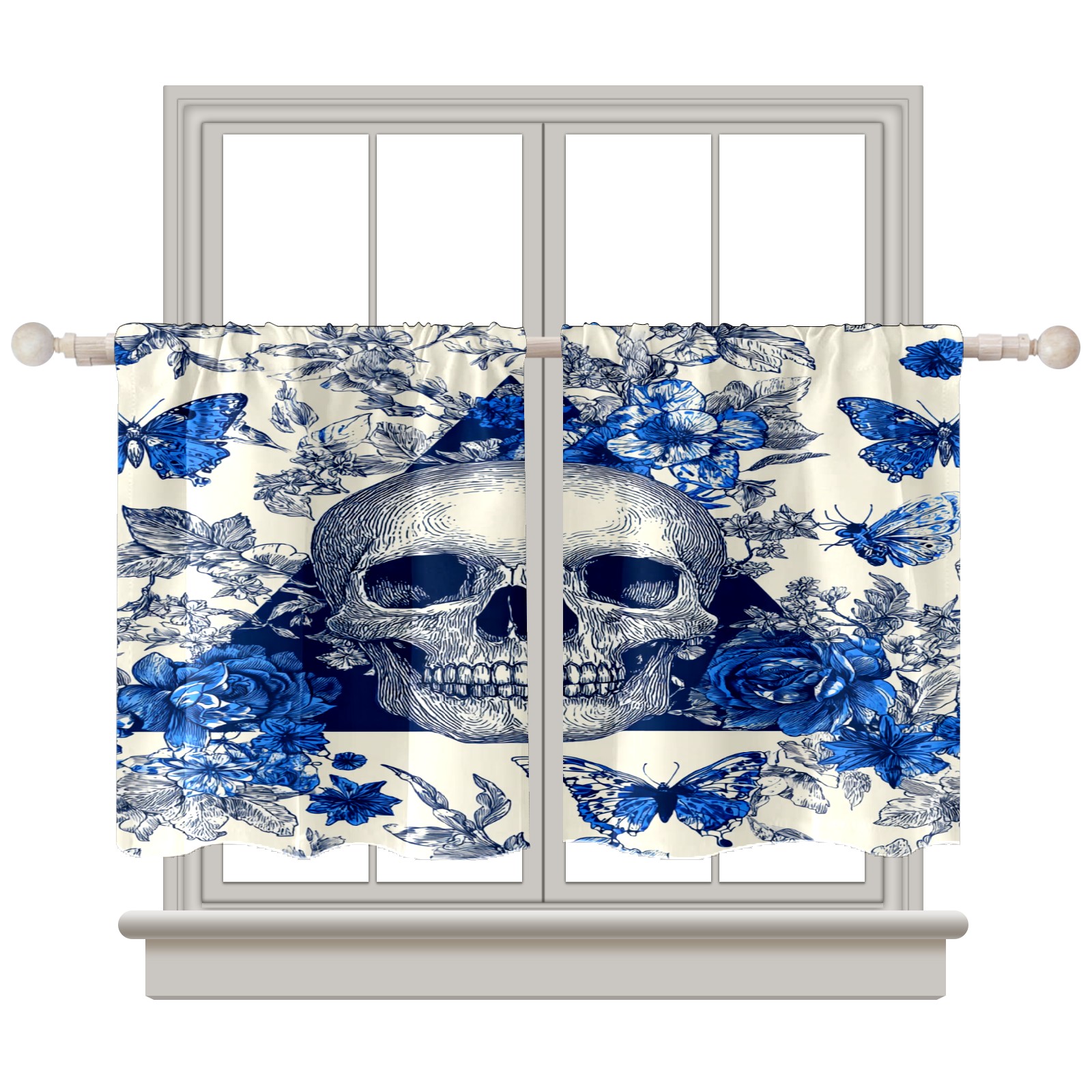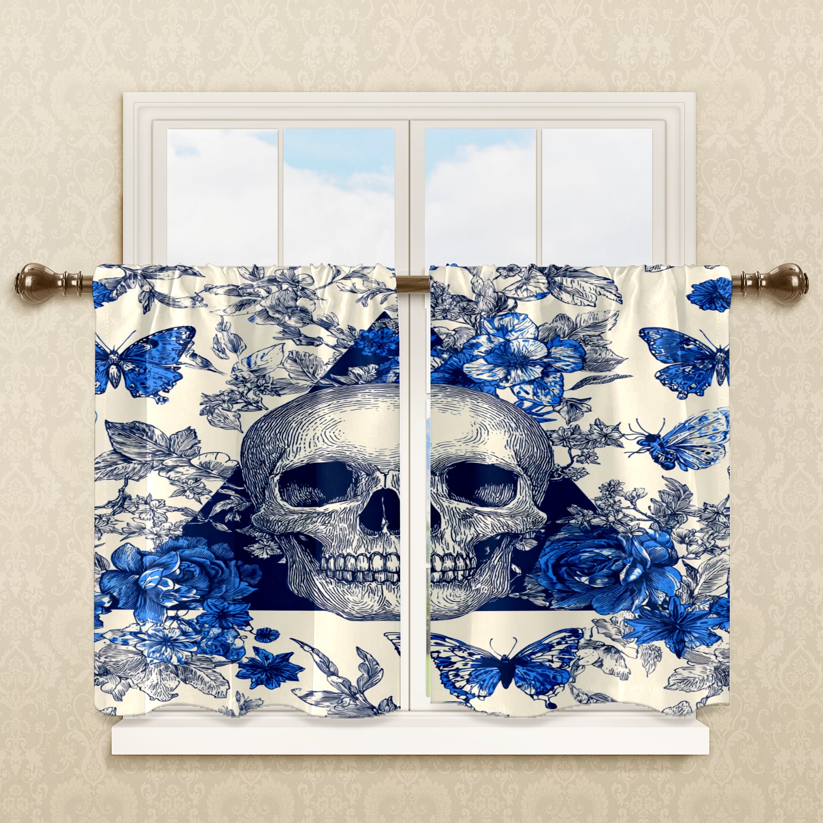 Шторы-панно для дома, декоративные драпировки для гостиной и спальни, легкие и прочные, Blue Skull Flowers