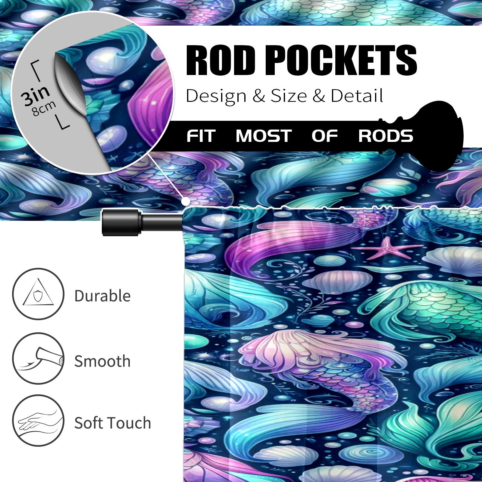 Шторы-панно для дома, декоративные драпировки для гостиной и спальни, легкие и прочные, Blue Purple Mermaids