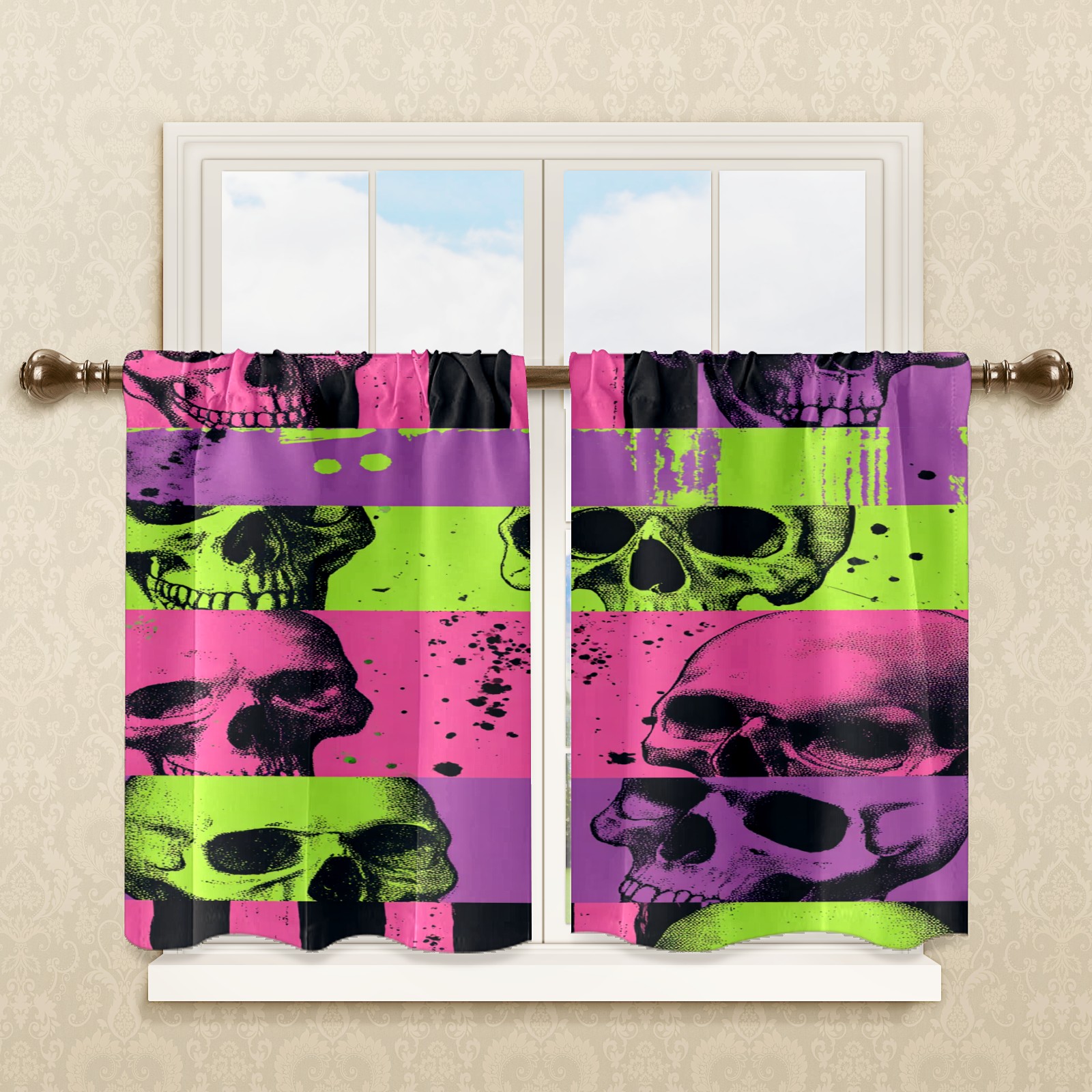 Шторы-панно для дома, декоративные драпировки для гостиной и спальни, легкие и прочные, Pink Purple Skulls Stripes